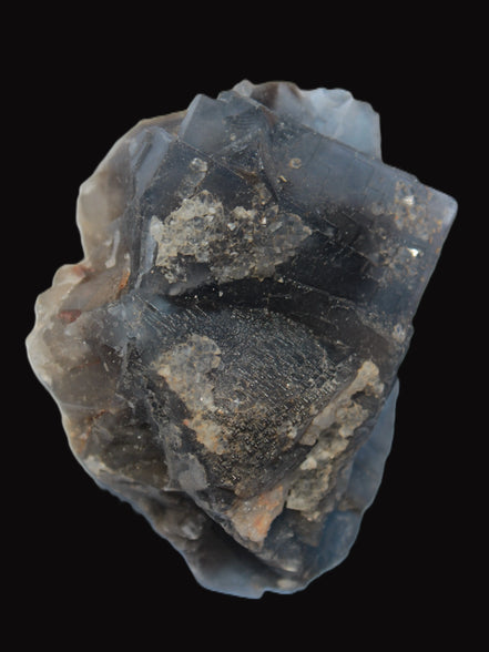 Blue Fluorite cubic cluster with Clear Calcite 168.8g Rocks and Things Store