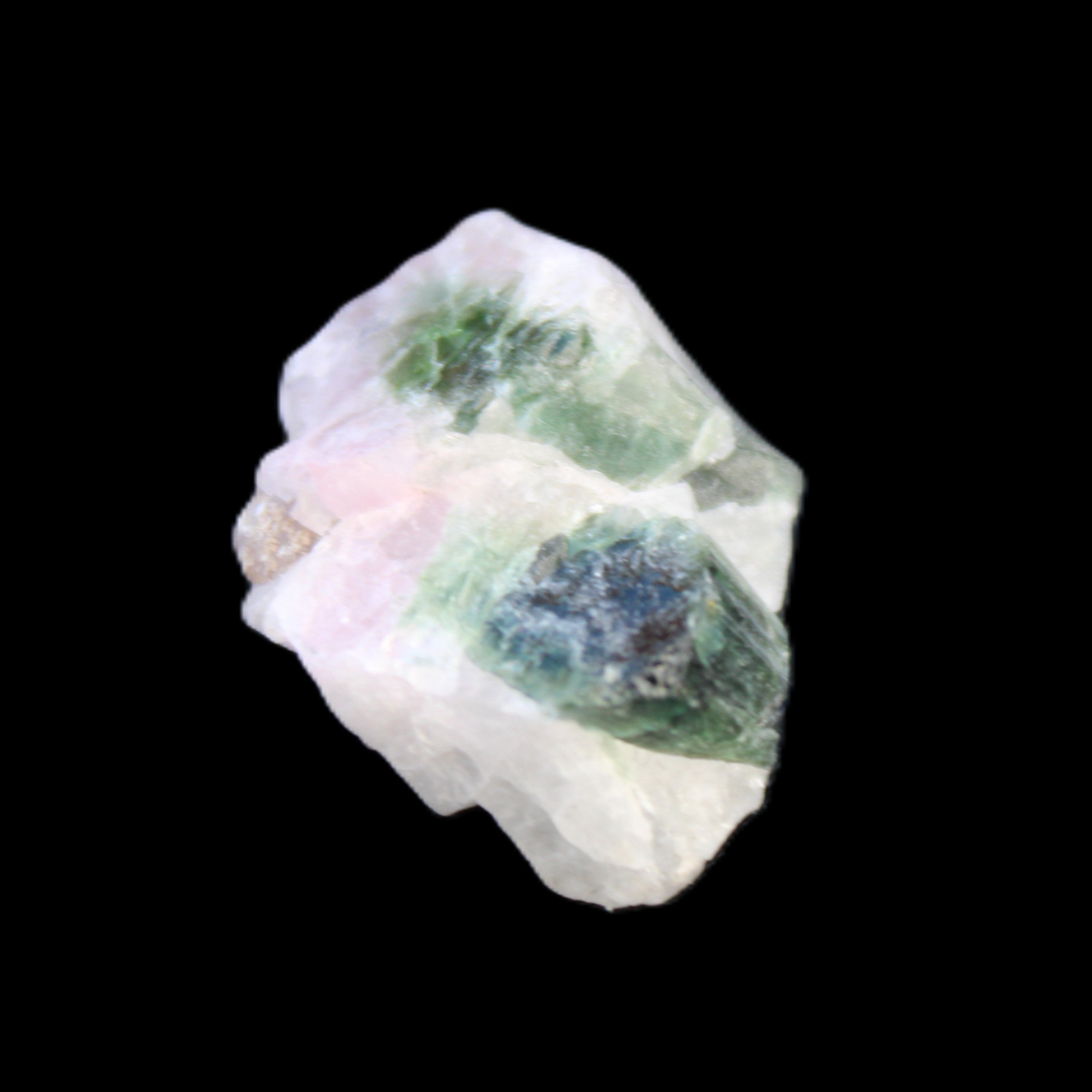 Blue, Green and Pink Tourmaline is a complex lithium rich borosilicate mineral and member of the Tourmaline family. It crystallizes in the form of elongated rods or triangular and pyramidal crystals. Green Tourmaline is a powerful heart-activation stone. It brings invigorating energy of growth and expansion to the emotional body. The resonance of Green Tourmaline aligns with the heart chakra, helping to calm the nervous system and emotions.