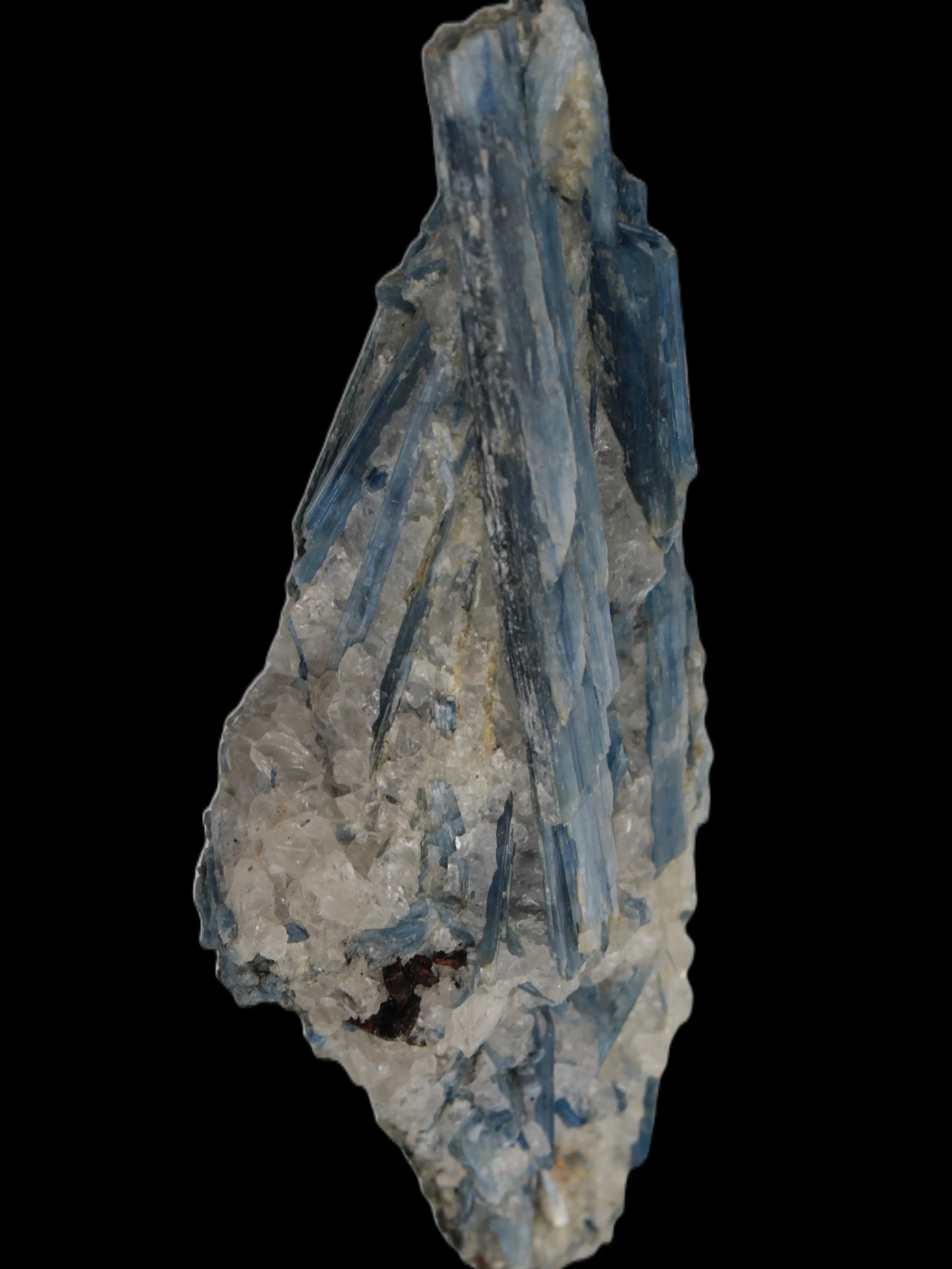 Connection: Kyanite consists of multiple layers of very thin, flat blades. It has two distinct hardness ratings for its parallel and perpendicular axis. Kyanite is most commonly blue, but it may also be black, grey, green or orange. Kyanite is an important and unique multi-dimensional stone, able to merge our astral and physical bodies, allowing us to tap into our higher guidance, intuition and highest purpose. Kyanite aligns the Chakras and can be used to open them as well. Kyanite also aligns all layers of the aura. These properties make Kyanite a good option for any type of balance or energy work.