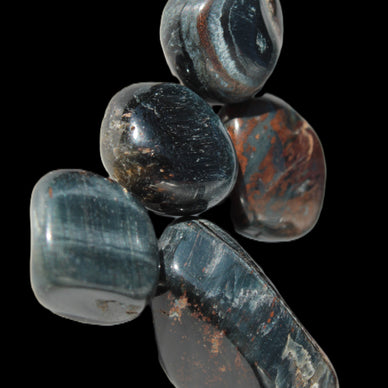 This Rocks and Things item is a Blue Tigers Eye 2-5 small tumble-polished stones selection. These weigh 10-16g.  Blue Tigers Eye’s silky shimmering is useful for illuminating aspects of your situation that might otherwise have been difficult to see.