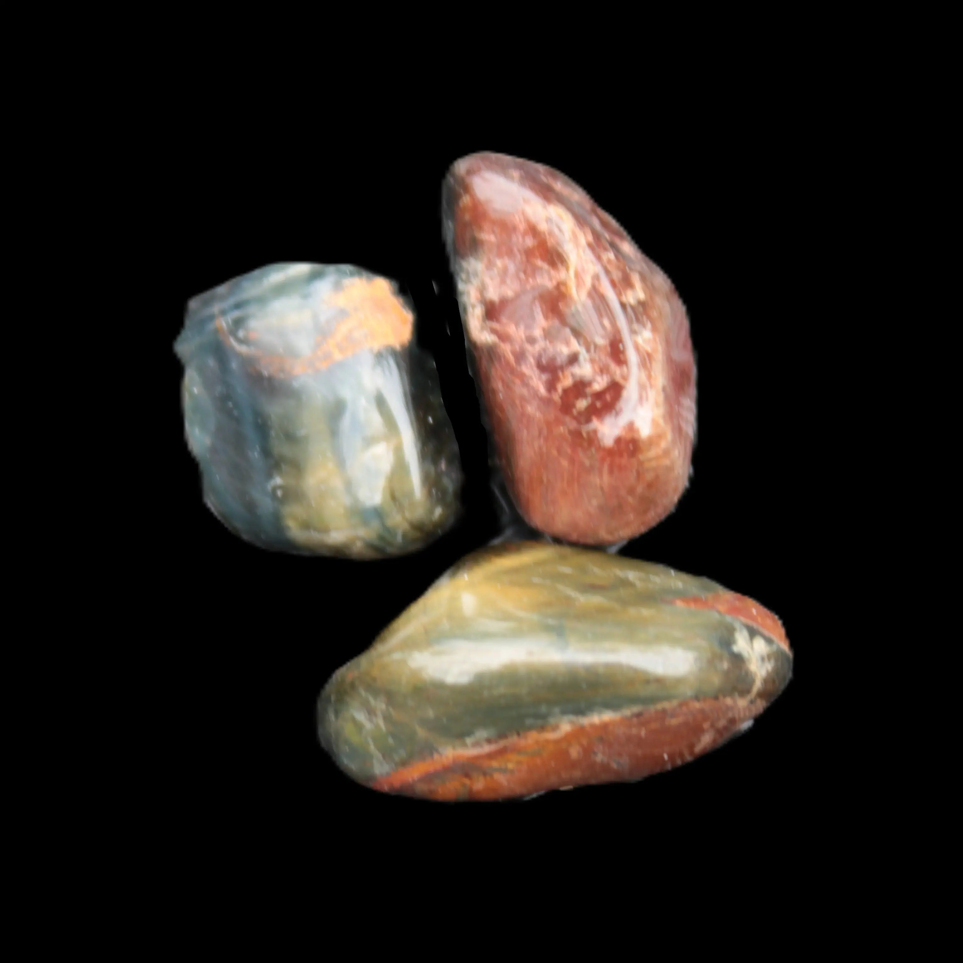 These Blue Tigers Eye 3 tumbled stones selections weigh 10-12g. Blue Tigers Eye is a rarer form of Tigers Eye. These three small tumbled stones shimmer blue. There is also some Red Tigers Eye amongst the blue in some selections.