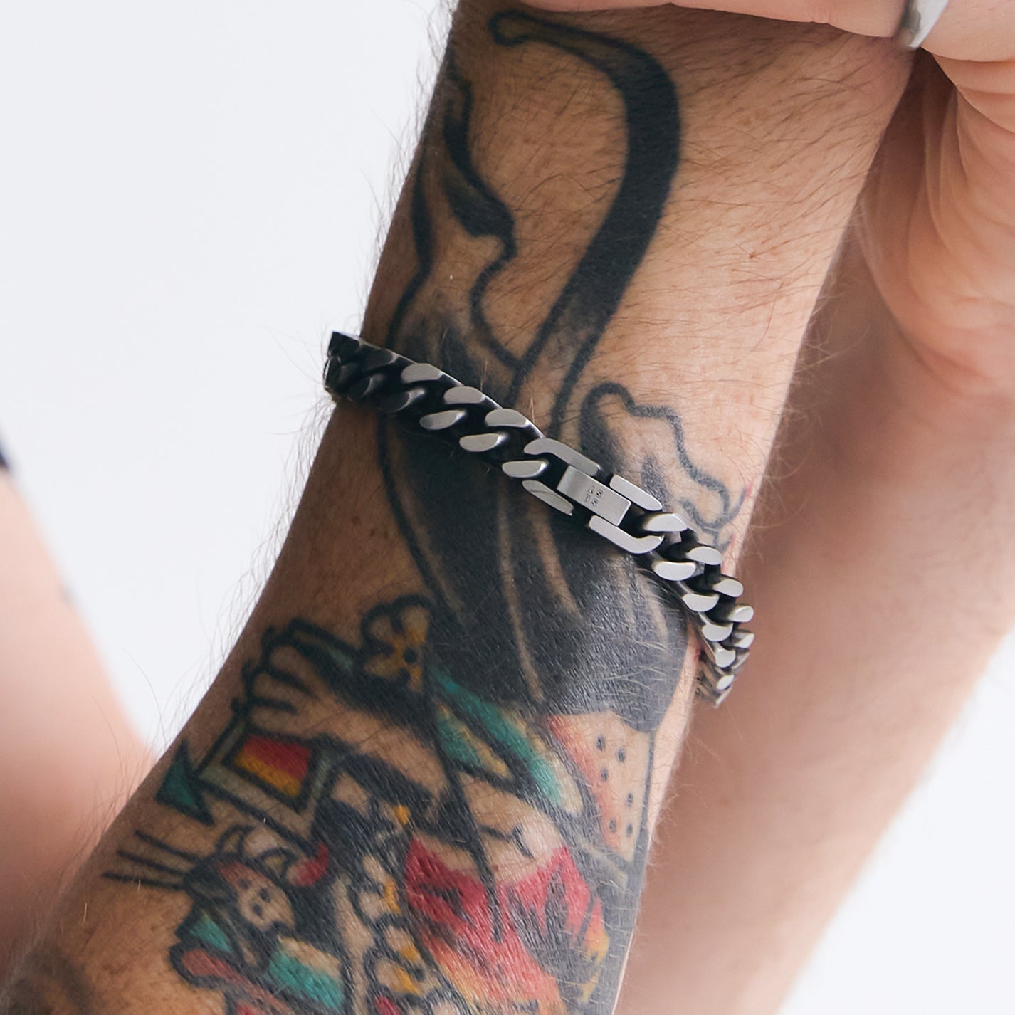 A classic yet bold 10mm link chain bracelet with a fold-over clasp for a secure fit.