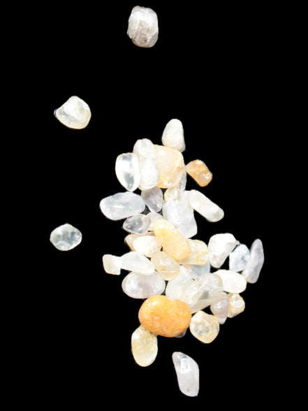 This Britannia Creek 39 high-quality crystals clear mix was found and tumbled by Mark of Rocks and Things Store. The mix weighs 22g. These are finds from the pristine waters of Britannia Creek, Wesburn, in Victoria. The crystals Mark finds there can include Amethyst, Citrine, Quartz, Smoky Quartz and Topaz. In this mix there are many tiny tumbled Citrine, Quartz and Smoky Quartz crystals. There may also be clear Topaz.