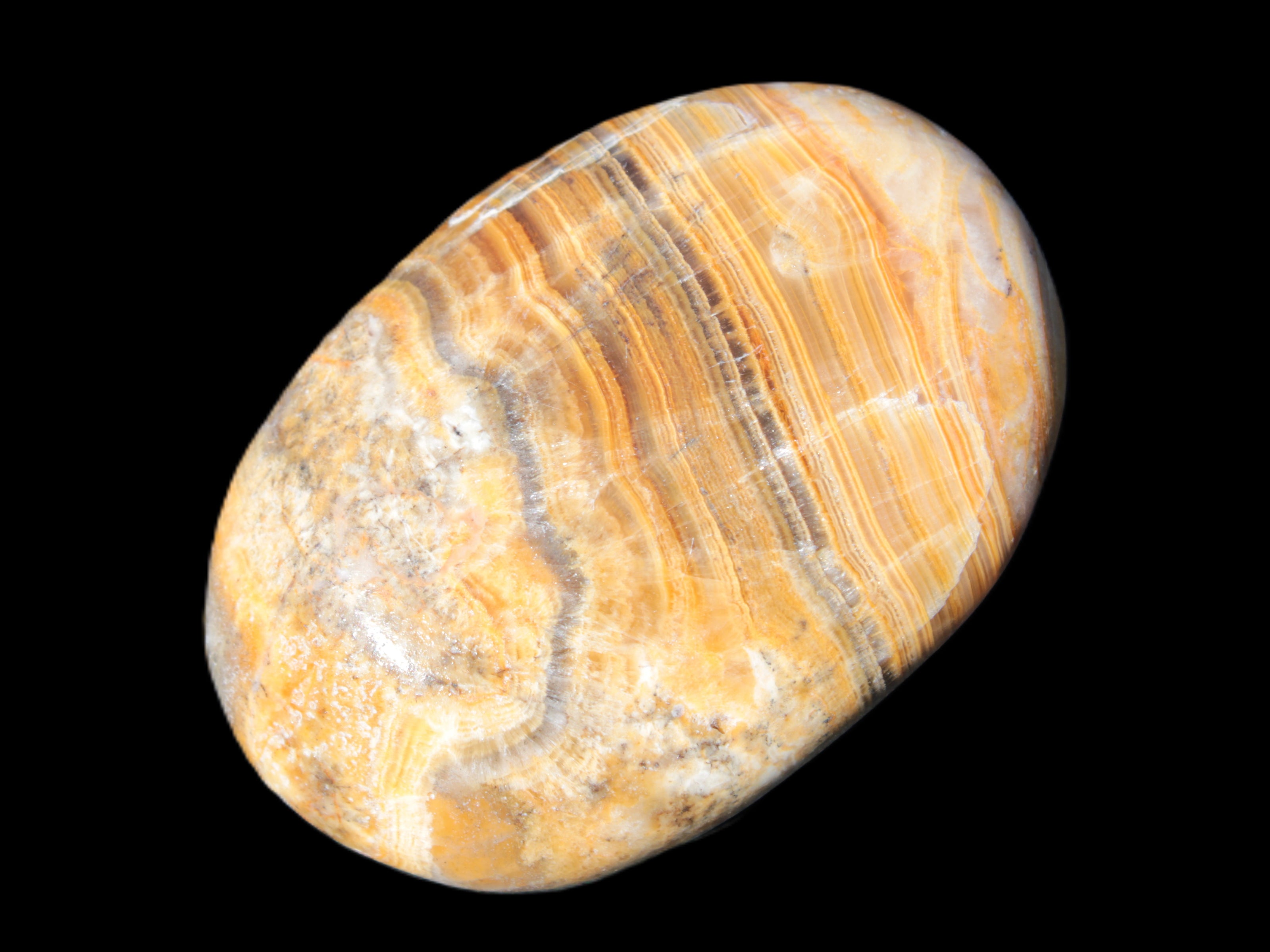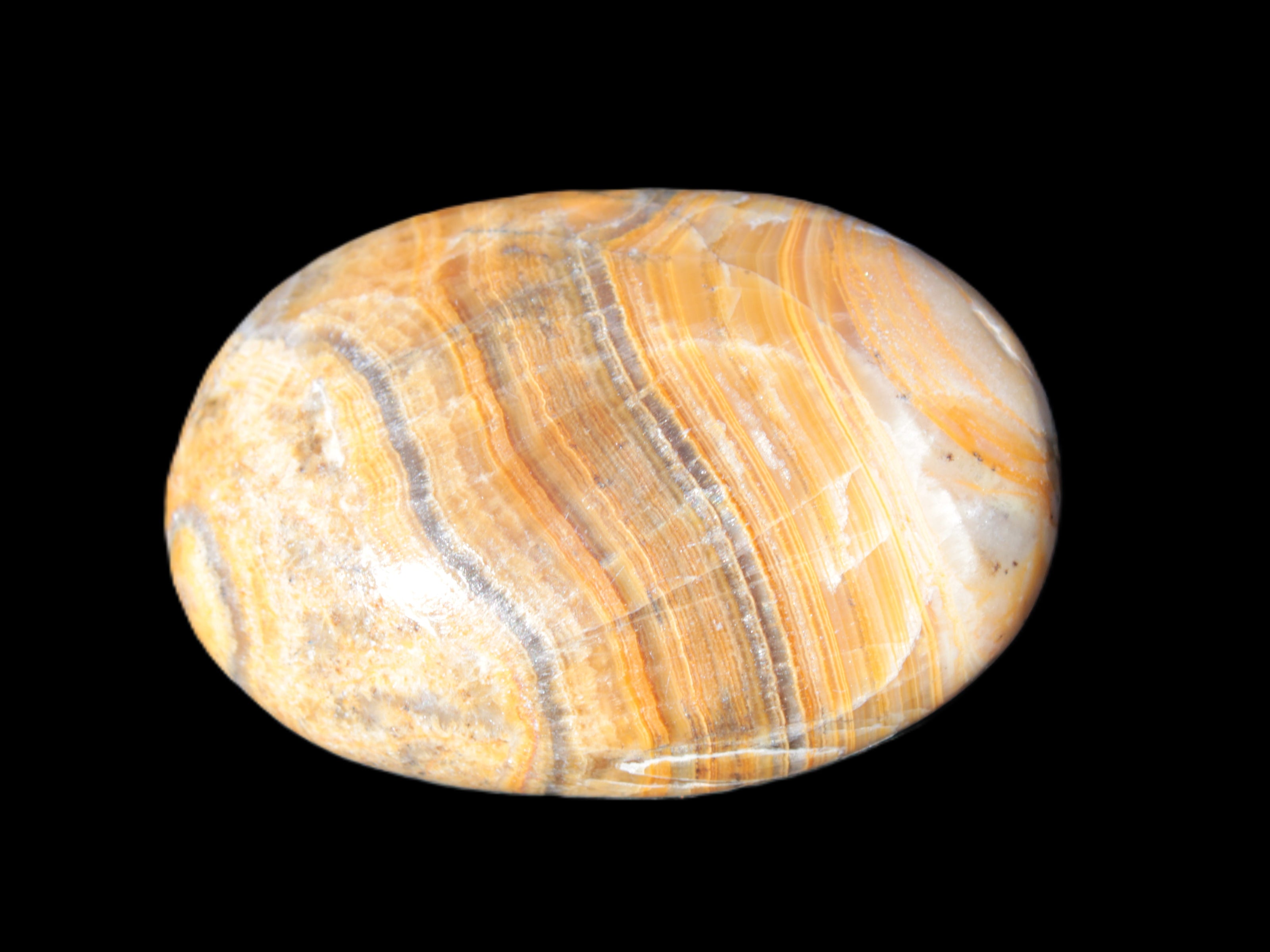 This BumbleBee Calcite palm stone 64-70mm selection weighs 108-130g. These were shaped by Lawrence Riaz from stone he sourced in Pakistan. This is where our partner, Lawrence Handicrafts, is located. Despite some resemblance, Bumblebee Calcite is different to Indonesian Bumblebee Jasper. Bumblebee Calcite, found only in Pakistan, is an unusual form of sedimentary calcite. It is UV reactive, like other forms of Calcite.