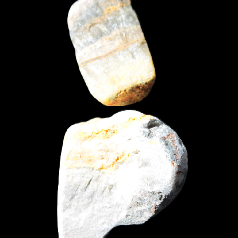 This Bumblebee Jasper two natural stones selection weighs 36-40g. Bumblebee Jasper is a complex combination of volcanic matter, anhydrite, hematite, sulphur, arsenic and other impurities. It is a carbonate, not a true Jasper. The intricate patterns are similar to the colouring found on bumblebees, giving the stone its name. The yellow colouring is due to the presence of sulphur, which is toxic.