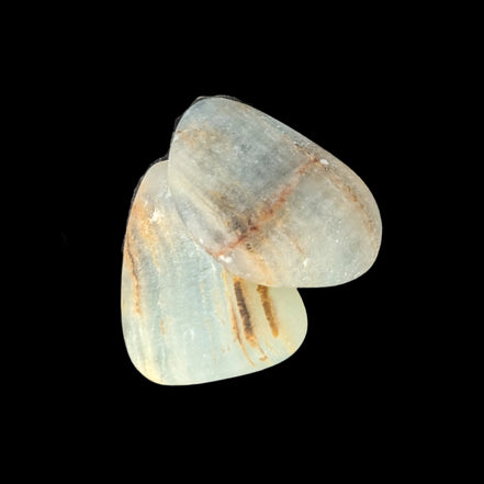 This Caribbean Calcite blue Aragonite, 2 stones selection weighs 14-20g. Aragonite is a calcium carbonate mineral, formed in limestone caves and around hot springs. It has the same composition as Calcite, with a more compact structure. It is often recognised as a twinned pseudo-hexagonal prismatic crystal. Twinning results from interruptions during the growth of the crystal. Aragonite is a powerful stone with strong energies for chakra activation and alignment. It restores balance and raises vibrations to a higher spiritual level. This means that Aragonite will push you to make changes in your daily life.