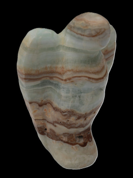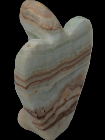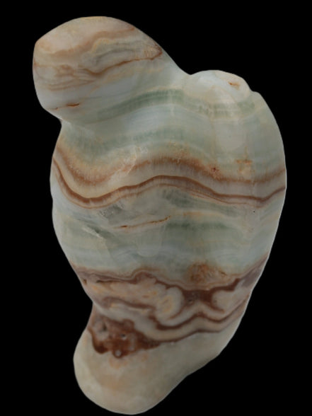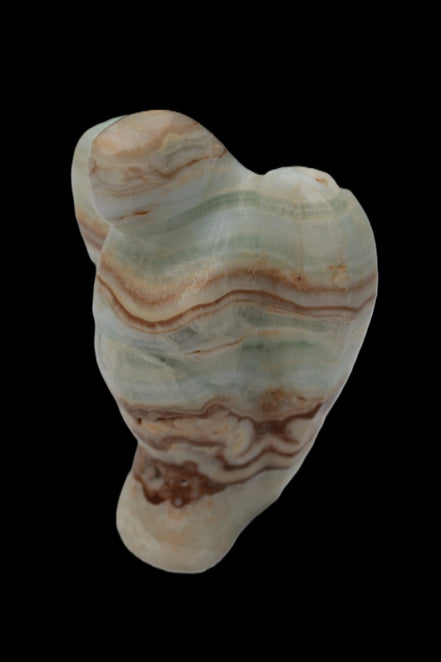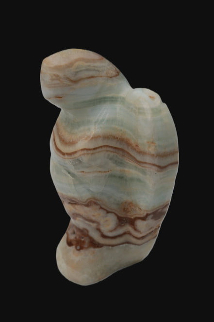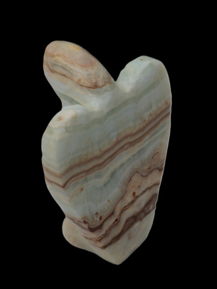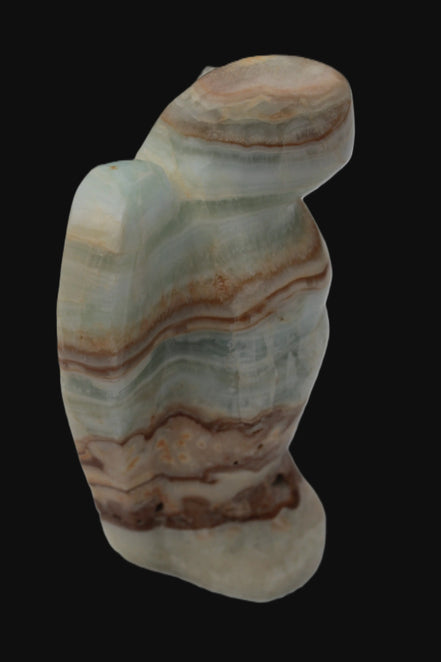 Caribbean Calcite is a new and visually soothing stone composed of blue Calcite and white or brown Aragonite. It evokes peace, promotes inner vision, and is ideal for meditation and gentle emotional release.