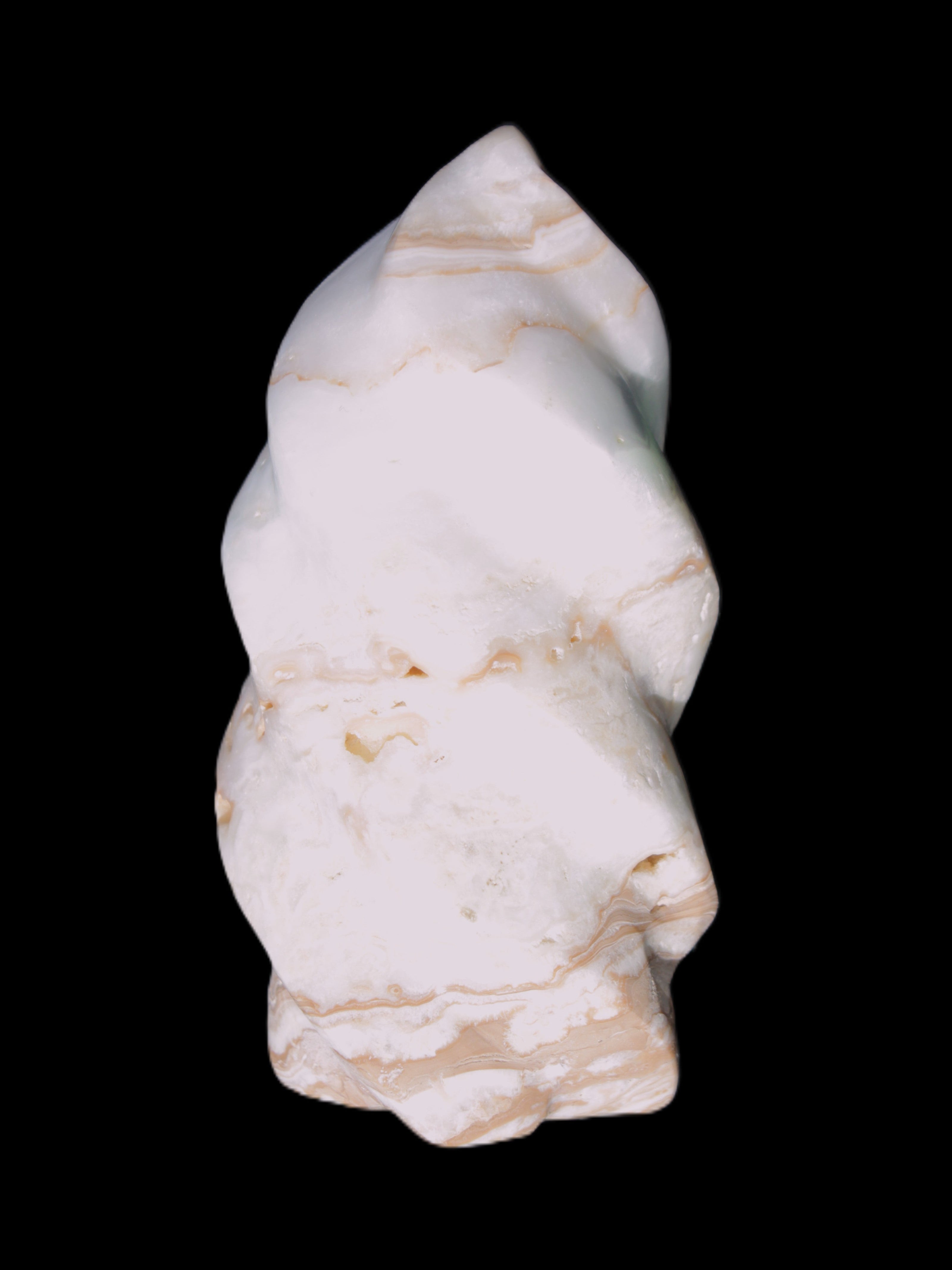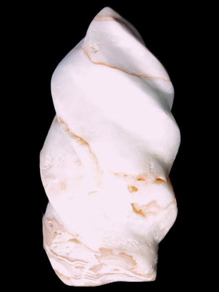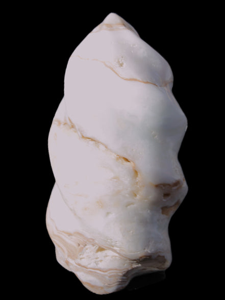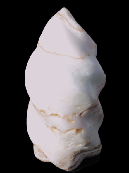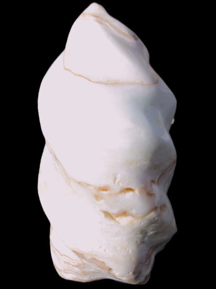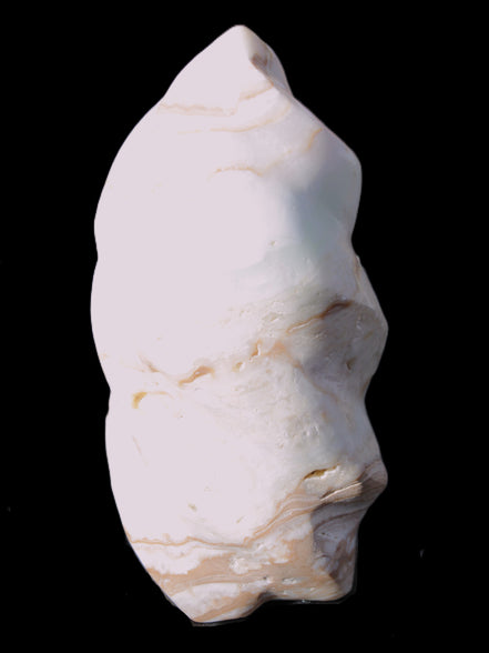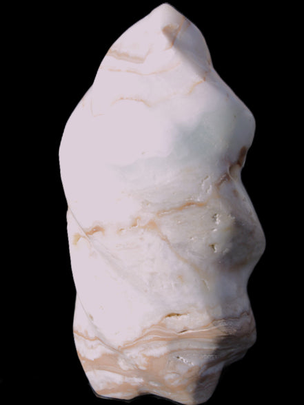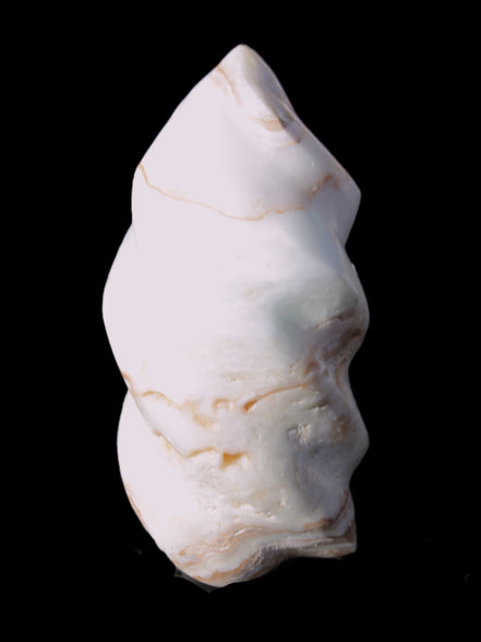 This Caribbean Calcite flame 49*105mm weighs 384g. This flame is formed from Blue Aragonite, rather than Calcite.