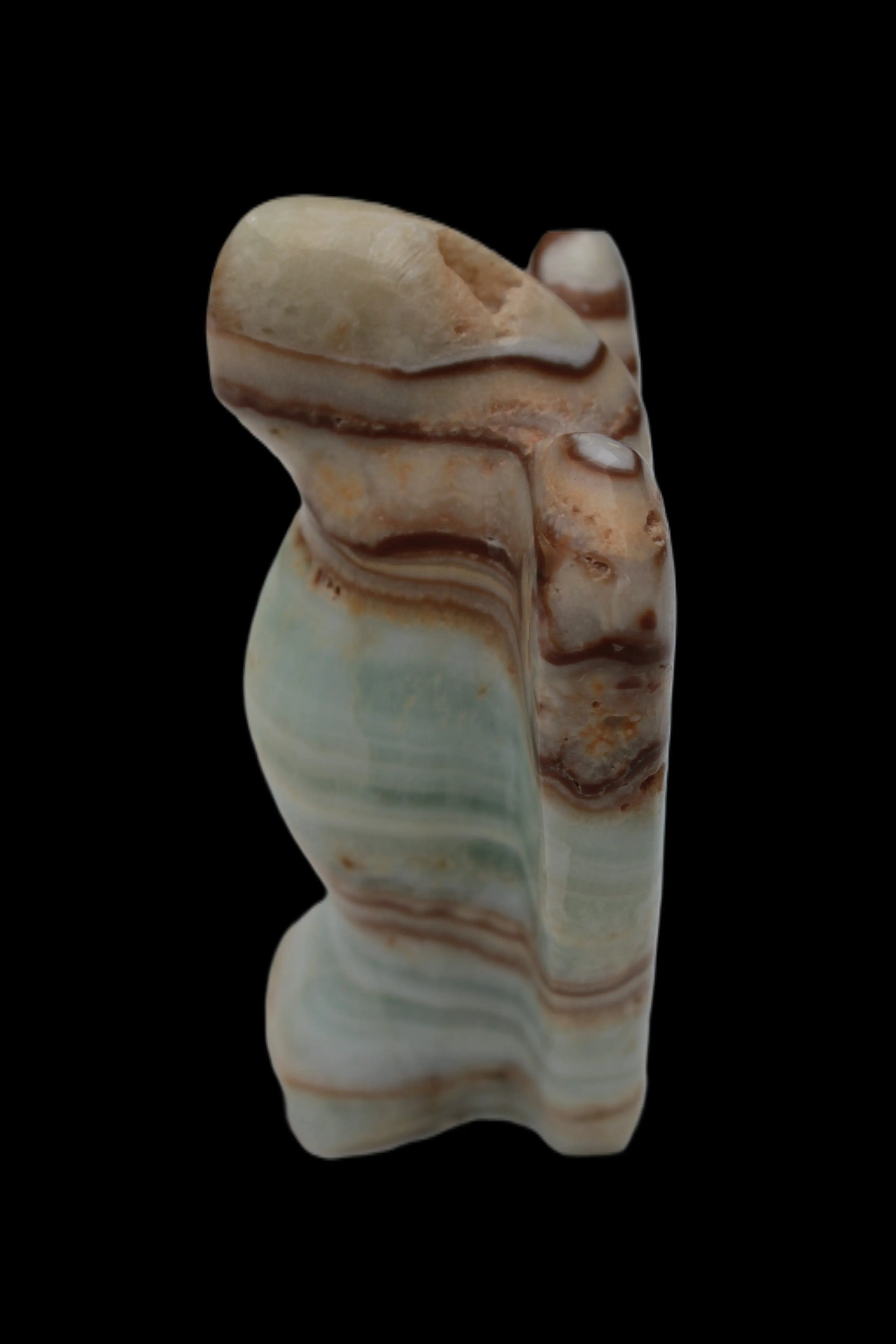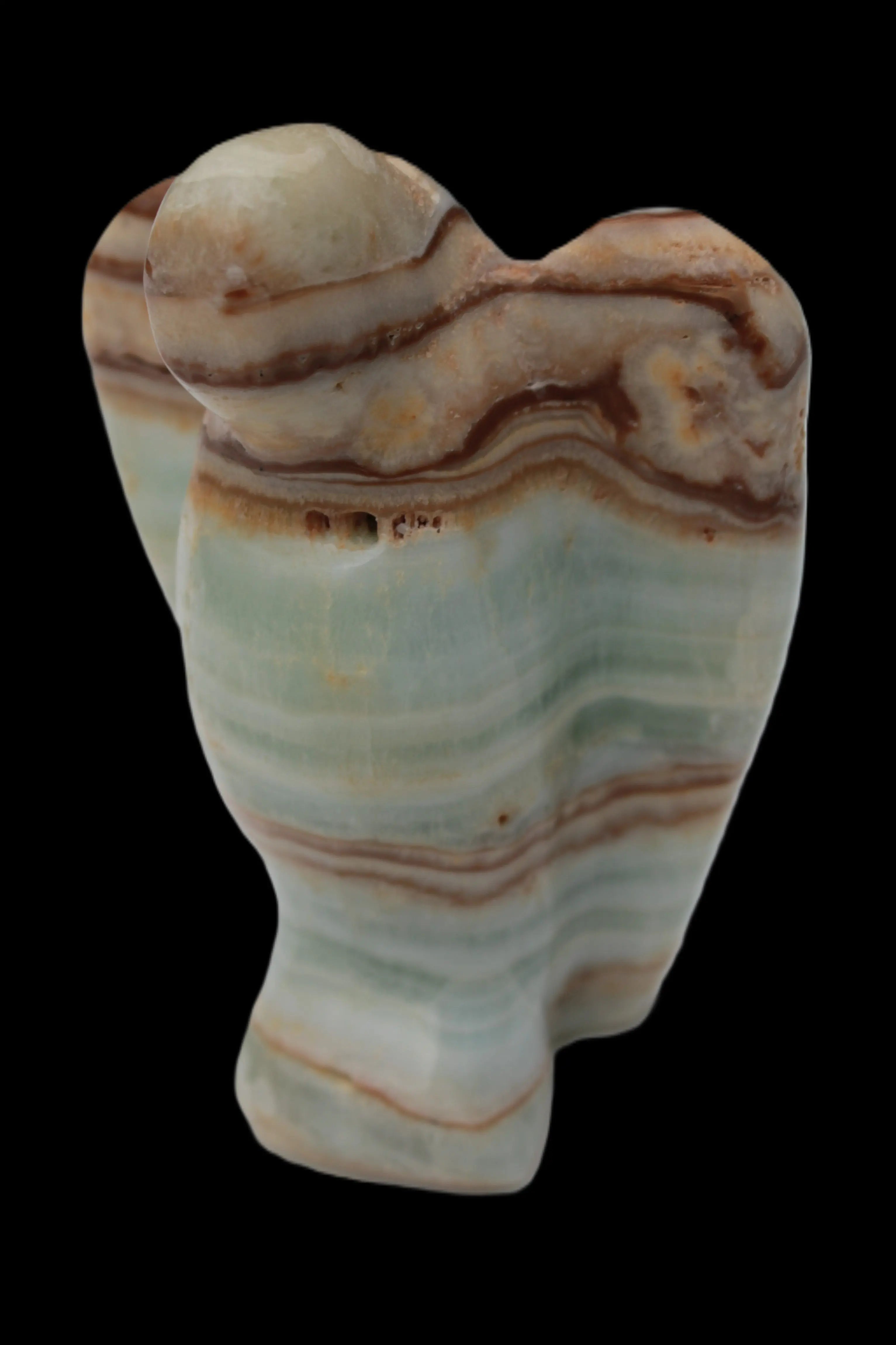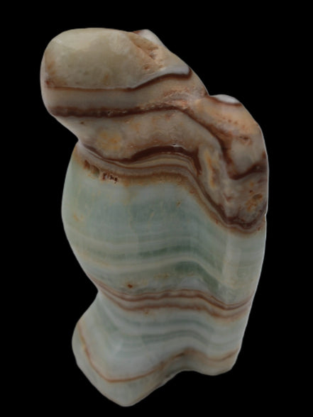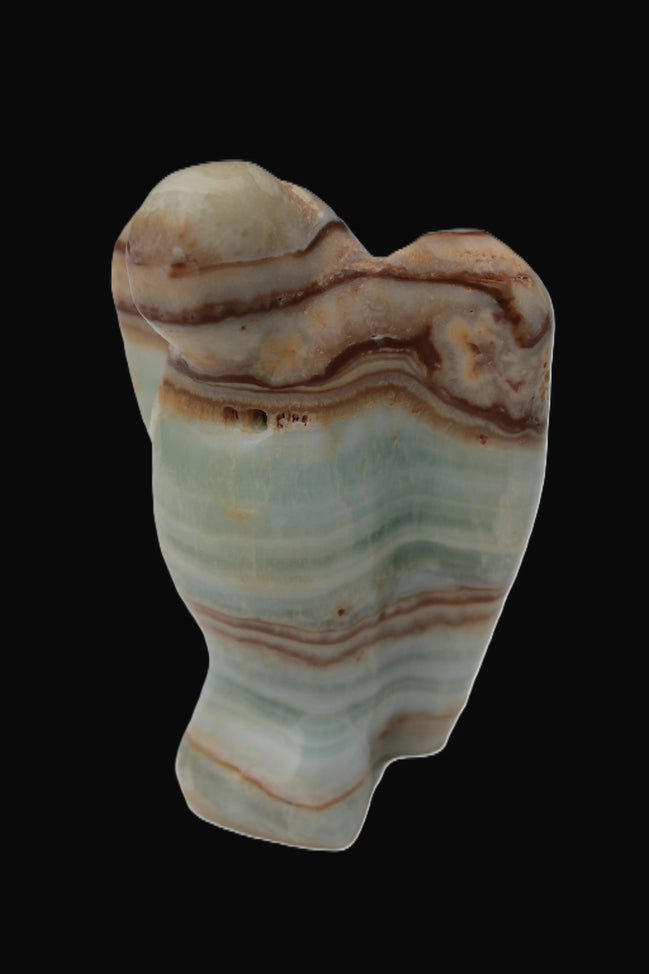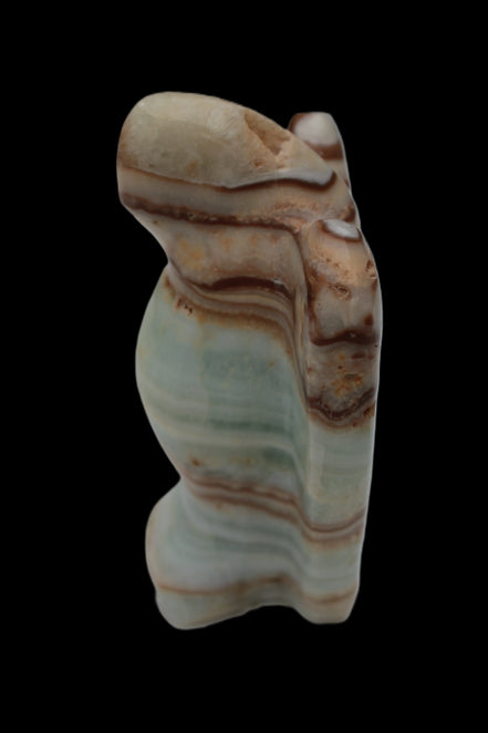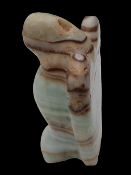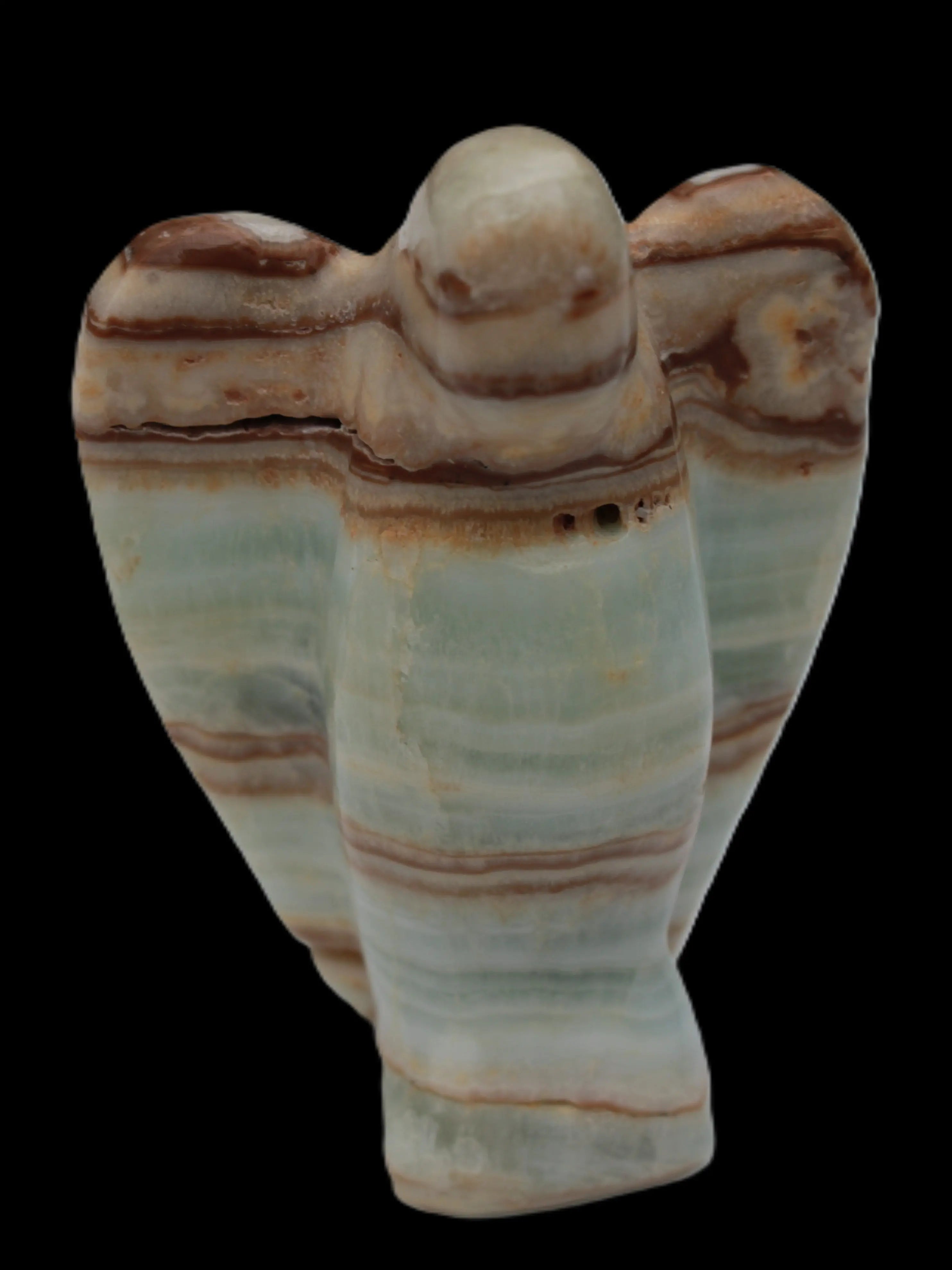 This Caribbean Calcite Guardian Angel 135g was hand-carved in local stone by Lawrence Handicrafts. While called Caribbean Calcite, this stone is actually the mineral Aragonite. It is found only in Pakistan, where Lawrence Handicrafts is located. This guardian Angel is 76mm tall and its wings are 55mm wide.