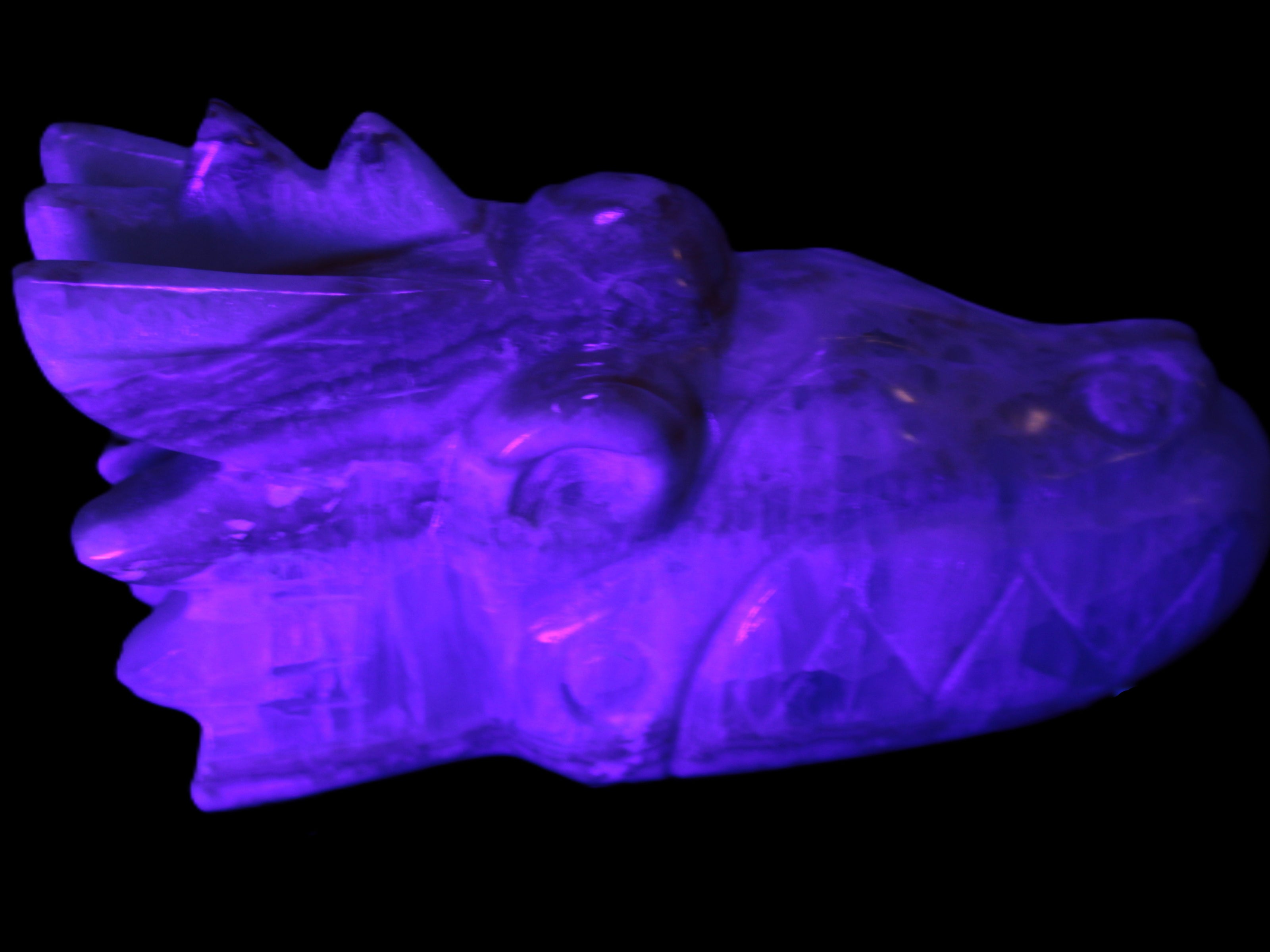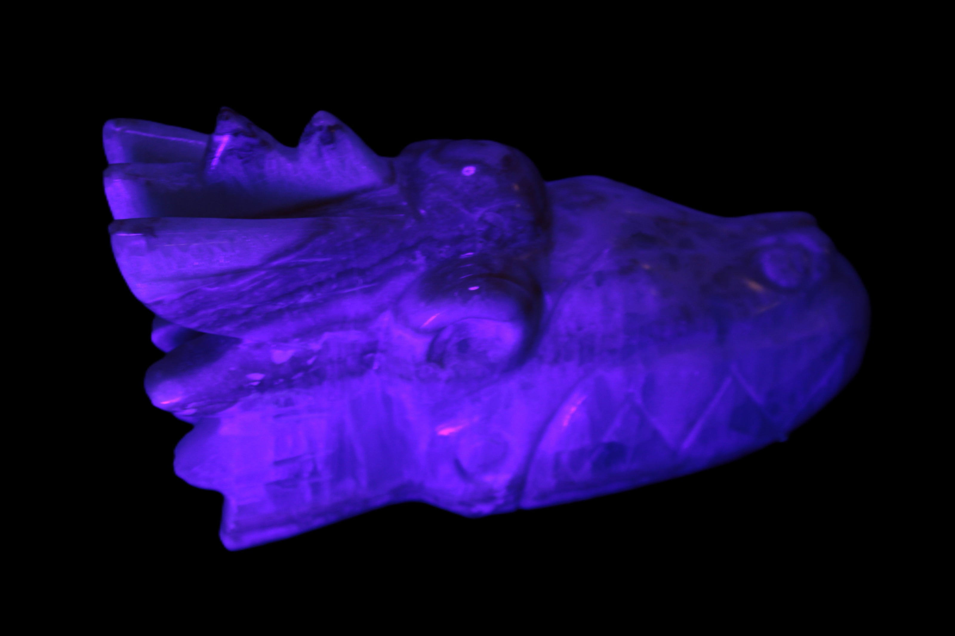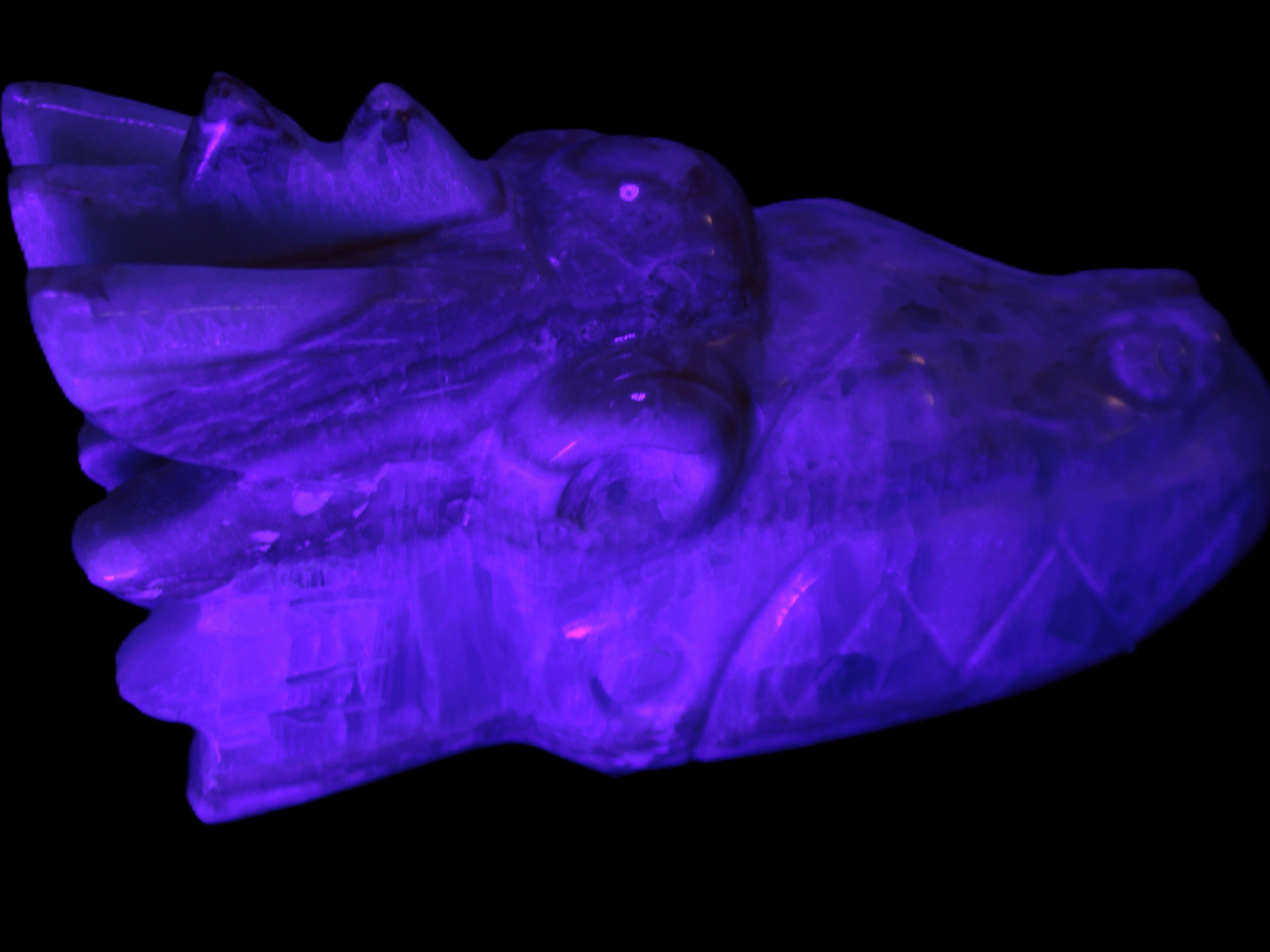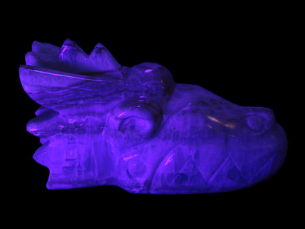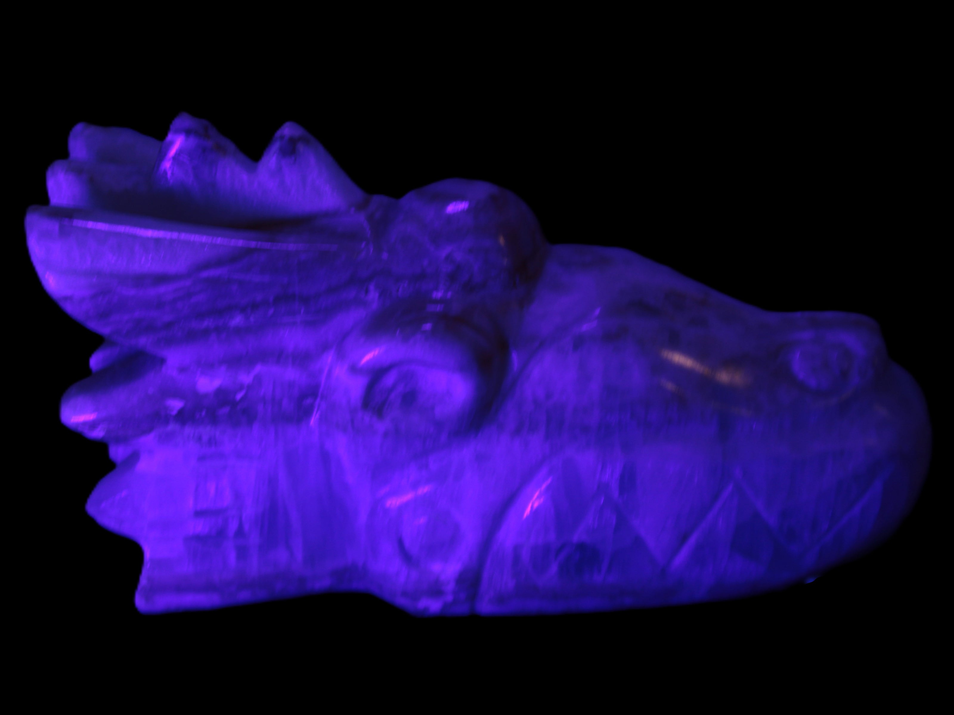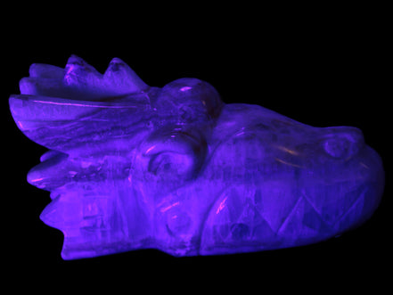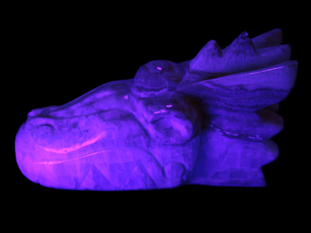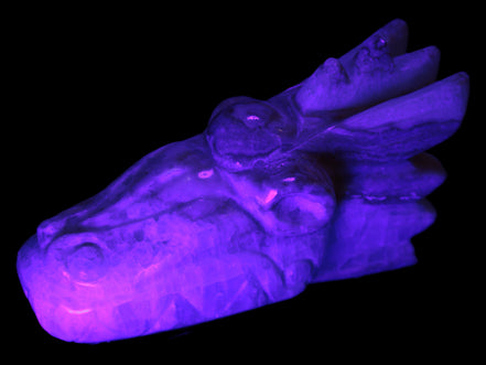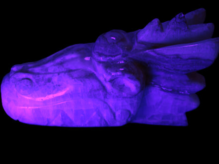 This Caribbean Calcite hand-carved dragon's head weighs 770g. It was crafted by Lawrence Handicrafts from the Caribbean Calcite found locally in Pakistan for Rocks and Things Store.