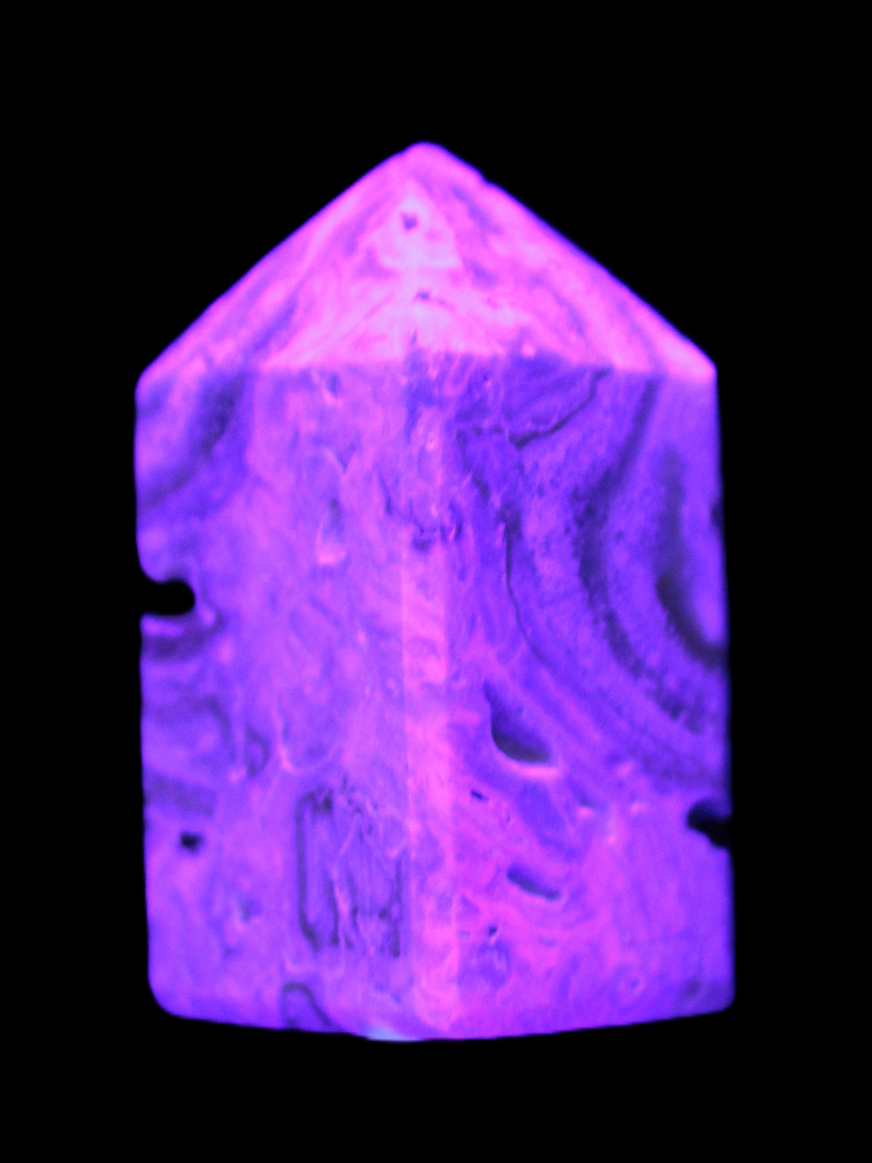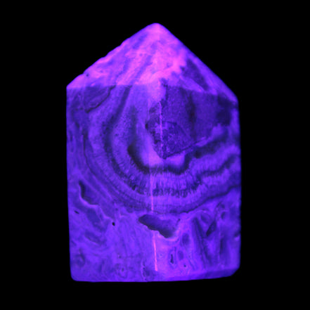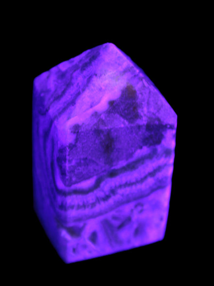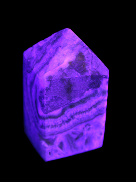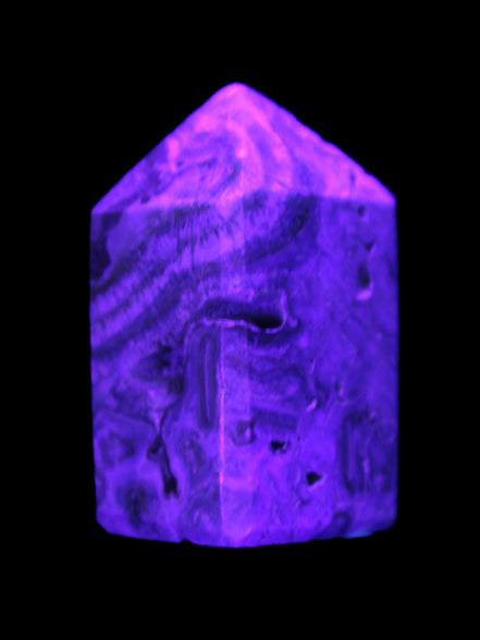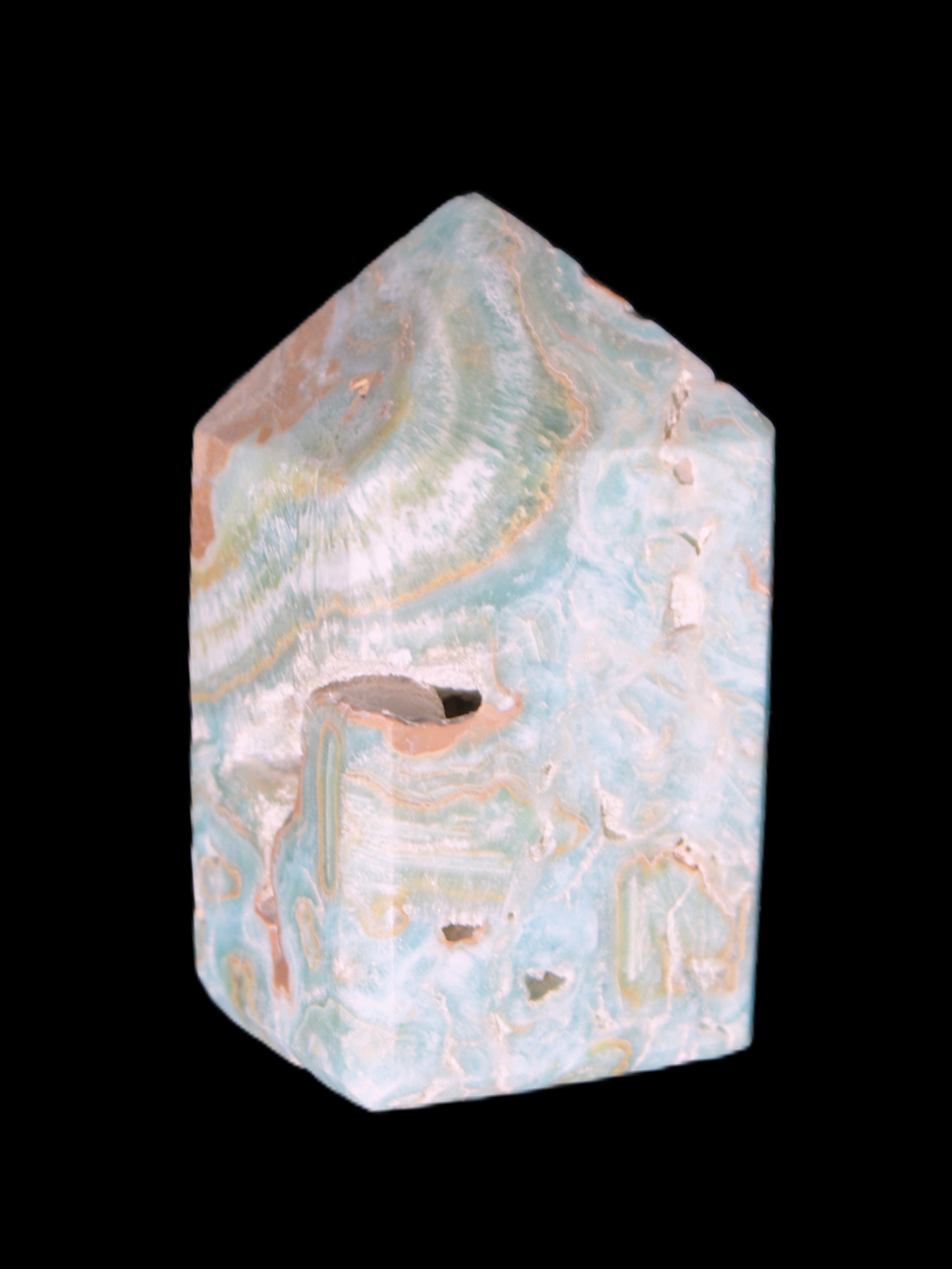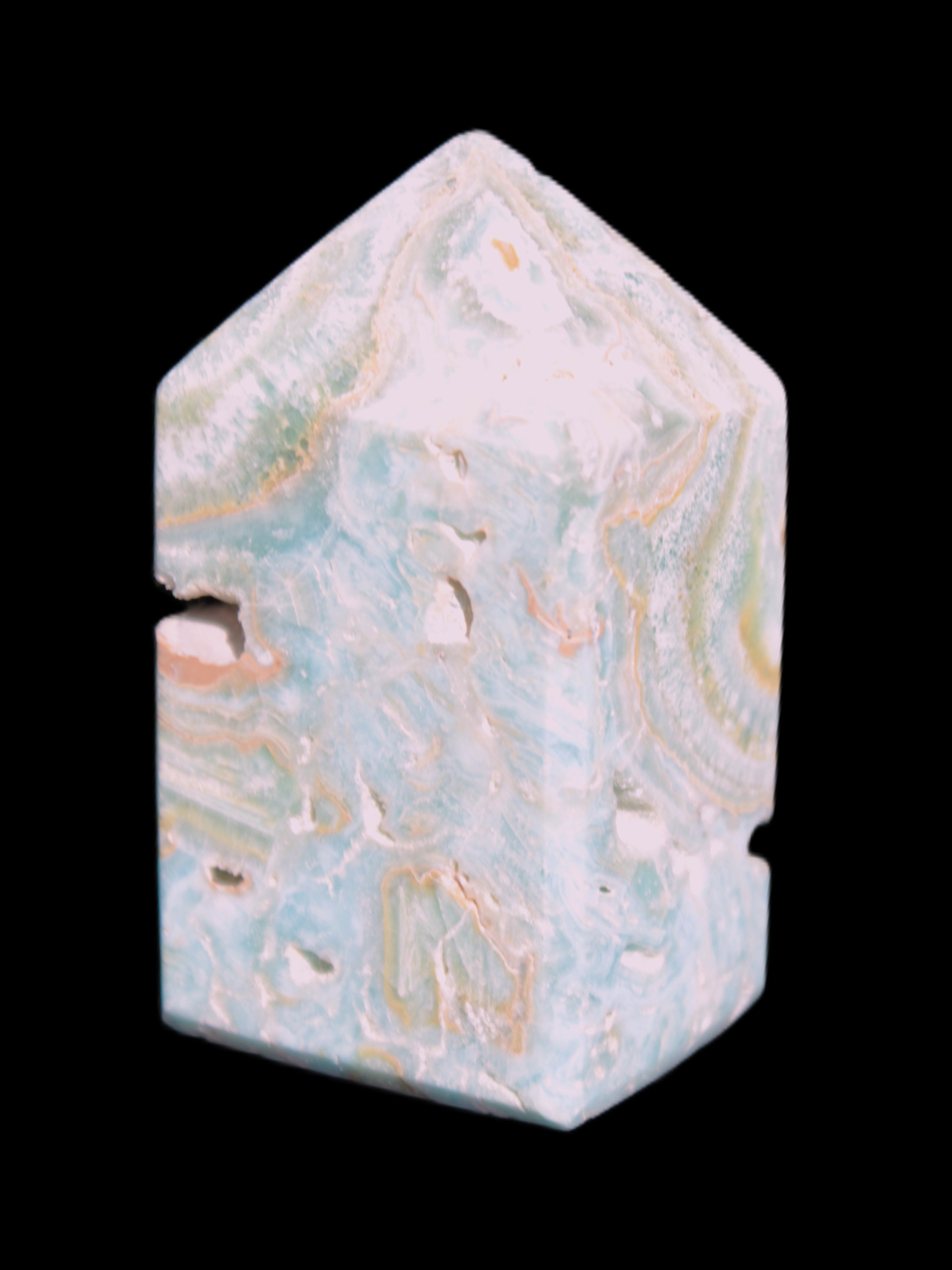 This small Caribbean Calcite obelisk 55*26*29mm weighs 94g. This is a rectangular tower. It is 55mm tall and 36mm by 29mm wide at its base. Caribbean Calcite is a form of Aragonite.