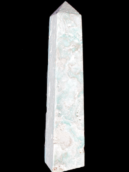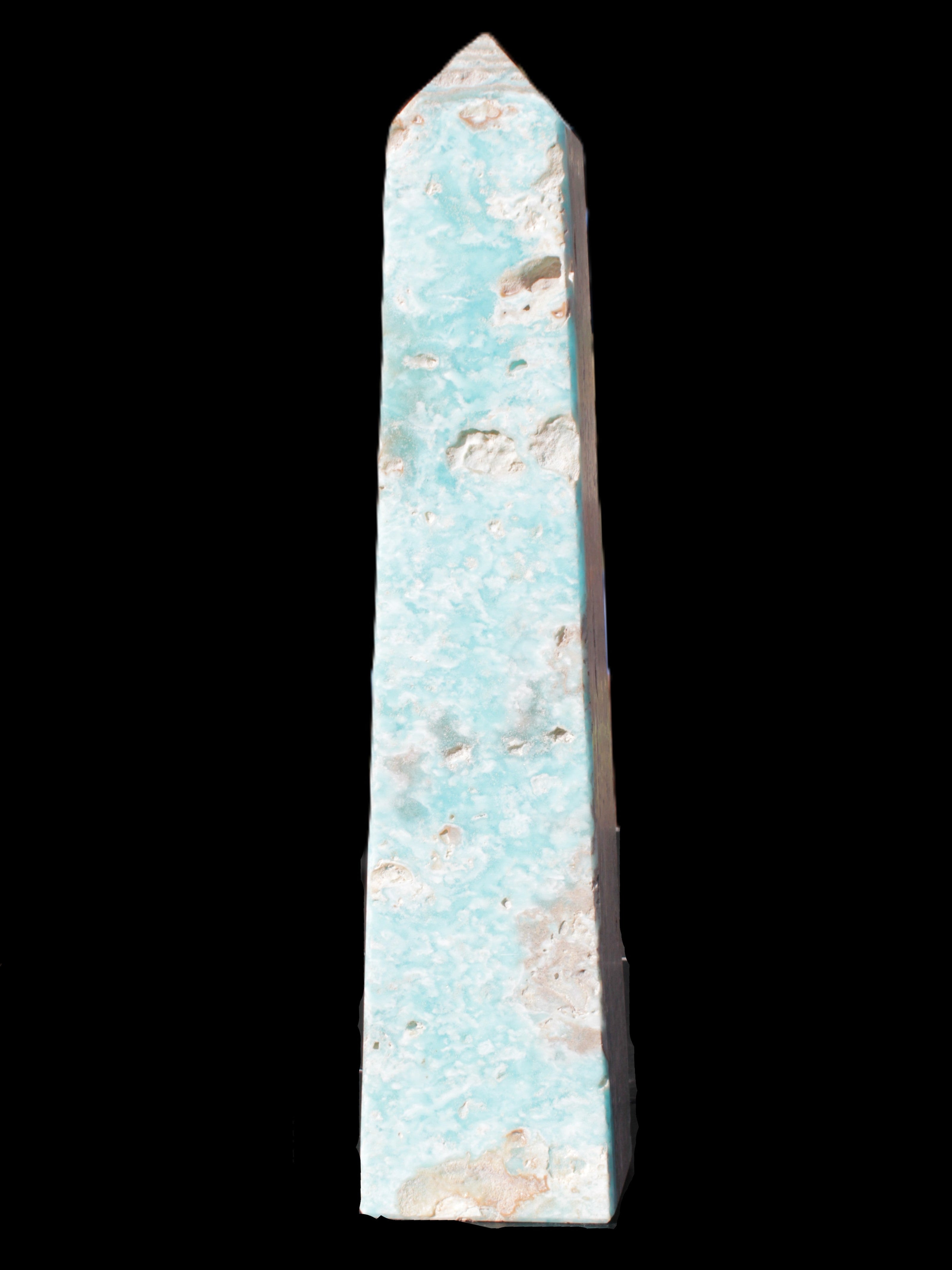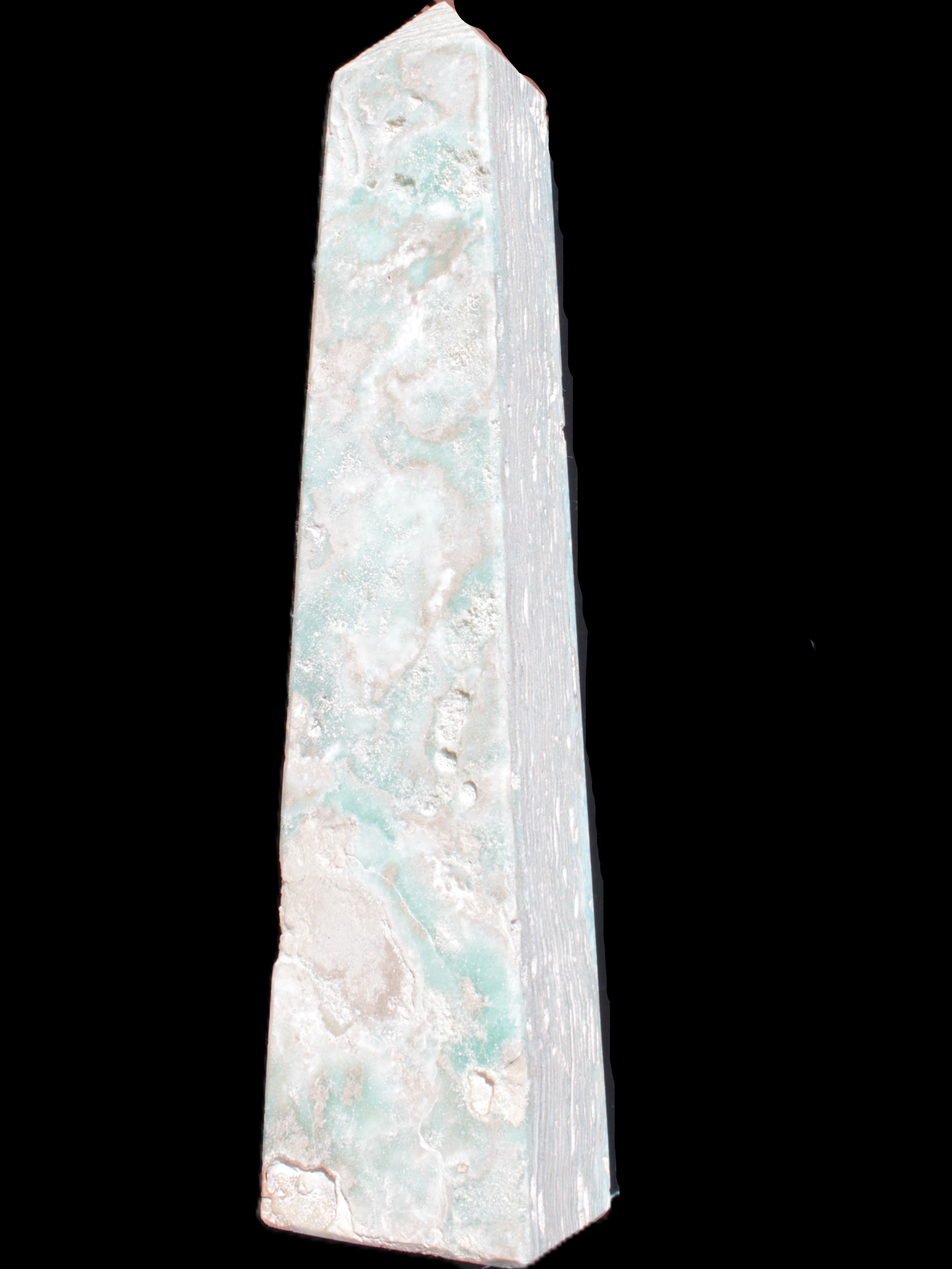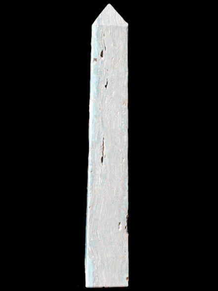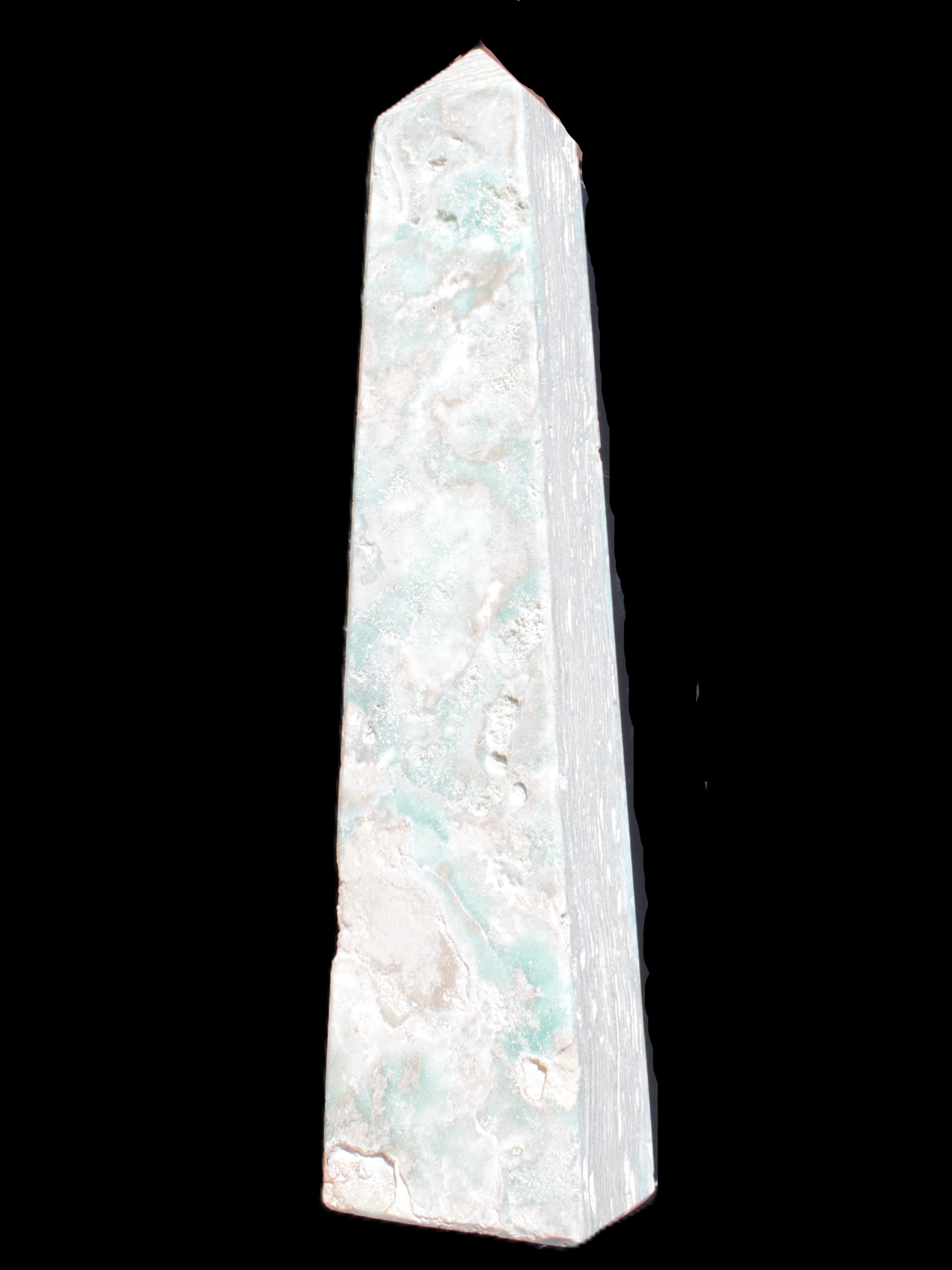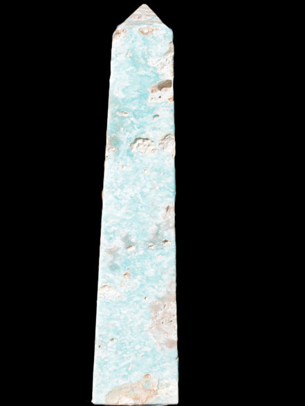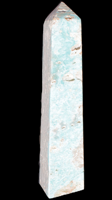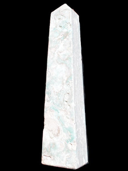 This large Caribbean Calcite obelisk 83*59*375mm weighs 3089g.  It was sourced and shaped from local stone in Pakistan by our partner, Lawrence Handicrafts. Blue Aragonite, also sometimes called Caribbean Calcite, is a form of Aragonite.
