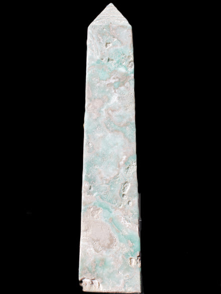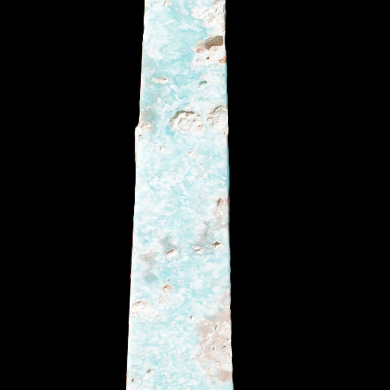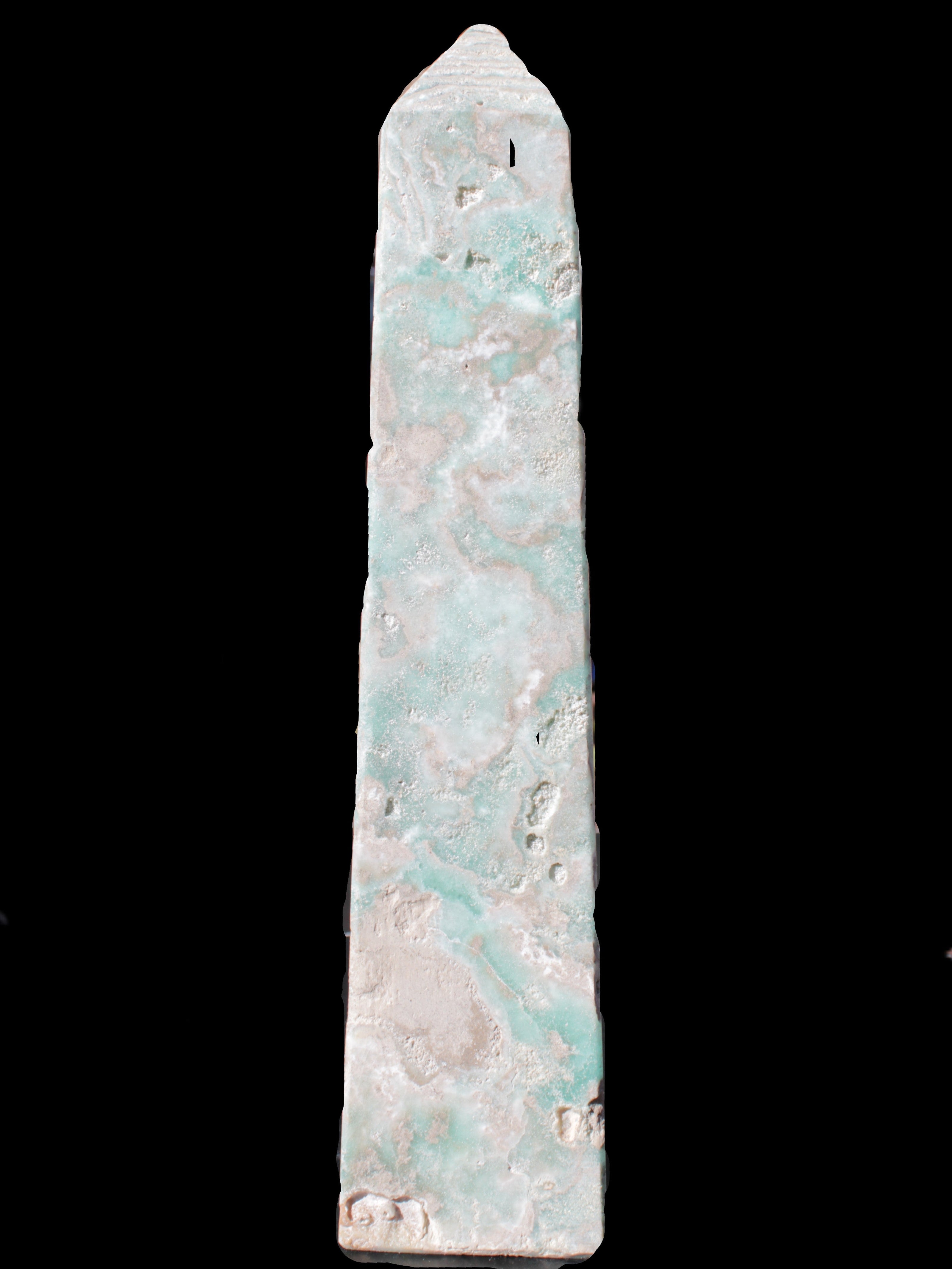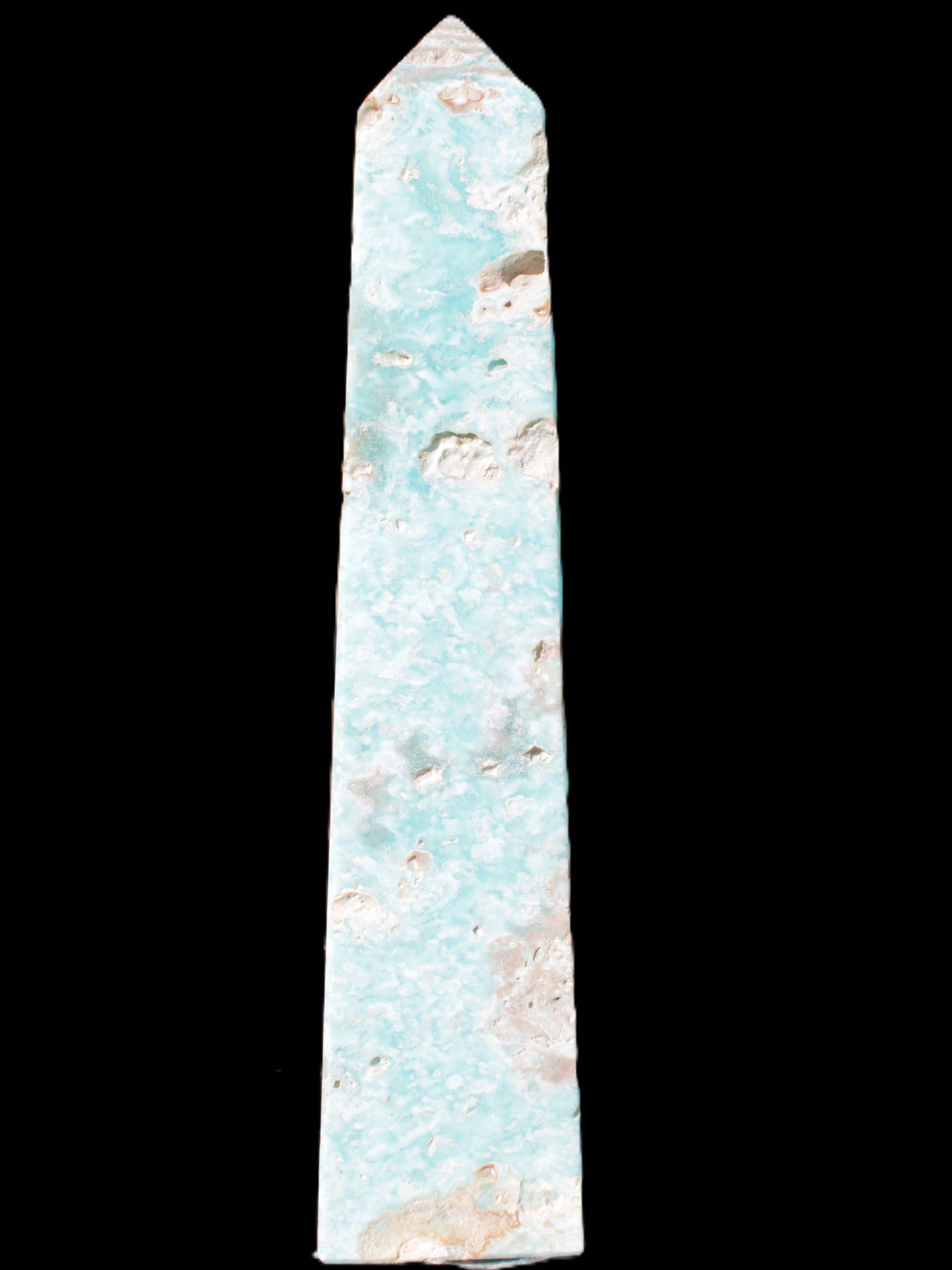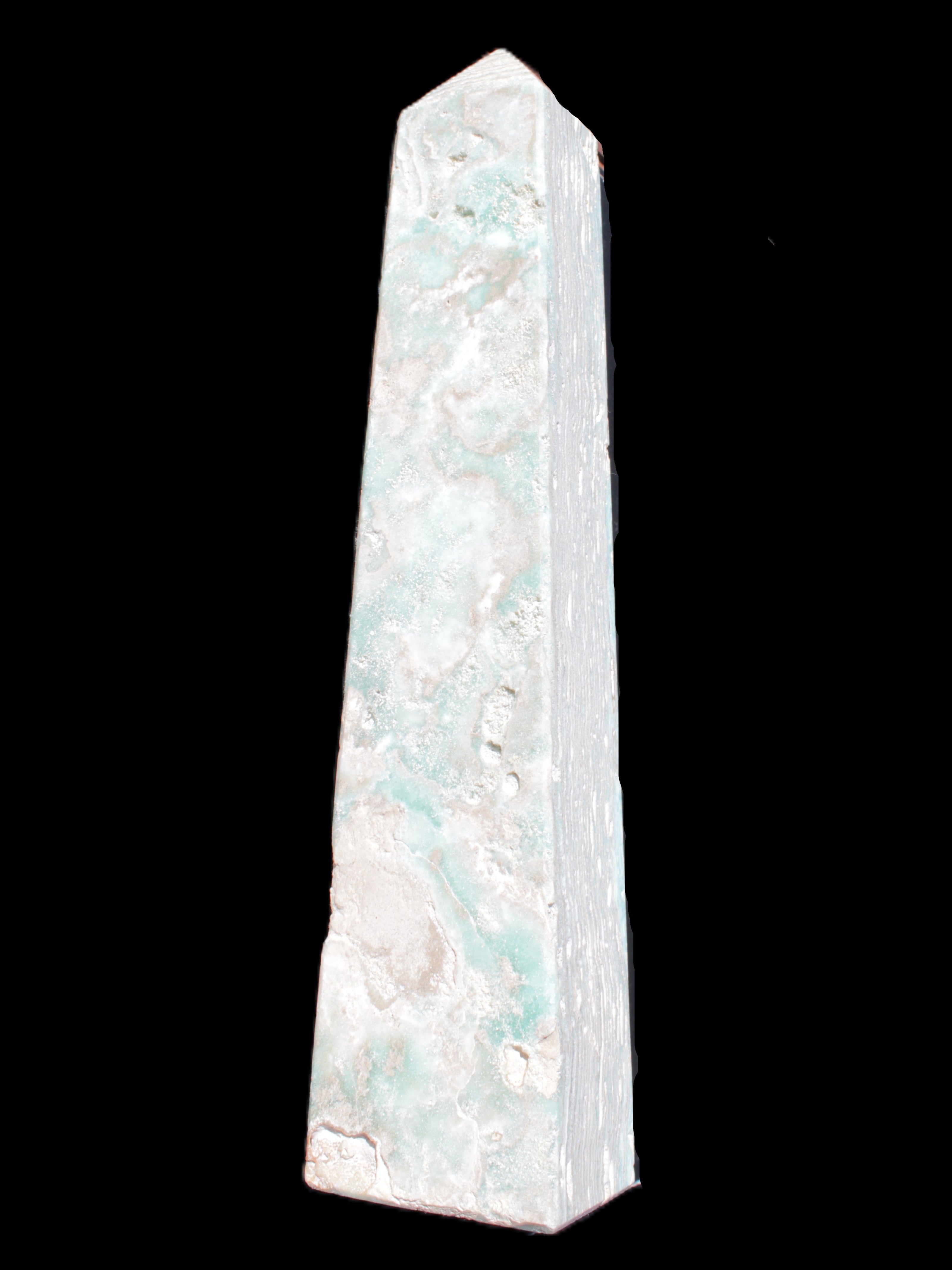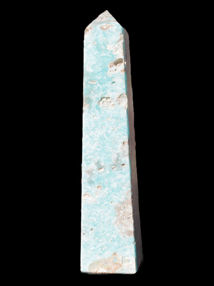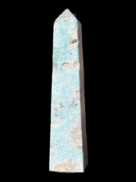 This large Caribbean Calcite obelisk 83*59*375mm weighs 3089g.  It was sourced and shaped from local stone in Pakistan by our partner, Lawrence Handicrafts. Blue Aragonite, also sometimes called Caribbean Calcite, is a form of Aragonite.