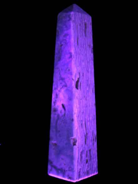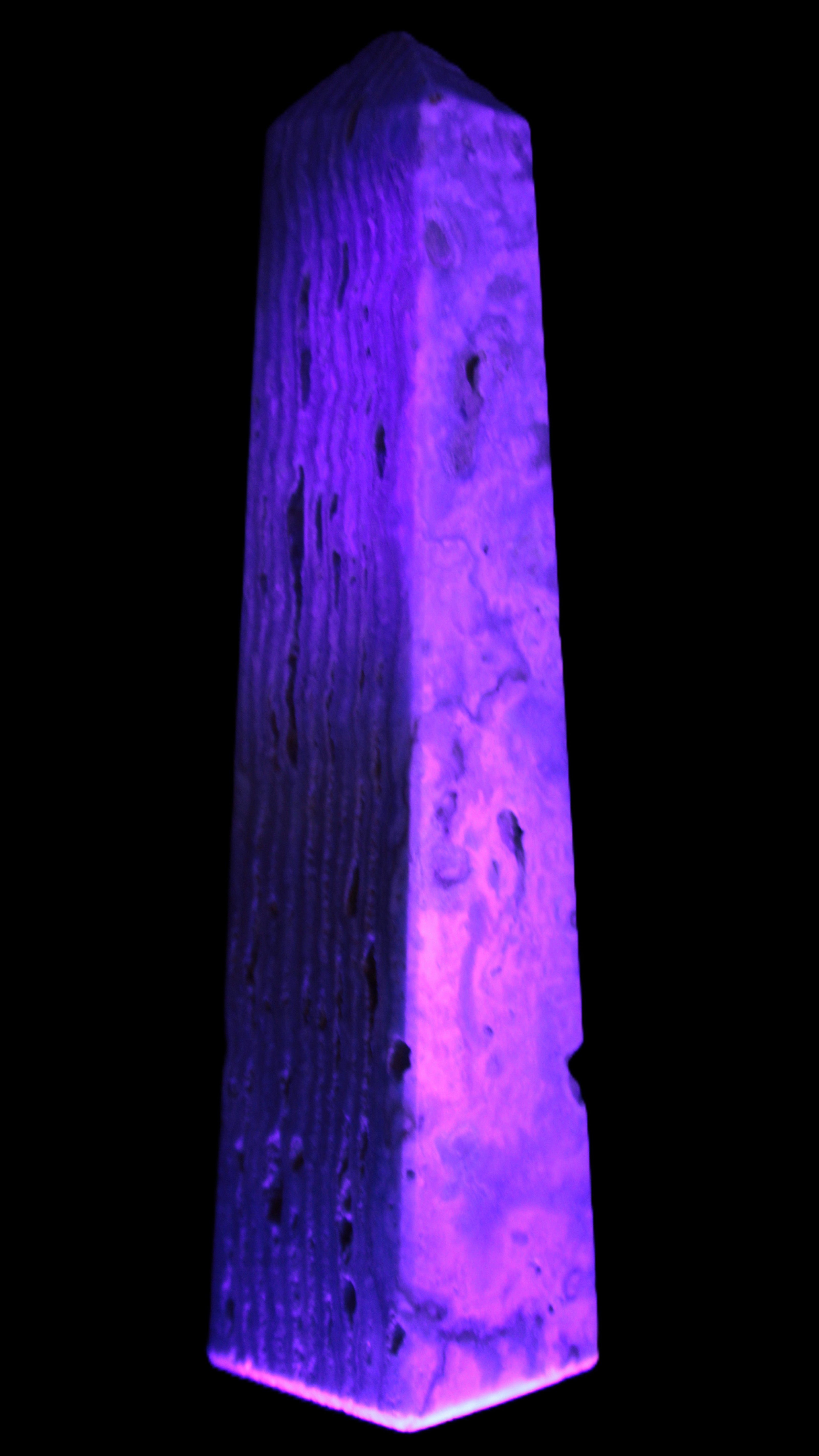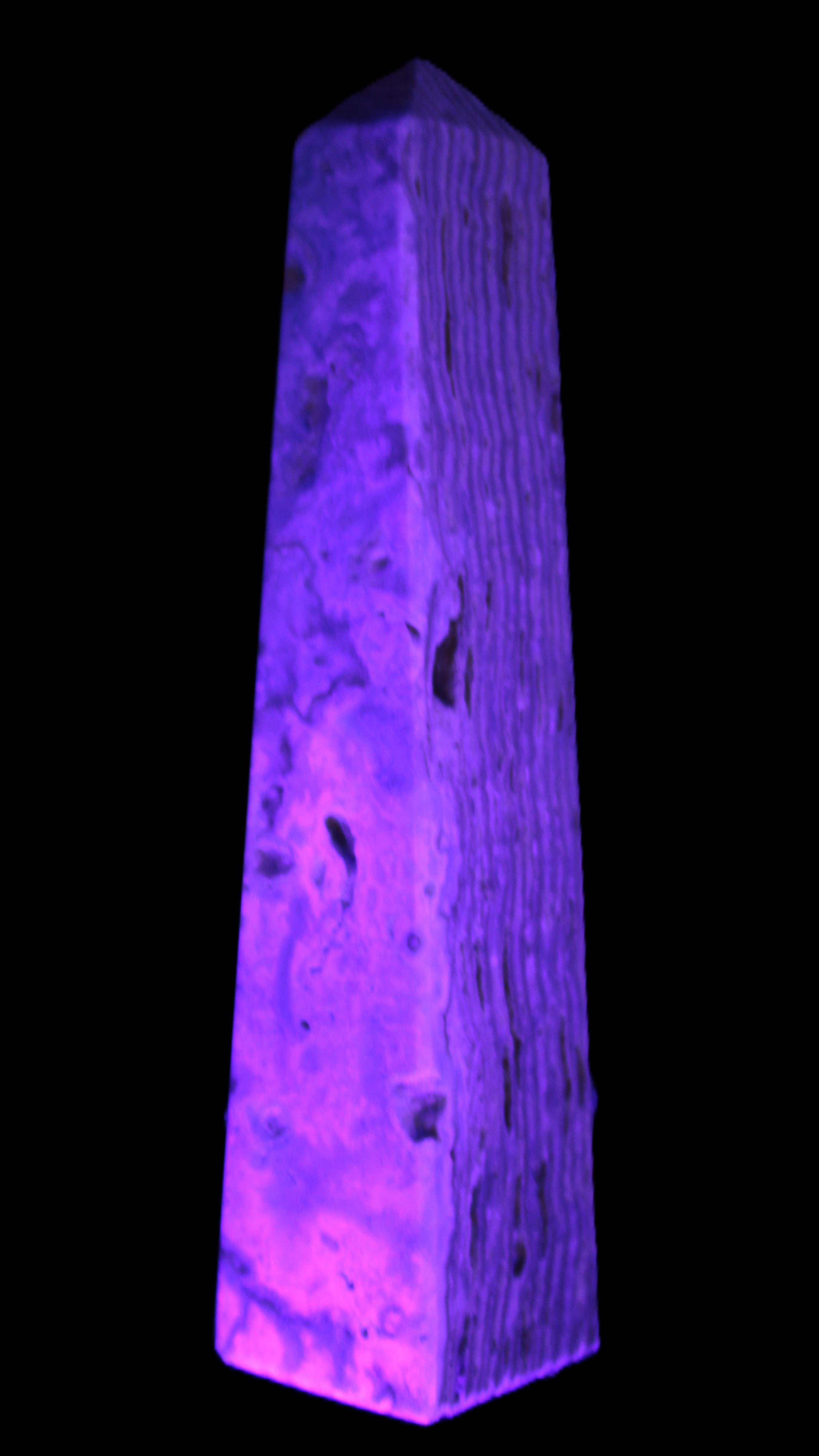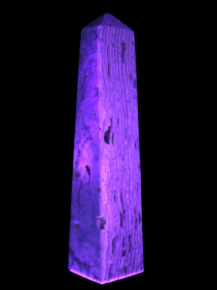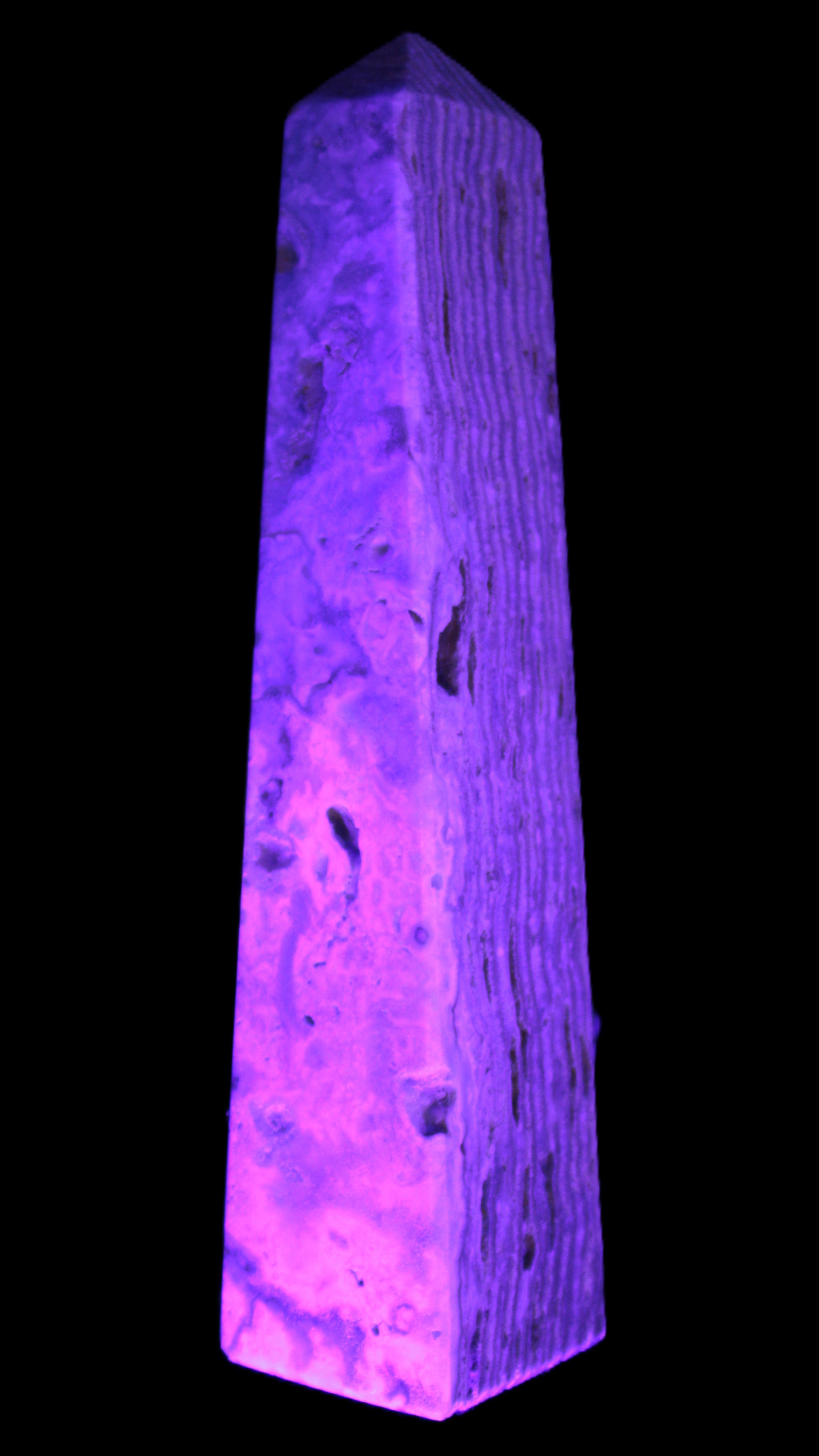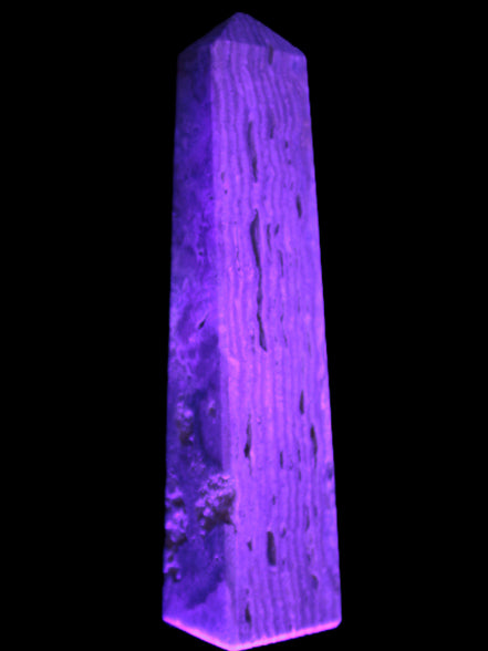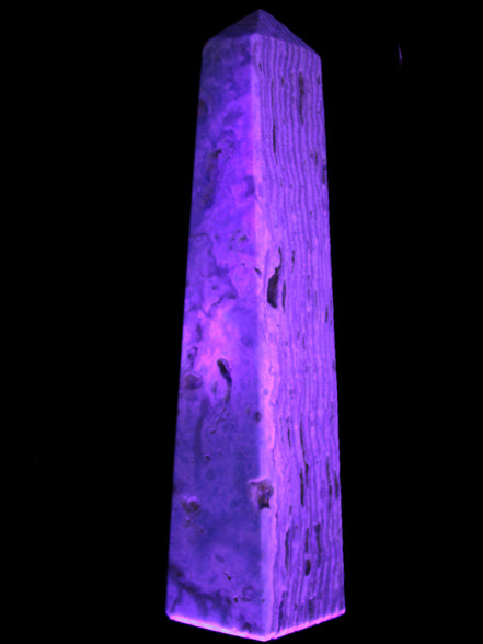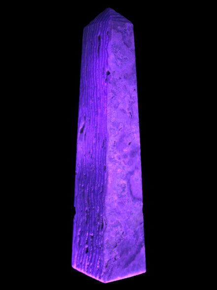This Caribbean Calcite obelisk 95*40*44mm weighs 571g. This is a rectangular tower. It is 95mm tall and 44mm by 40mm wide at its base. Caribbean Calcite is a form of Aragonite.