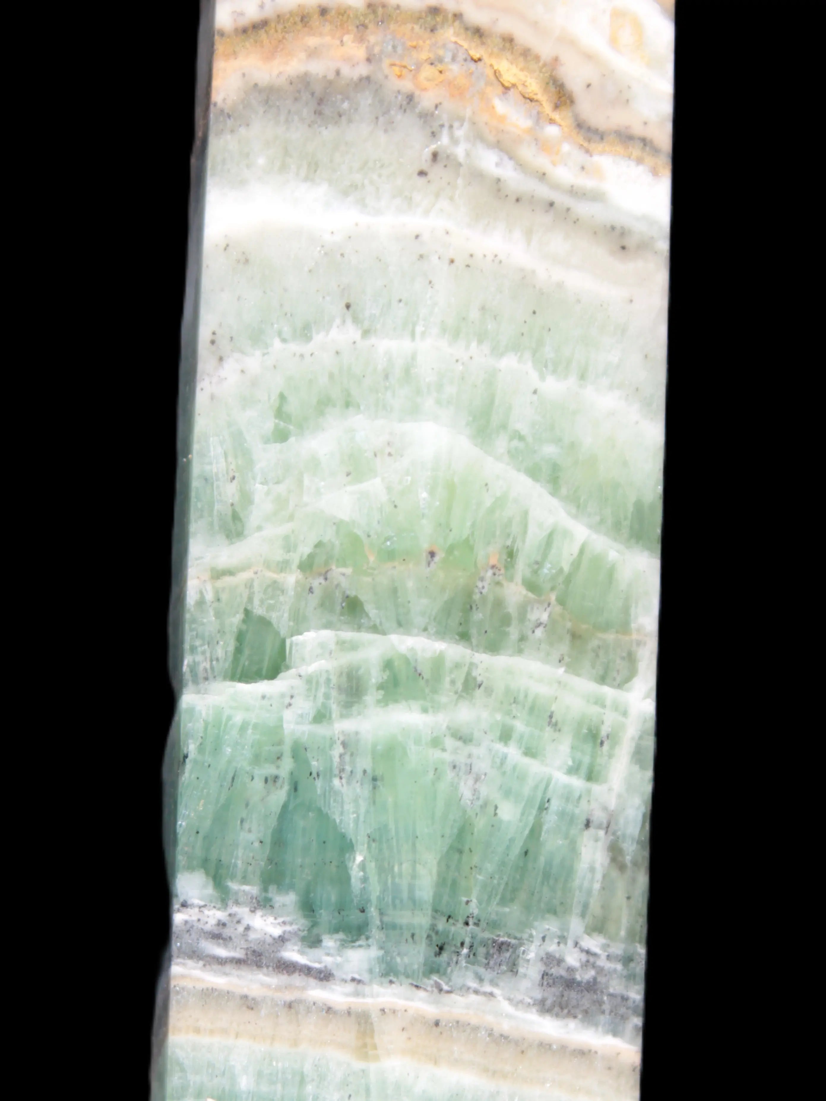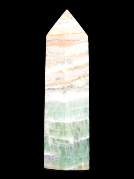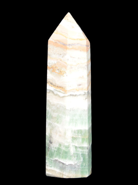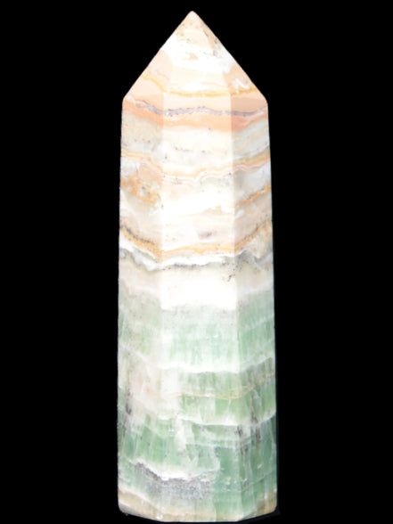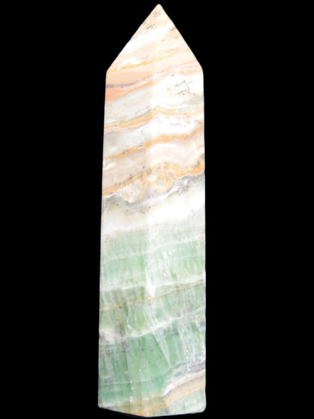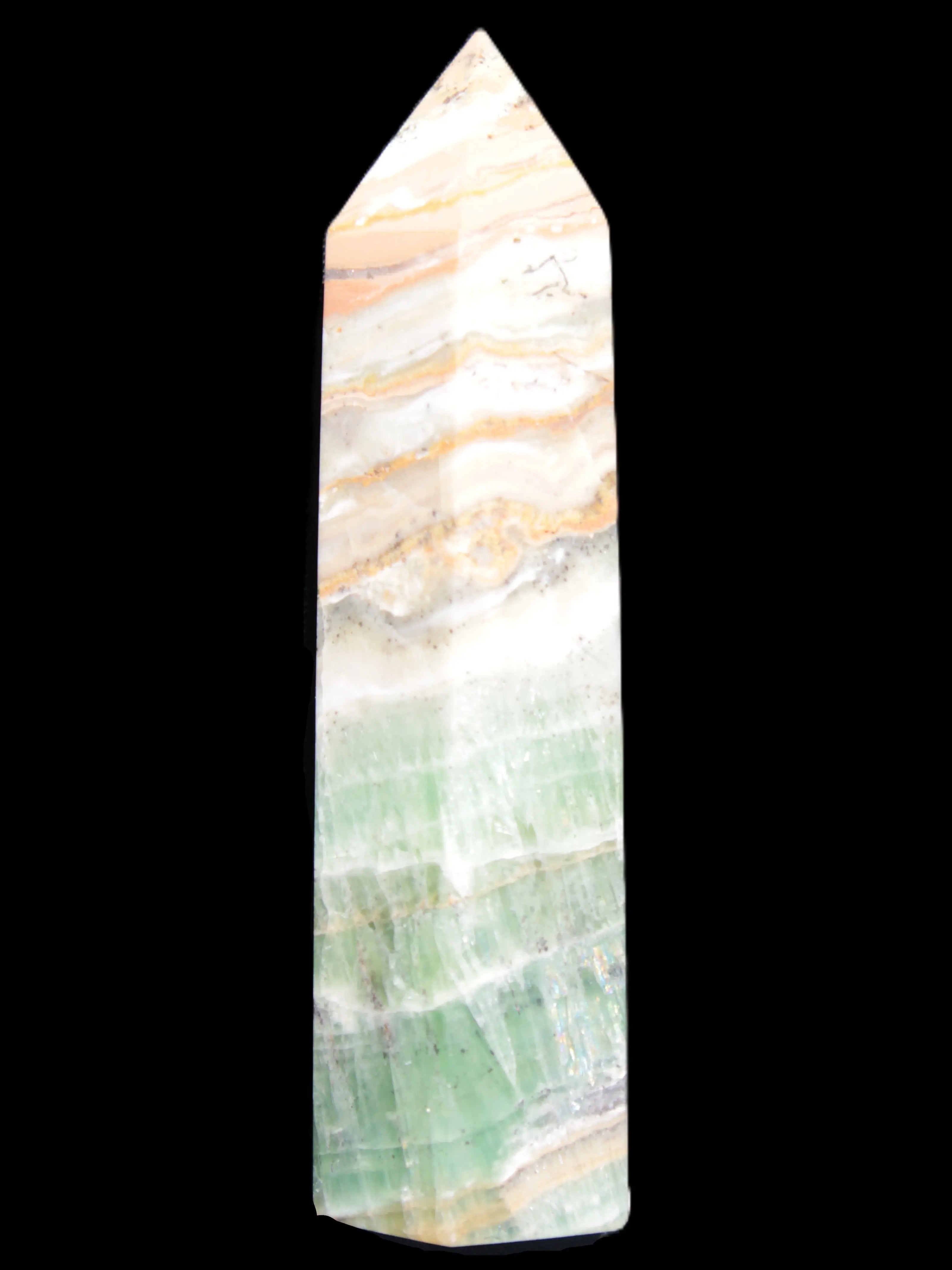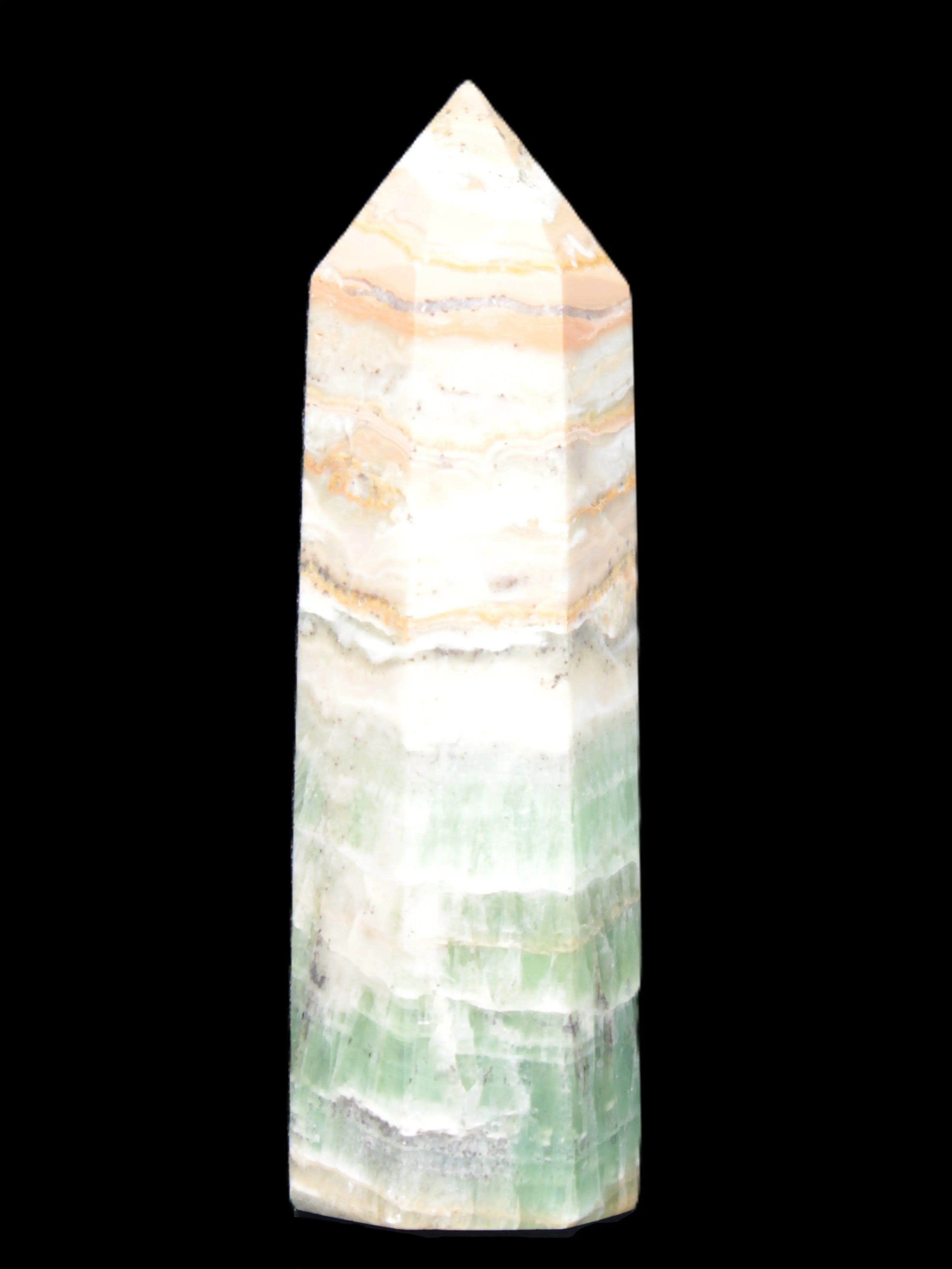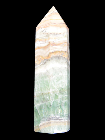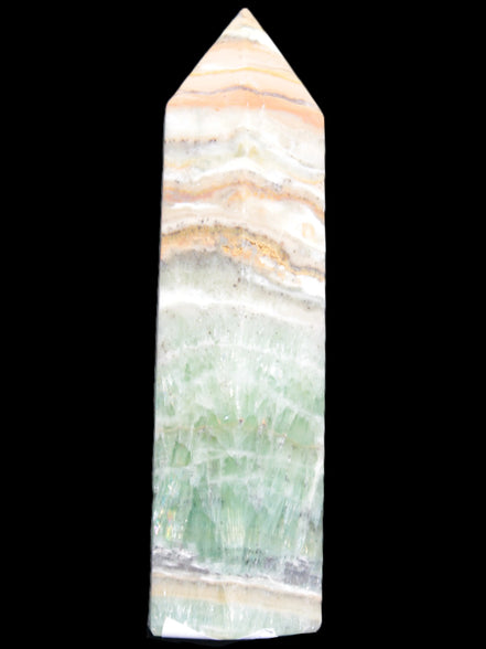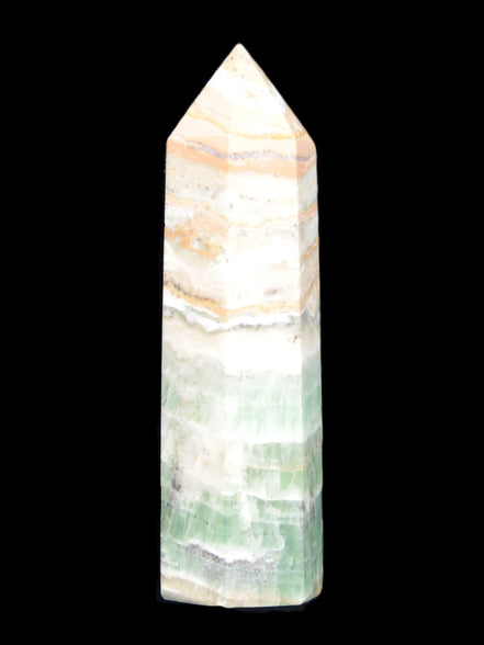 This Caribbean Calcite Pellucid wand 83mm weighs 83g. This wand is pellucid in its lower greenish formations. This term is used because these parts are quite clear and transparent, with the green tint lying deeper in the wand.
