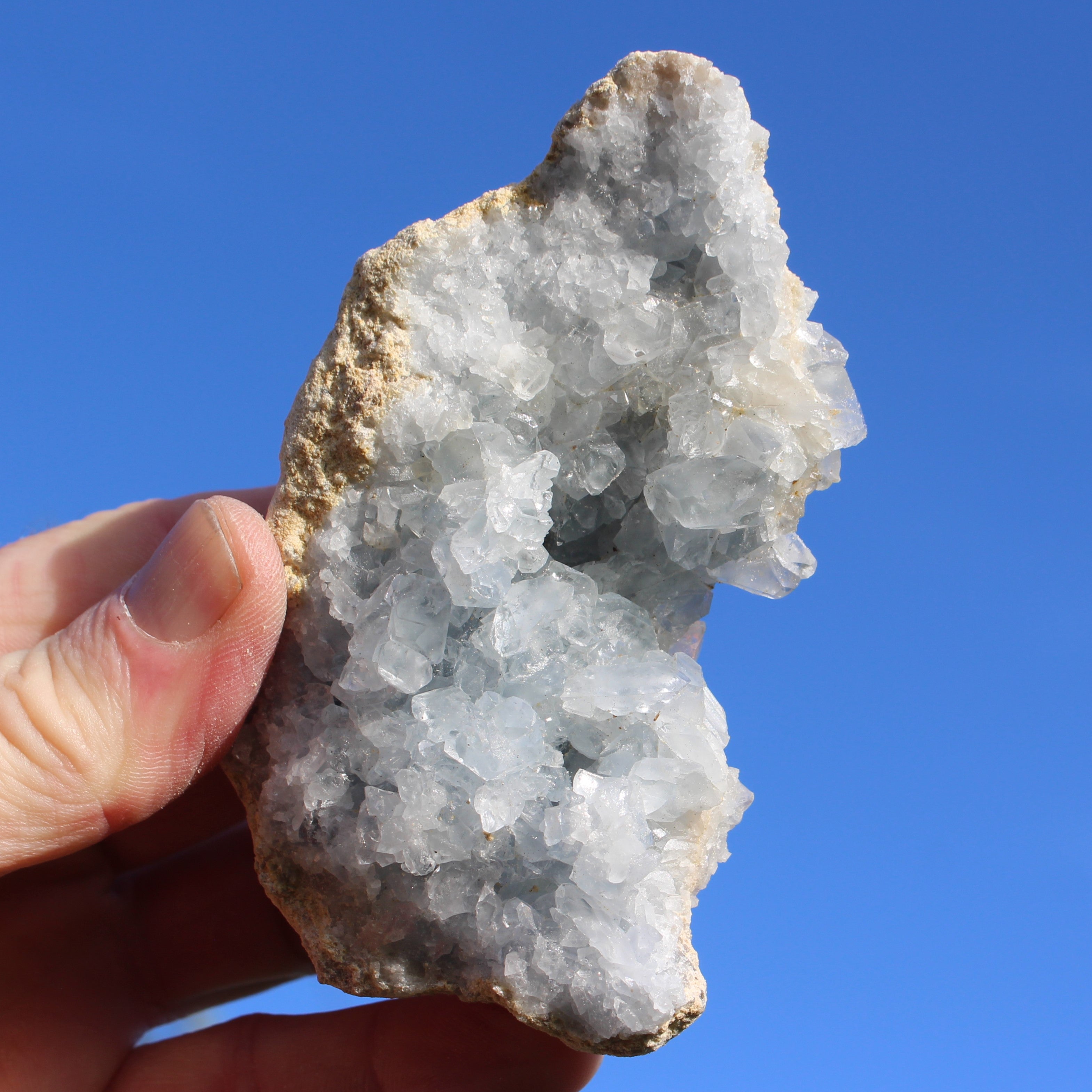 Celestite geode 314g in sunlight - Rocks and Things Store