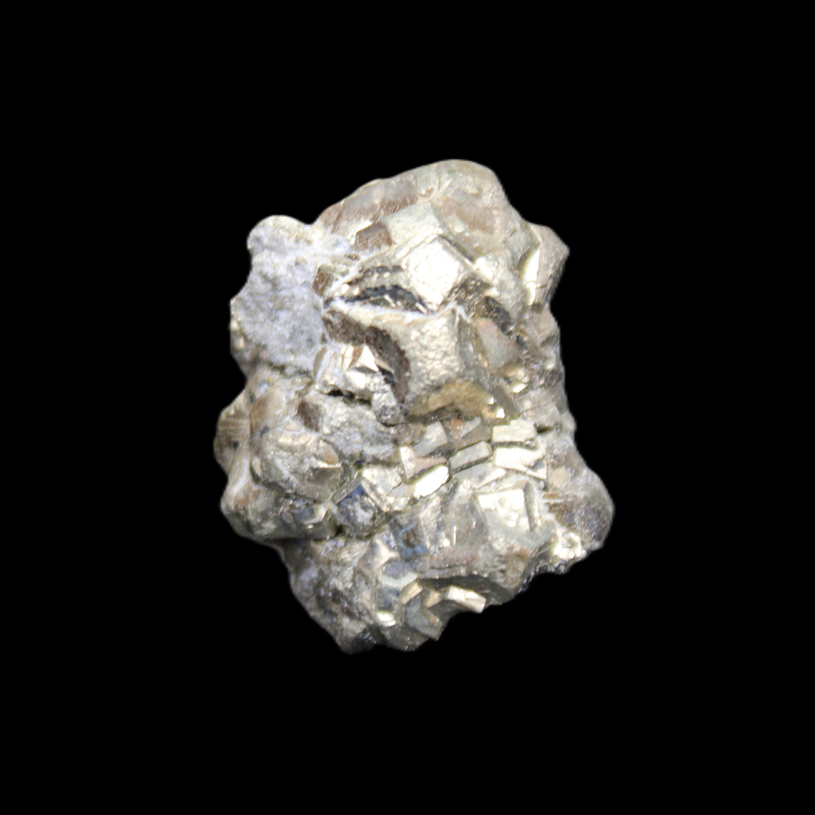 This Chalcopyrite cluster from Pakistan 40*32*32mm weighs 95g. Chalcopyrite is a brassy-gold copper iron sulphide mineral often showing iridescent colours. It is a major Copper ore, composed of Copper Iron Sulphide. It can host various trace elements including Arsenic, Bismuth, Cobalt, Silver, Stibnite and others. It is common in sulphide veins and is disseminated in igneous rocks. Weathering may lead to the formation of Malachite, Azurite and numerous other secondary copper minerals. Its brass yellow colour can also give way to iridescent green and grey colouring from surface oxidation.