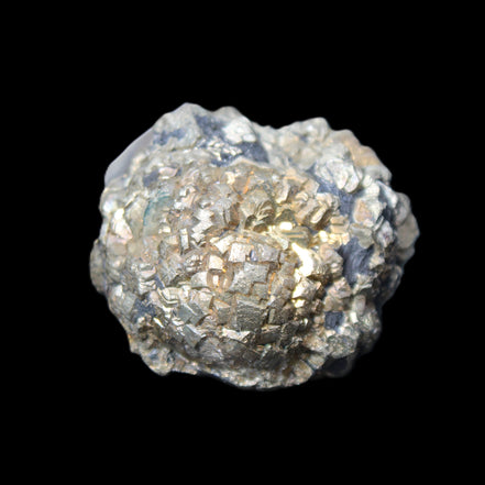 This large Chalcopyrite cluster from Pakistan 40mm selection weighs 110g. Chalcopyrite is a brassy-gold copper iron sulphide mineral often showing iridescent colours. It is a major Copper ore, composed of Copper Iron Sulphide. It can host various trace elements including Arsenic, Bismuth, Cobalt, Silver, Stibnite and others. It is common in sulphide veins and is disseminated in igneous rocks. Weathering may lead to the formation of Malachite, Azurite and numerous other secondary copper minerals. Its brass yellow colour can also give way to iridescent green and grey colouring from surface oxidation.