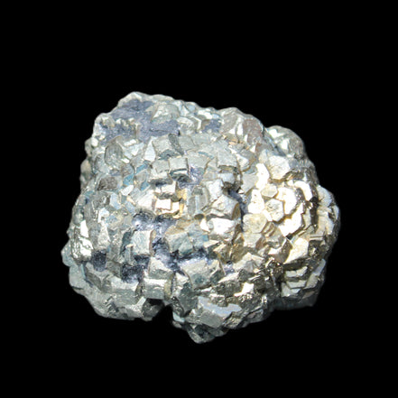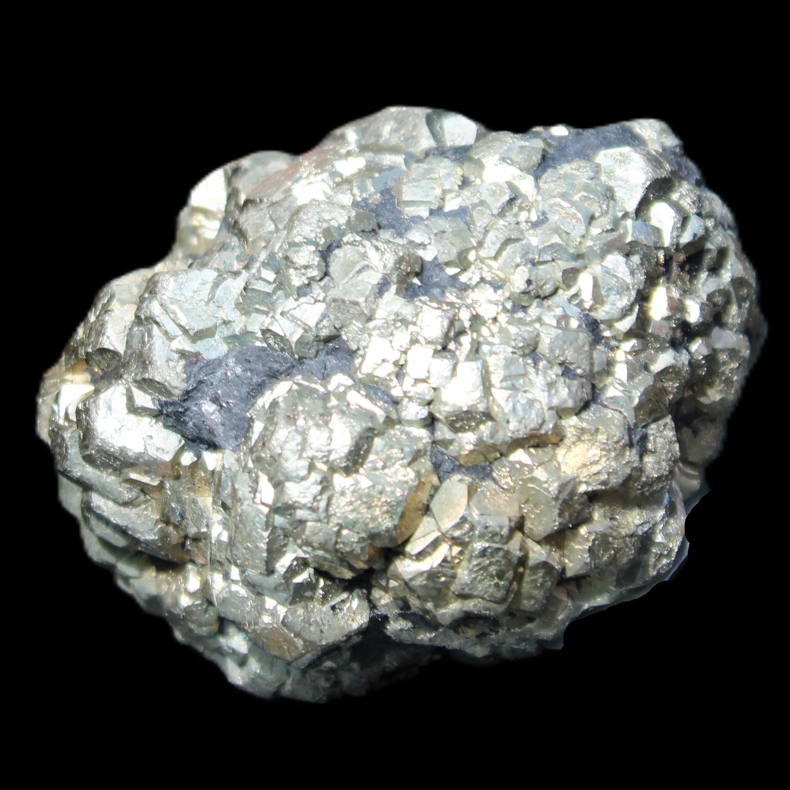 This large Chalcopyrite cluster from Pakistan 43mm selection weighs 122g. Chalcopyrite is a brassy-gold copper iron sulphide mineral often showing iridescent colours. It is a major Copper ore, composed of Copper Iron Sulphide. It can host various trace elements including Arsenic, Bismuth, Cobalt, Silver, Stibnite and others. It is common in sulphide veins and is disseminated in igneous rocks. Weathering may lead to the formation of Malachite, Azurite and numerous other secondary copper minerals. Its brass yellow colour can also give way to iridescent green and grey colouring from surface oxidation.