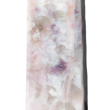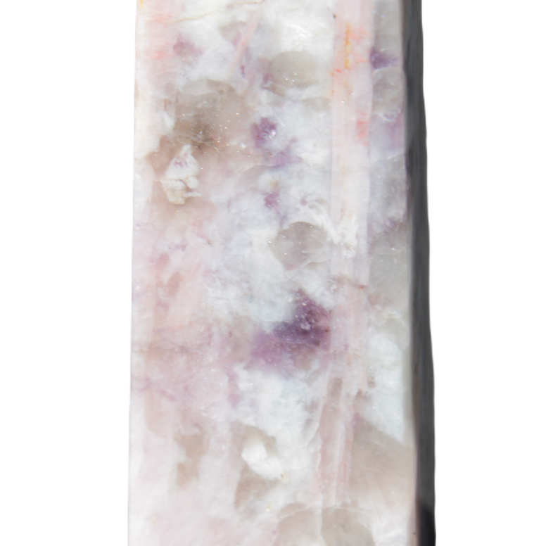 This Cherry Blossom Pink Tourmaline and Quartz obelisk 115mm weighs 244g. It has soft pinks and lilacs in Quartz. I have borrowed the Cherry Blossom name from the Madagascan Agate. This gentle beautiful stone is quite different, however. In this obelisk the cherry tree blossom flowers and long branches are formed of Pink Tourmaline and Lepidolite. This is an obelisk full of growing, thriving love energy.