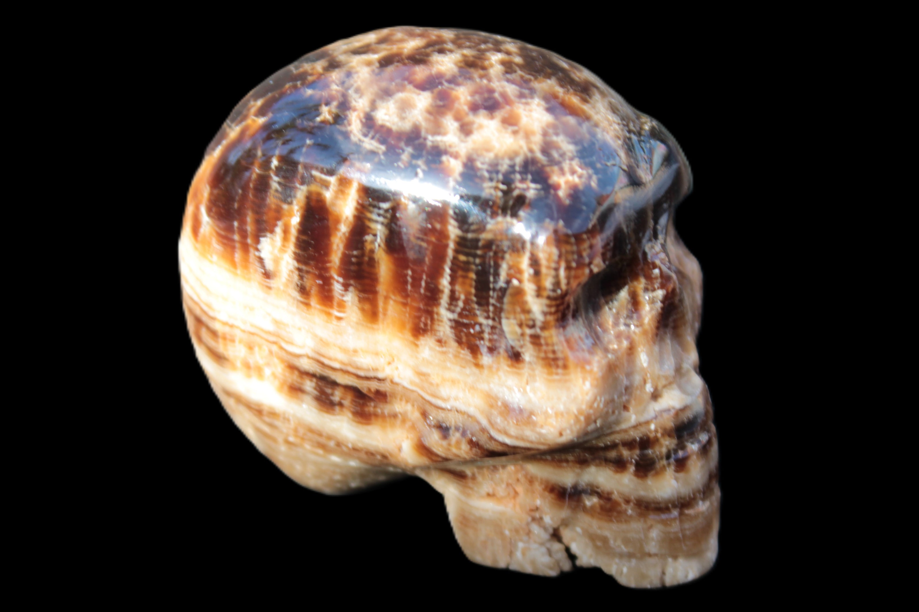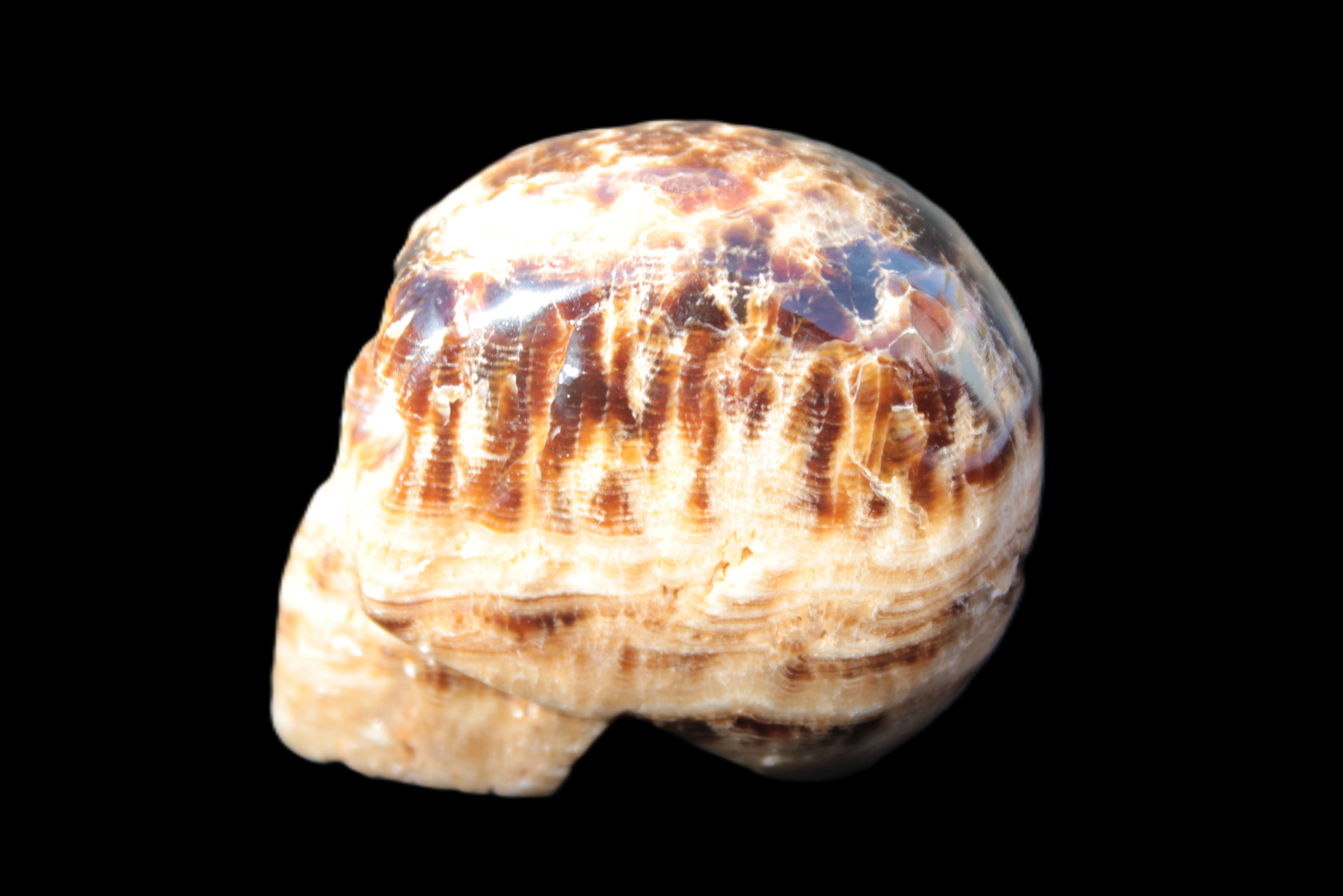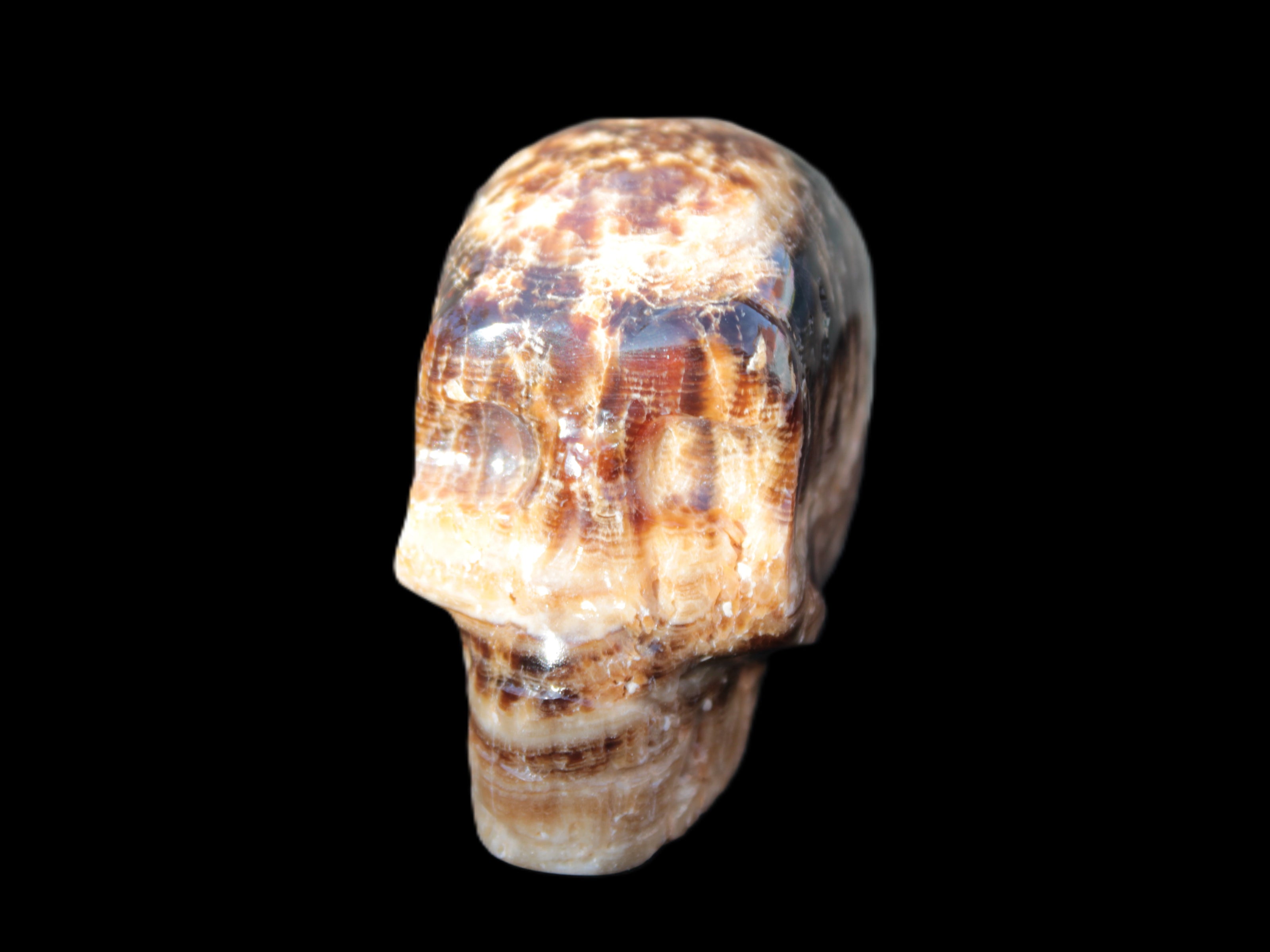 Chocolate Calcite hand-carved skull 37*61*50mm  152.7g Rocks and Things