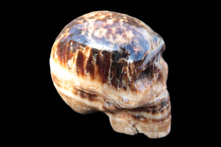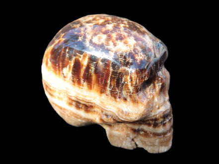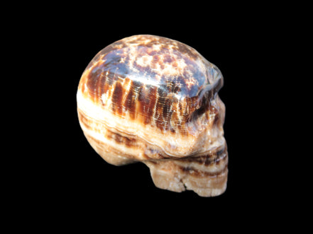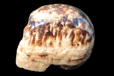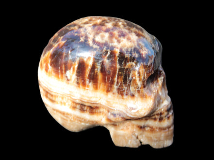 Chocolate Calcite is a rarer brown Calcite variety found in Pakistan and Mexico. This stone was sourced and fashioned locally by our partner in Karachi, Lawrence Handicrafts. This carefully hand-carved skull showcases the distinctive stripes and bands of lighter and darker browns running across its surface. Its crystalline structure showing through adds another layer of beauty to this wonderful stone.