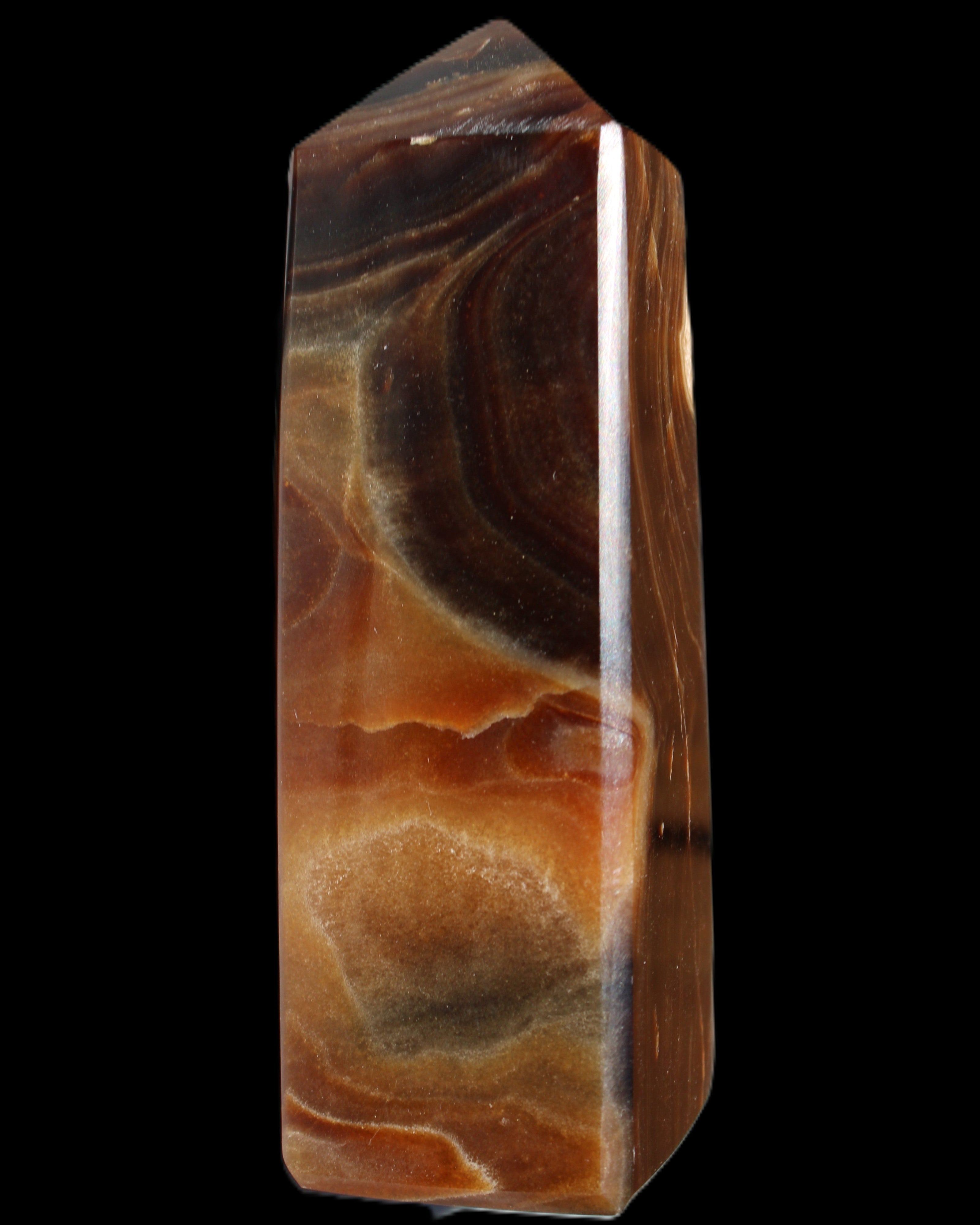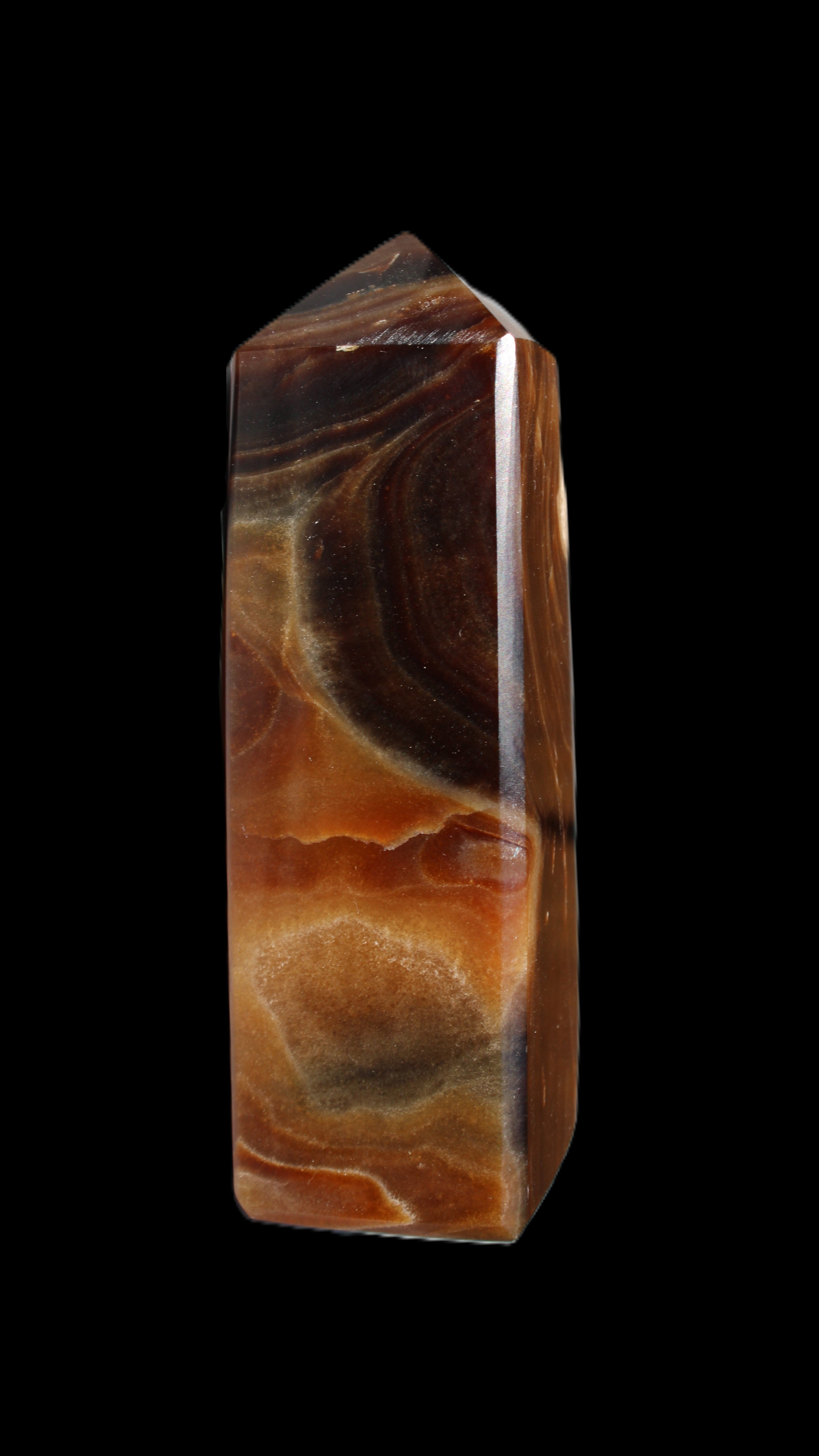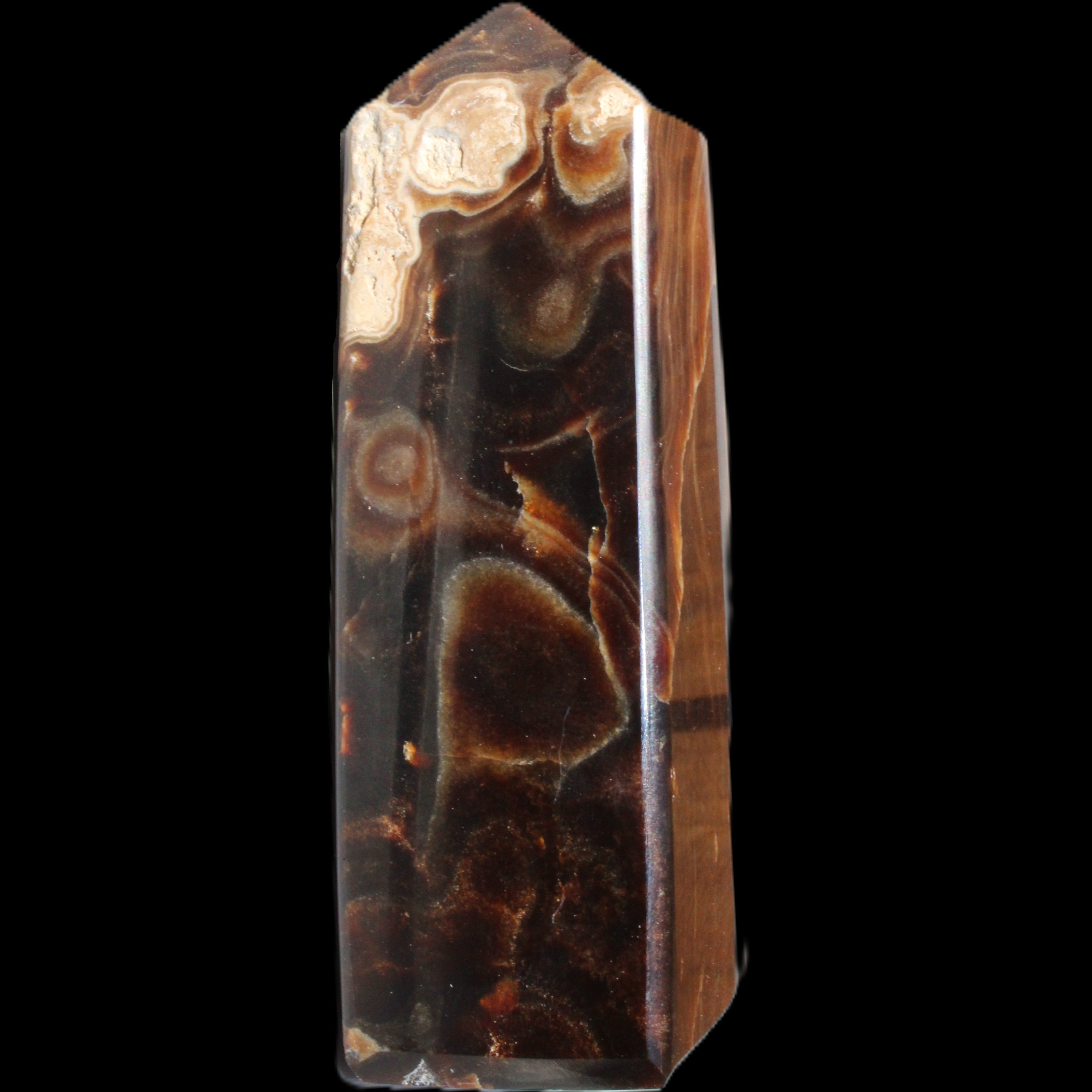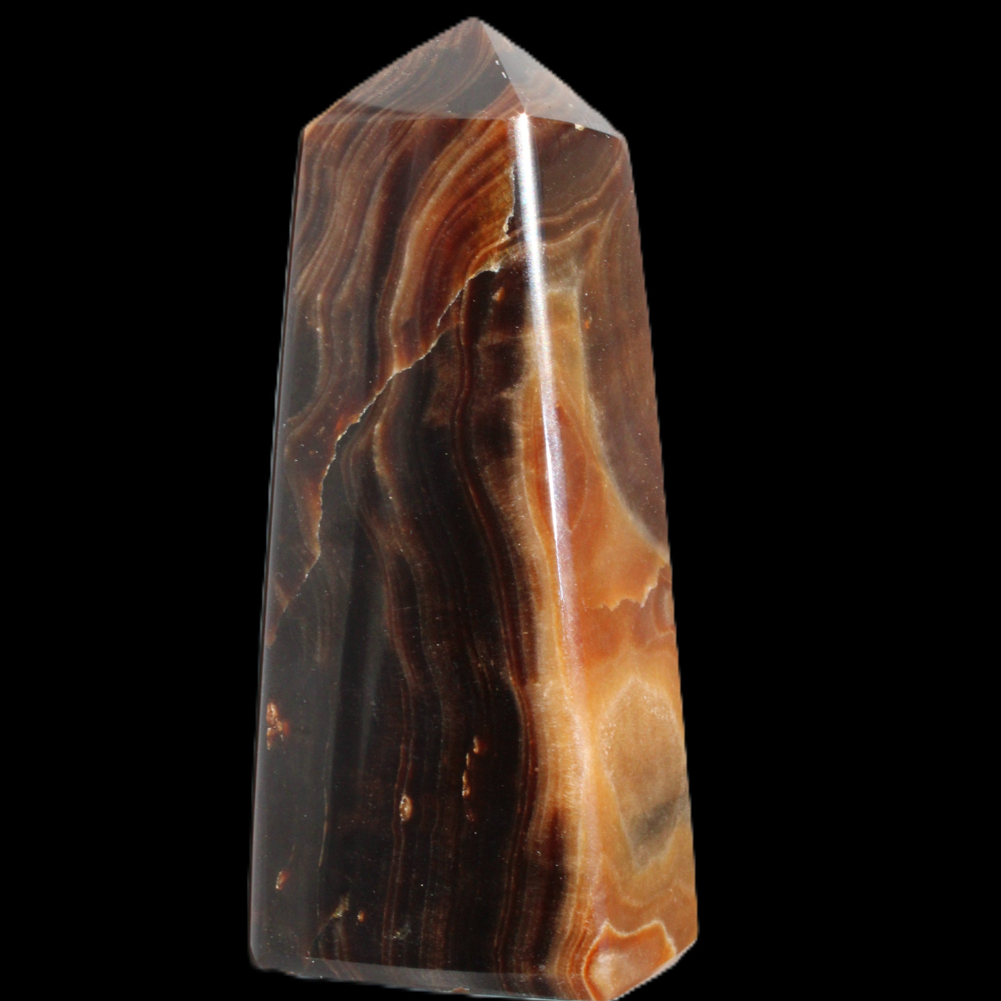 This Chocolate Calcite obelisk 106*43mm weighs 303g. It has been crafted from the stunning Chocolate Calcite of the highest quality found in Pakistan. This is a rarer velvety dark-brown Calcite variety. This obelisk features chocolate and caramel tones.
