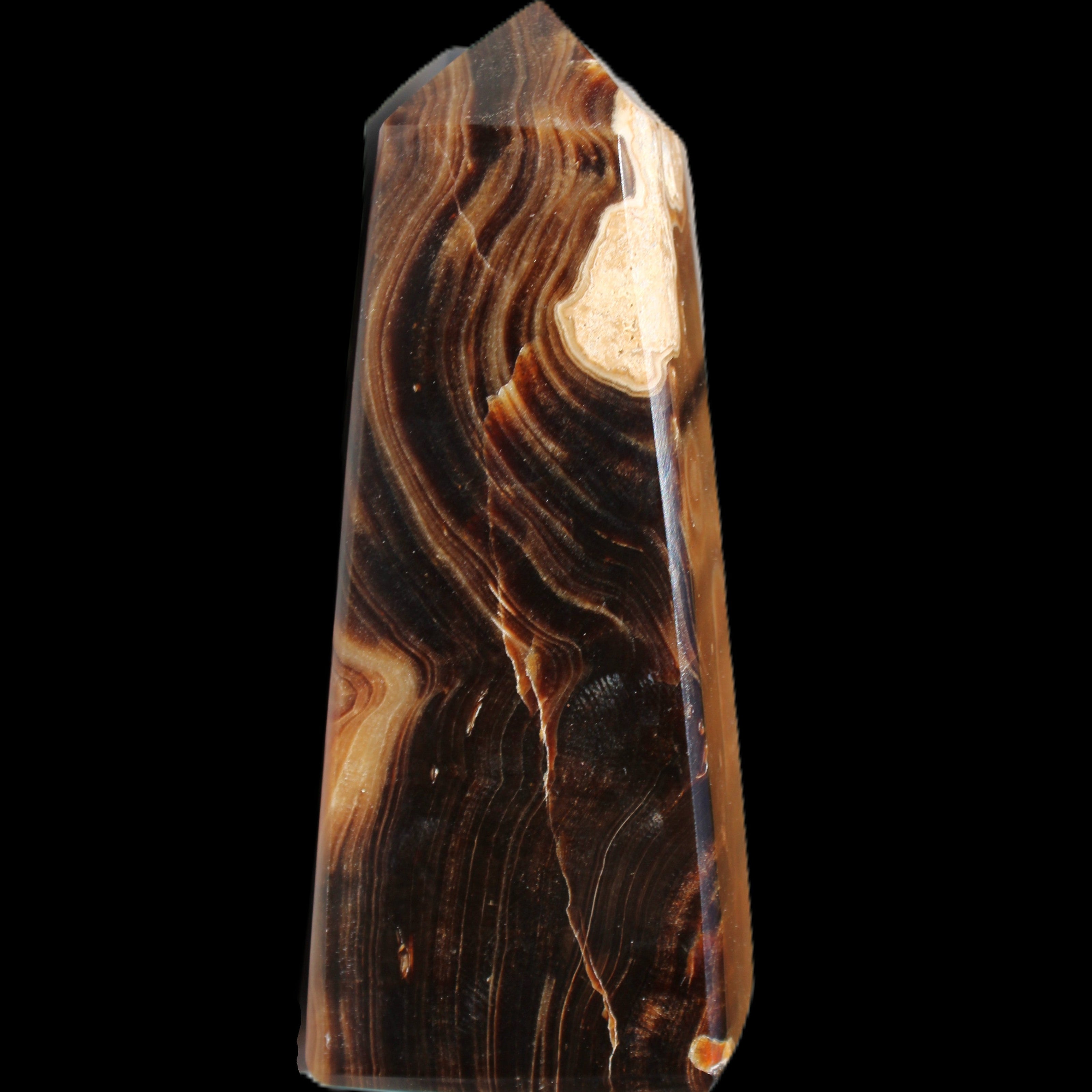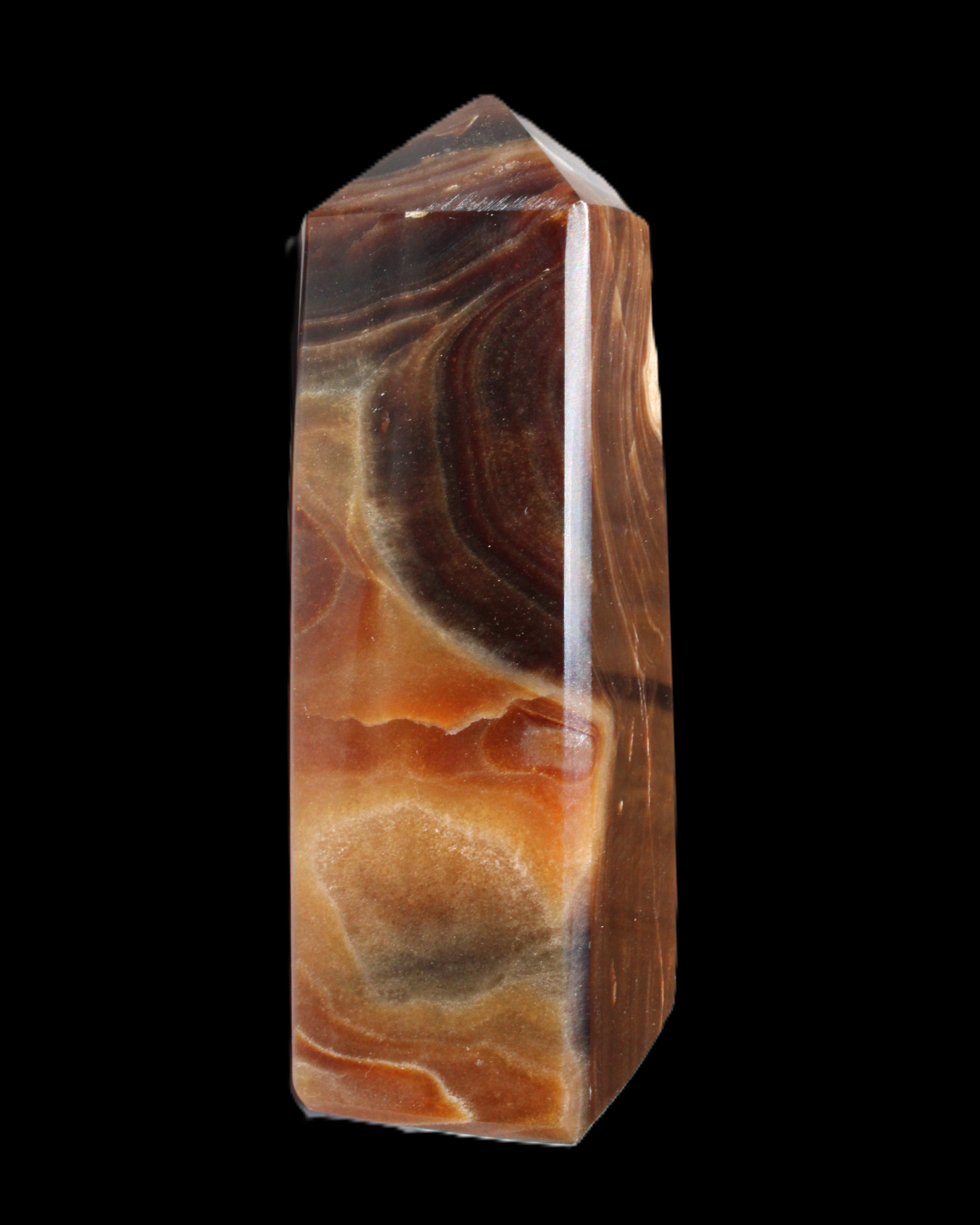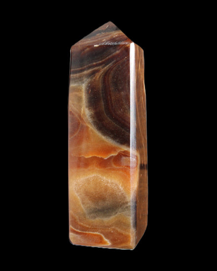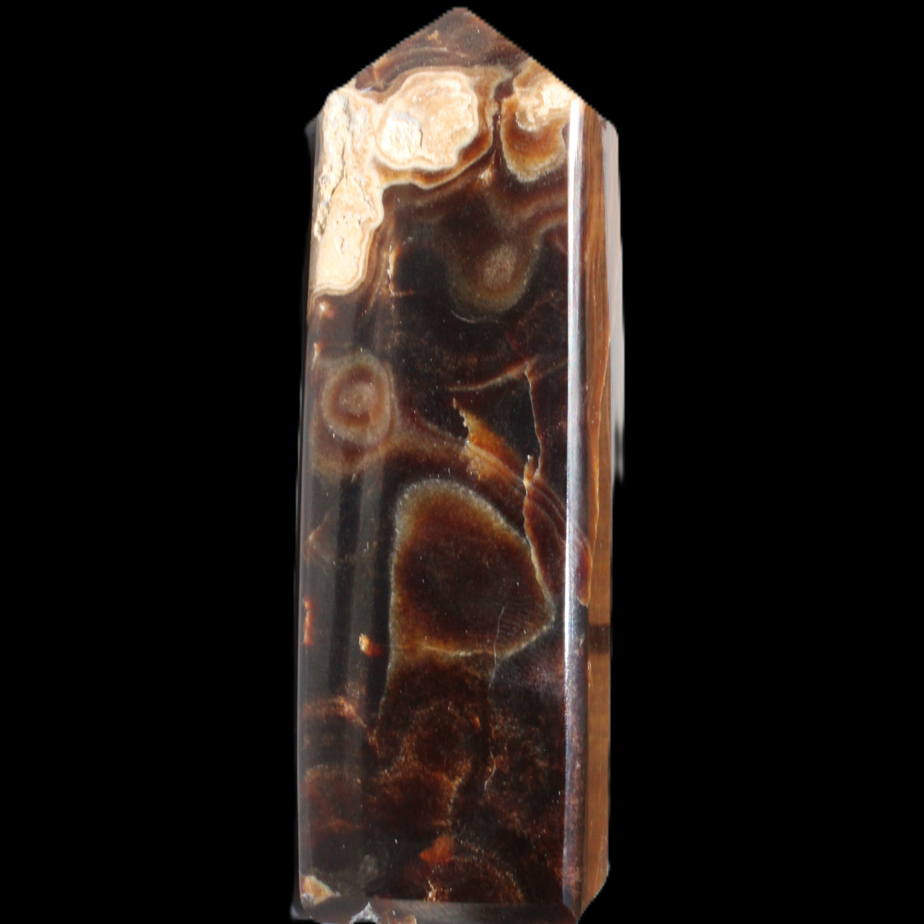 This Chocolate Calcite obelisk 106*43mm weighs 303g. It has been crafted from the stunning Chocolate Calcite of the highest quality found in Pakistan. This is a rarer velvety dark-brown Calcite variety. This obelisk features chocolate and caramel tones.