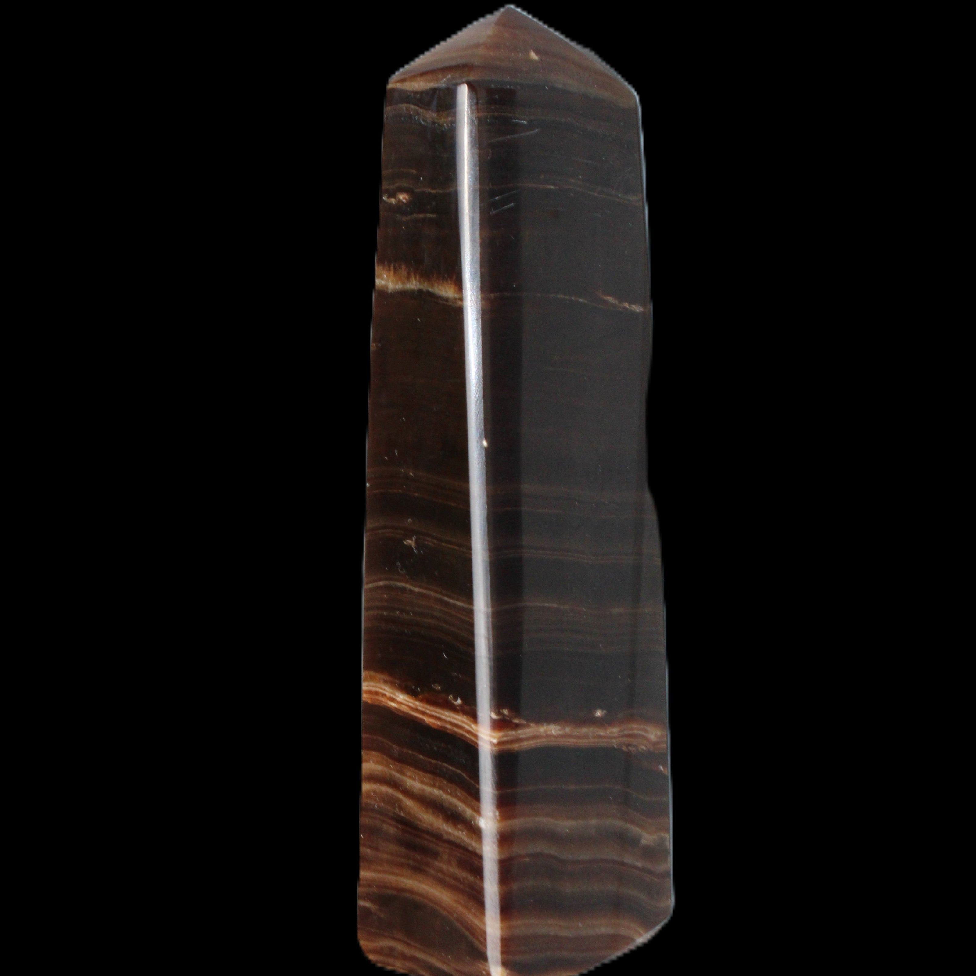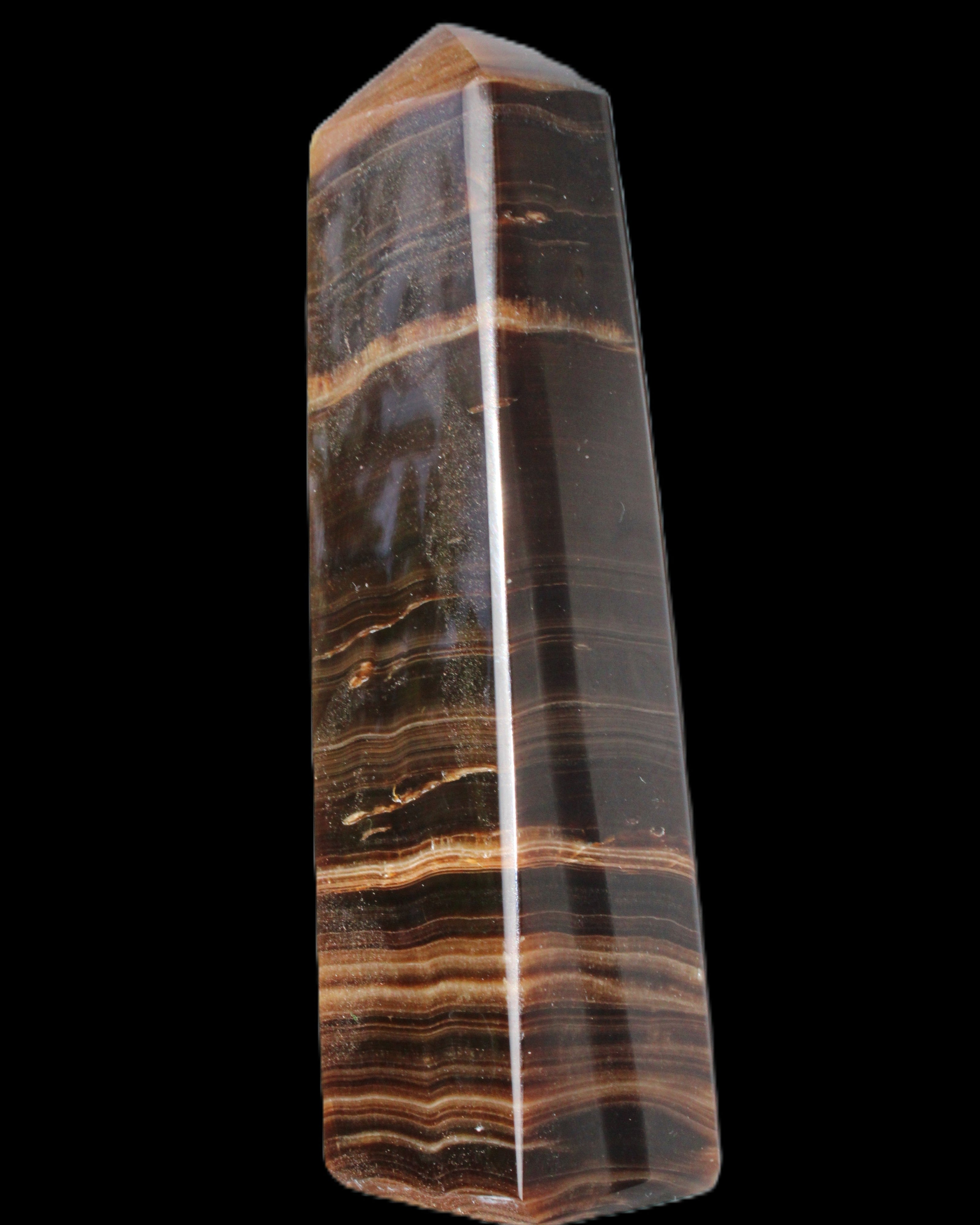 Chocolate Calcite obelisk 119*33 mm 222g in sunlight - Rocks and Things Store