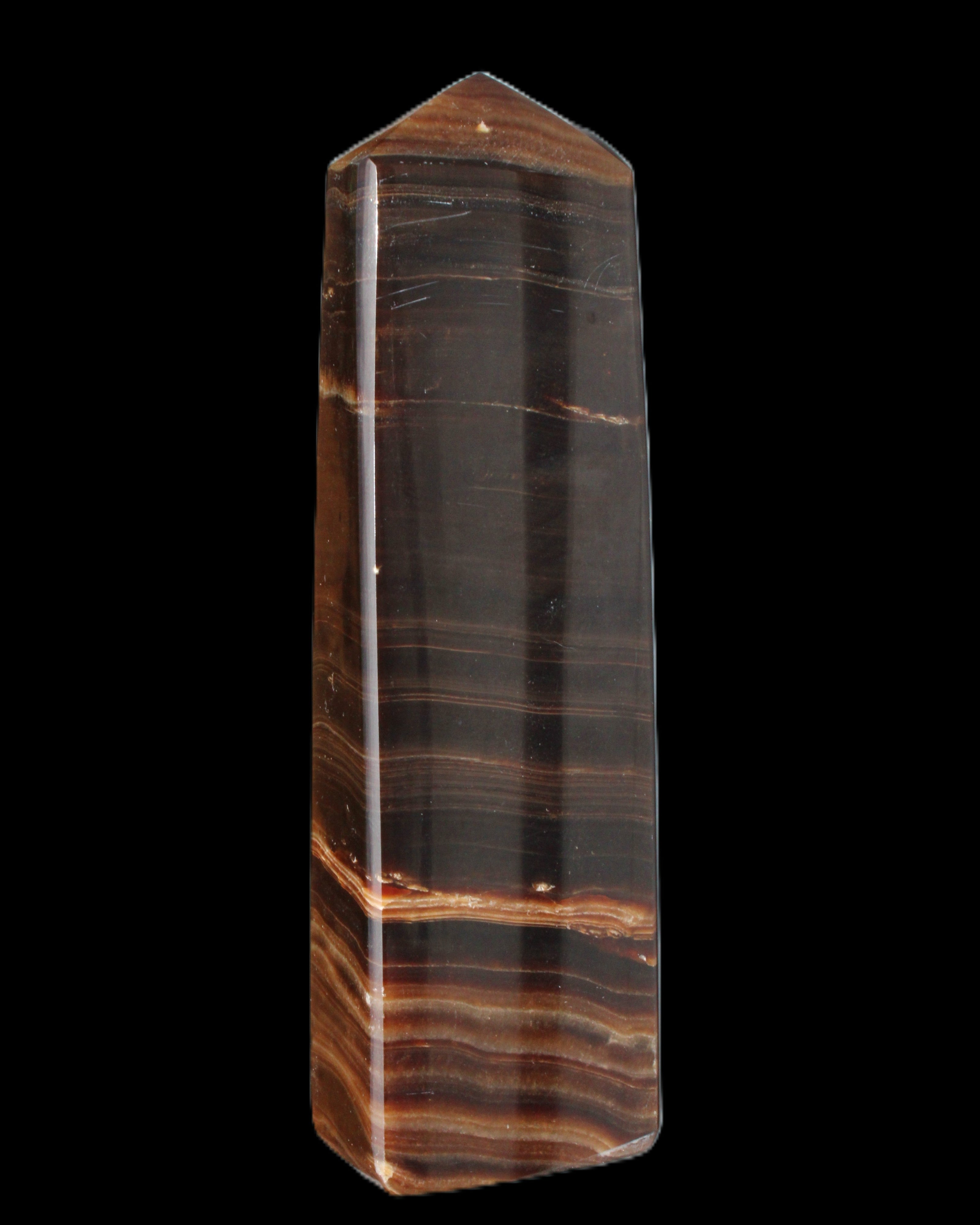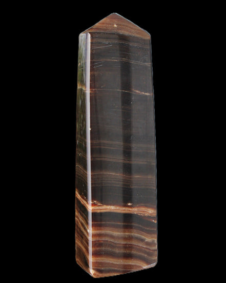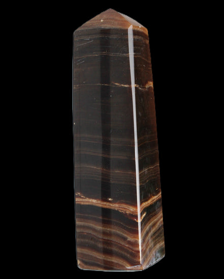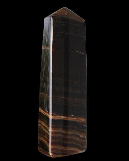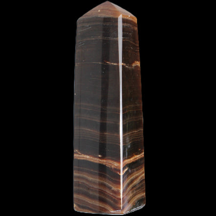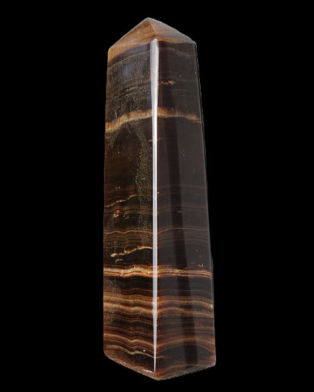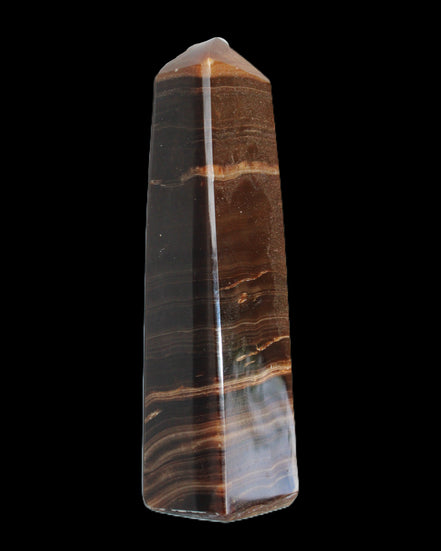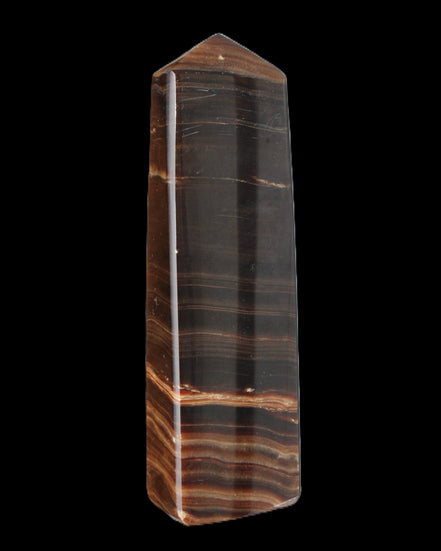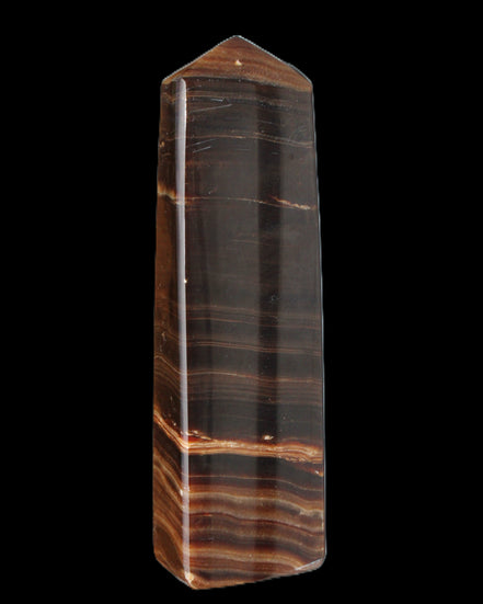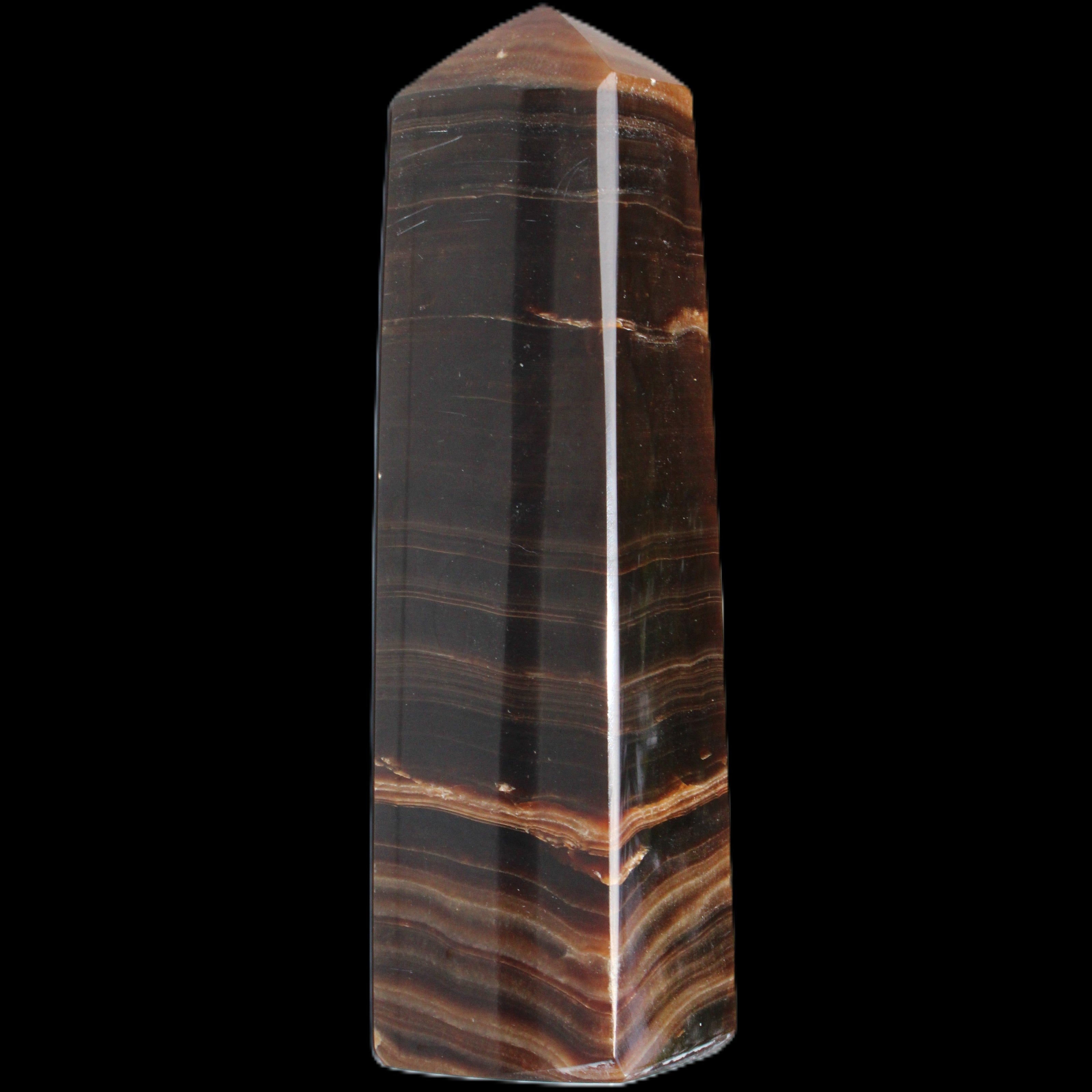 This Chocolate Calcite obelisk 119*33mm weighs 222g. It has been crafted from the stunning Chocolate Calcite of the highest quality found in Pakistan. This is a rarer velvety dark-brown Calcite variety.