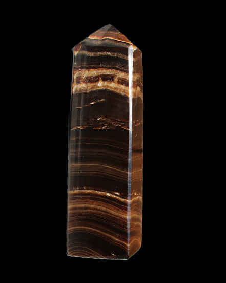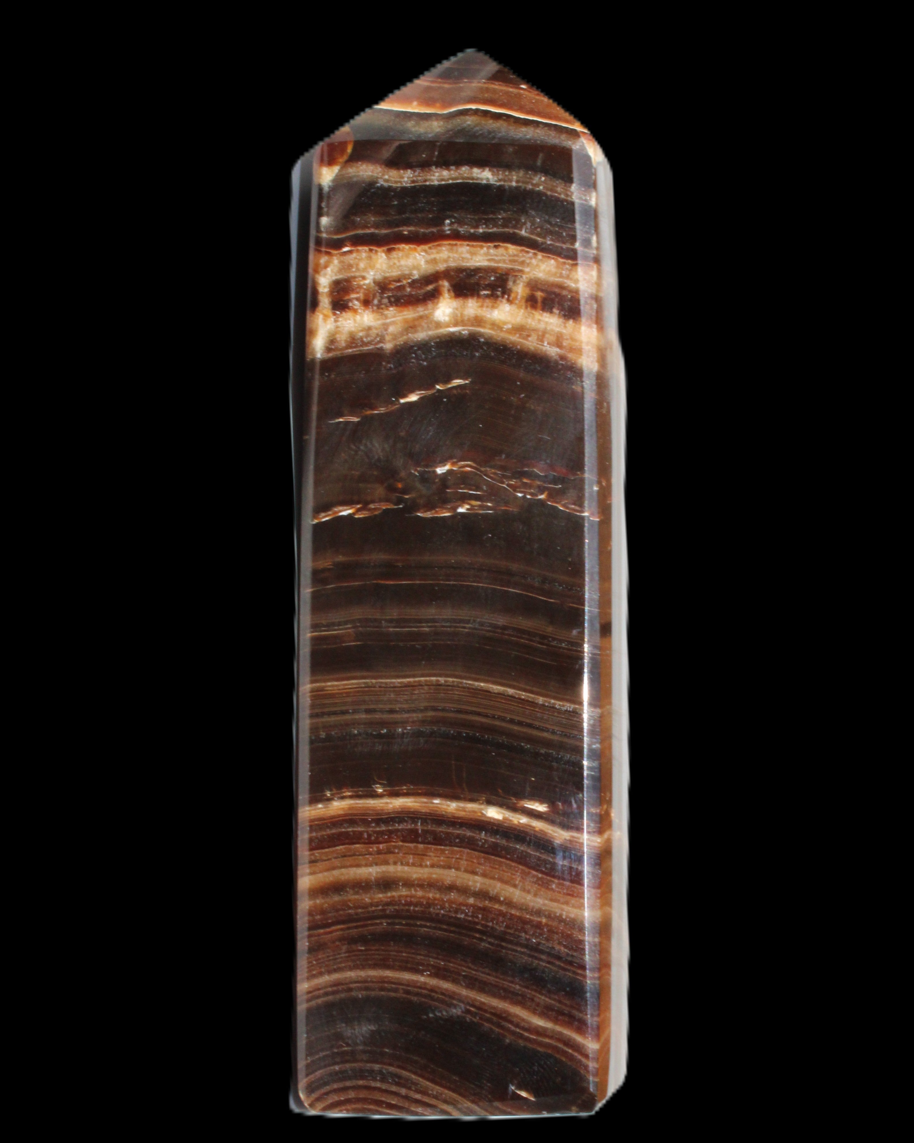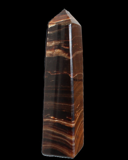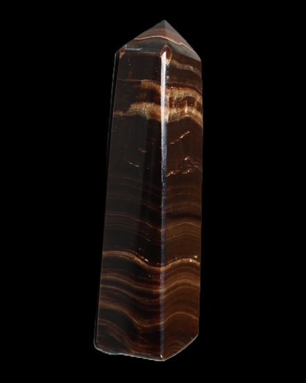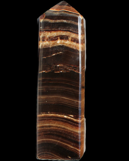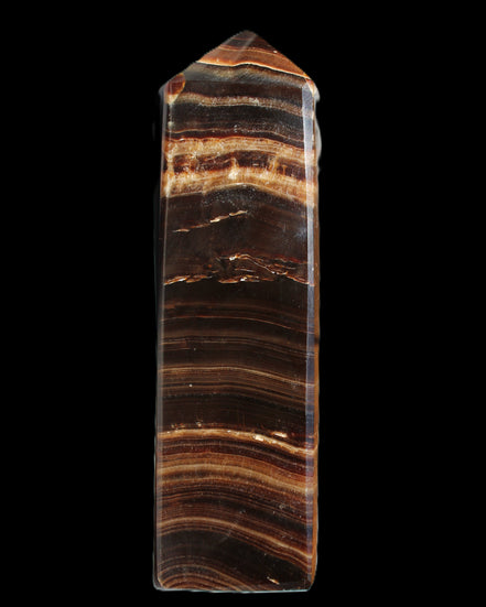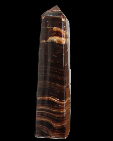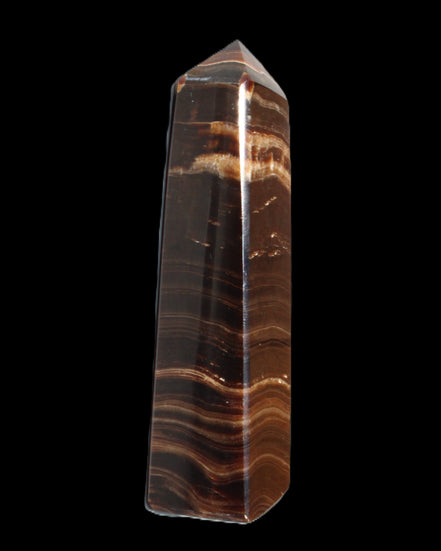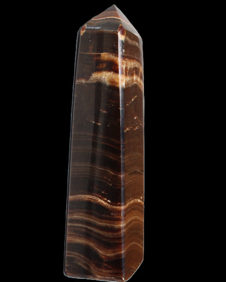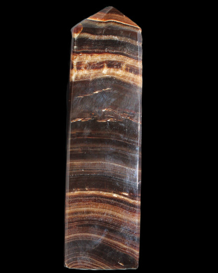 This Chocolate Calcite obelisk 122*33mm weighs 270g. It has been crafted from the stunning Chocolate Calcite of the highest quality found in Pakistan. This is a rarer velvety dark-brown Calcite variety.