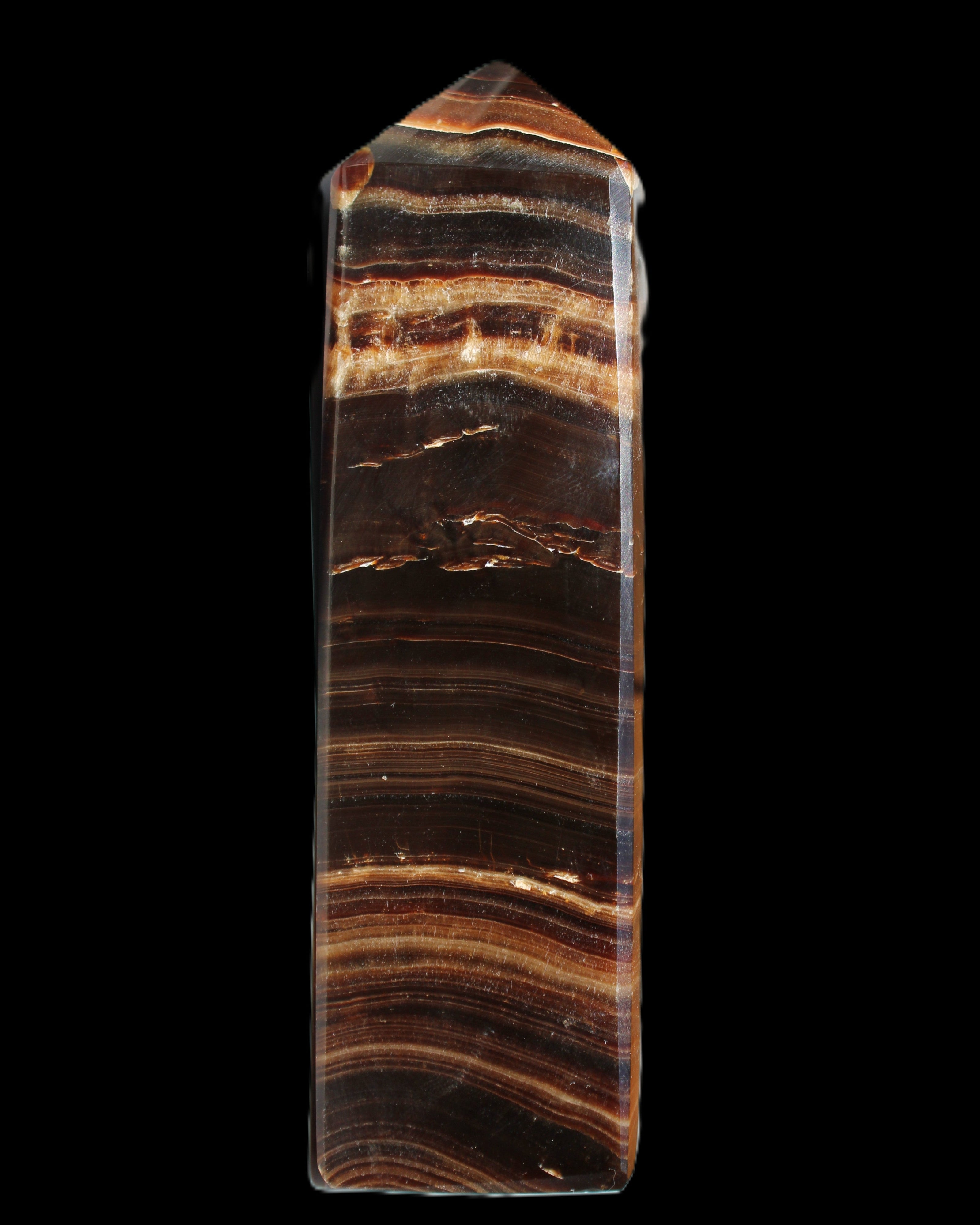 Chocolate Calcite obelisk 122*33mm 270g in sunlight - Rocks and Things Store