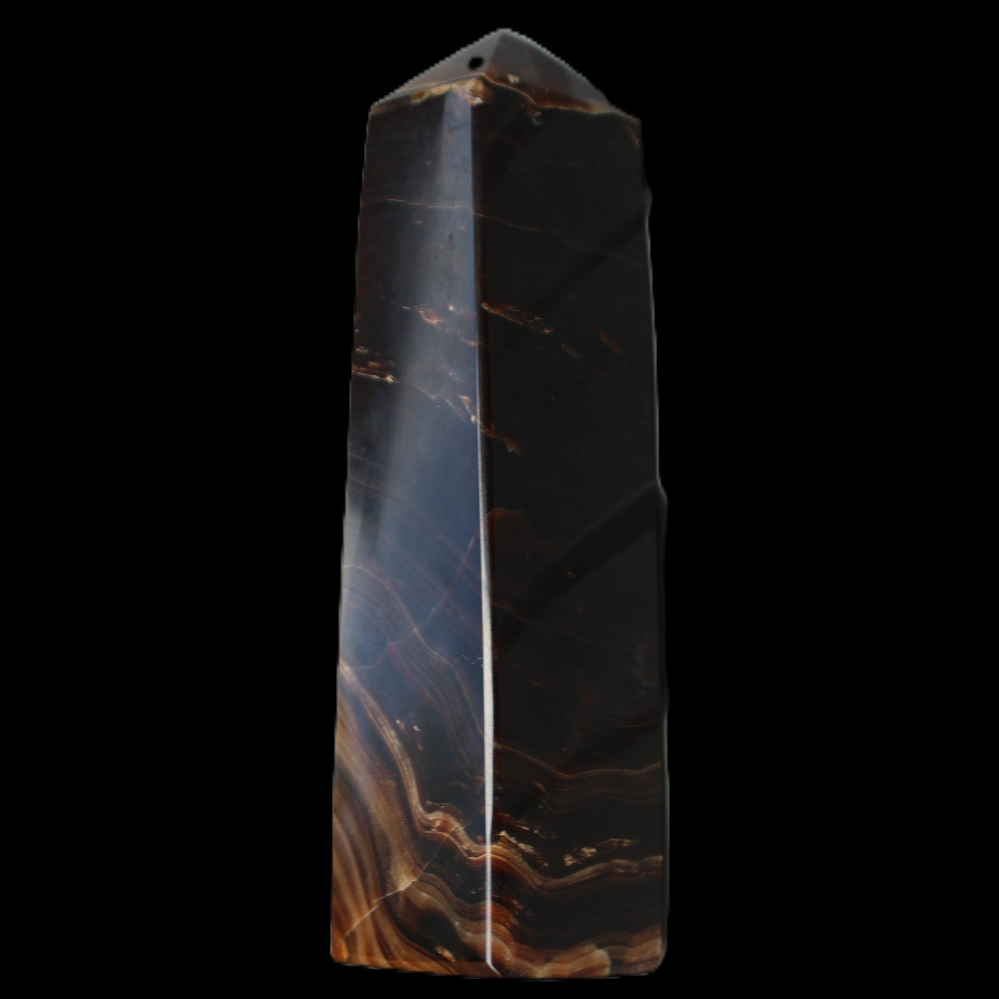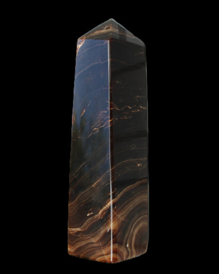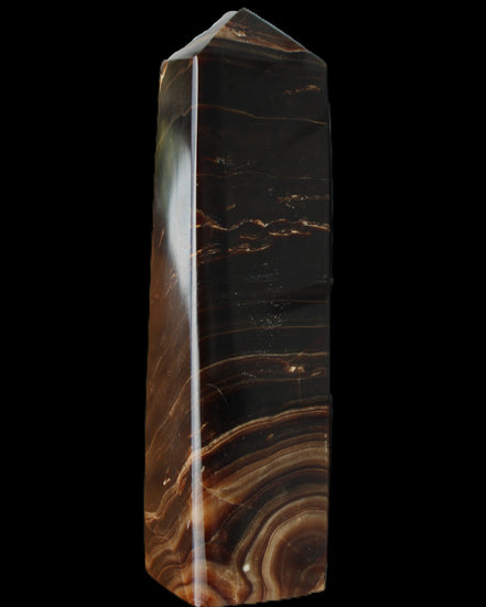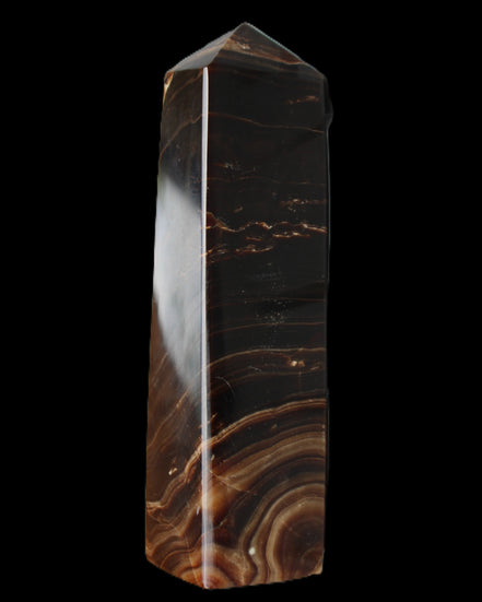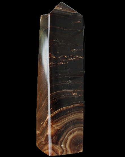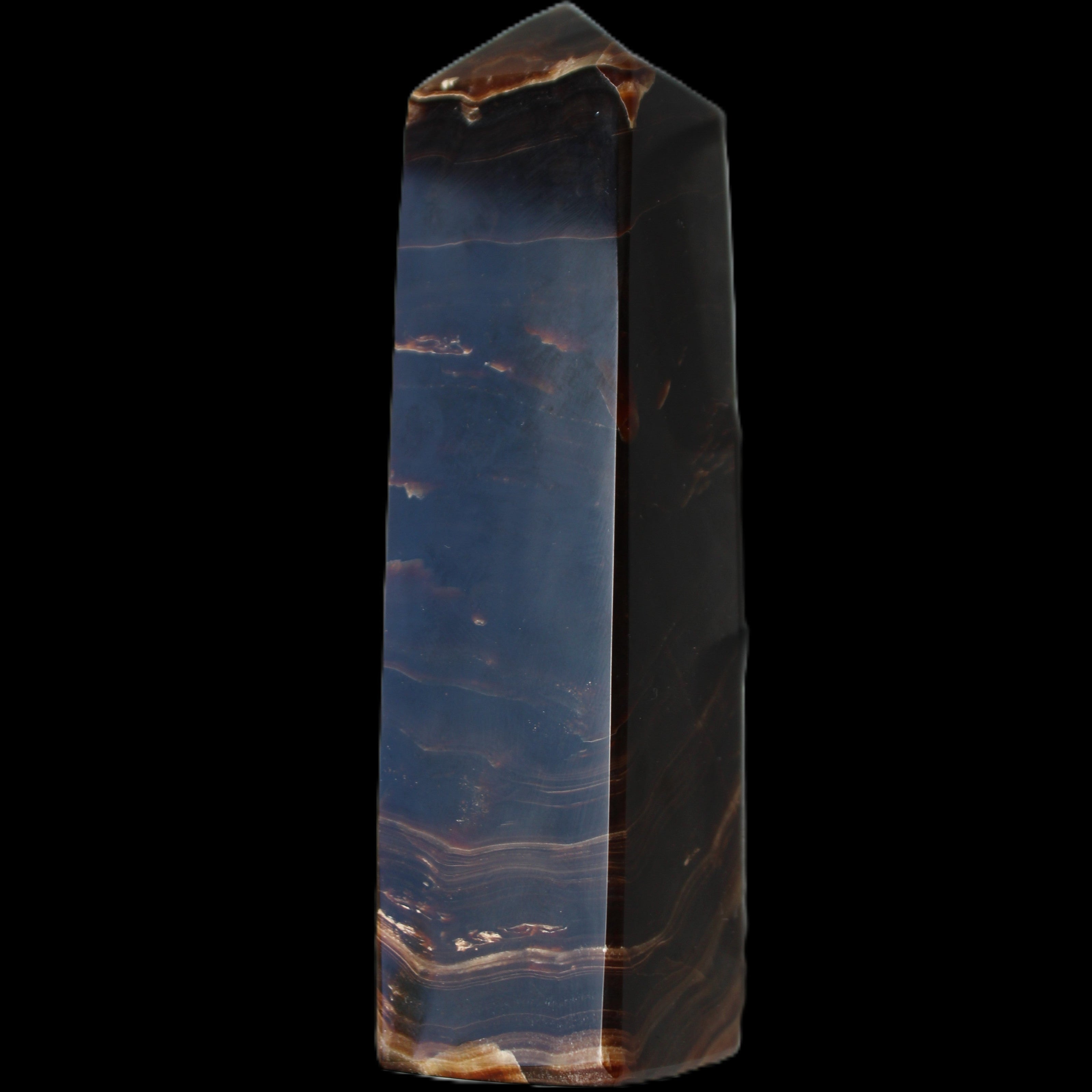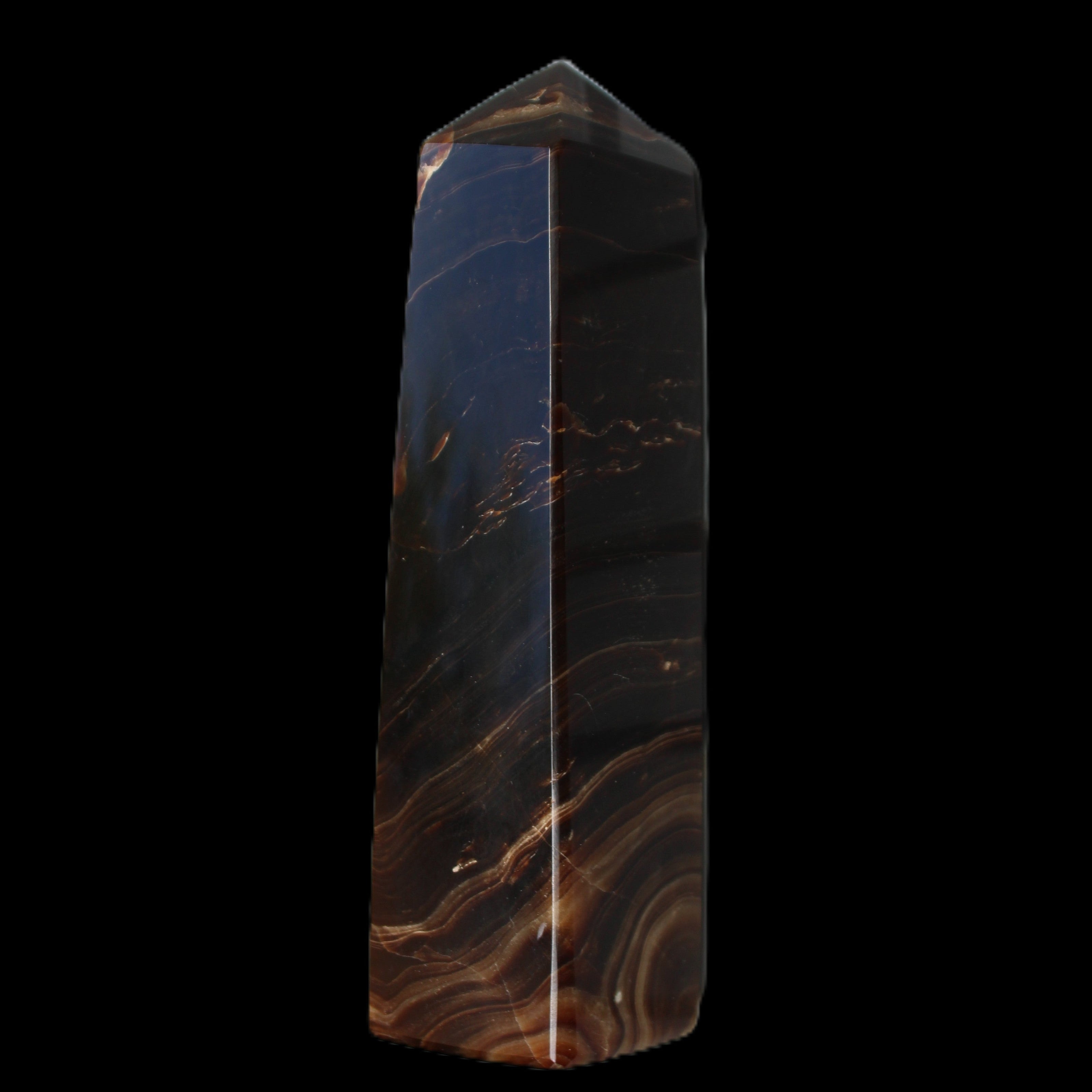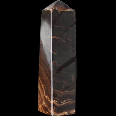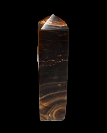This Chocolate Calcite obelisk 136*36mm weighs 366g. It has been crafted from the stunning Chocolate Calcite of the highest quality found in Pakistan. This is a rarer velvety dark-brown Calcite variety.