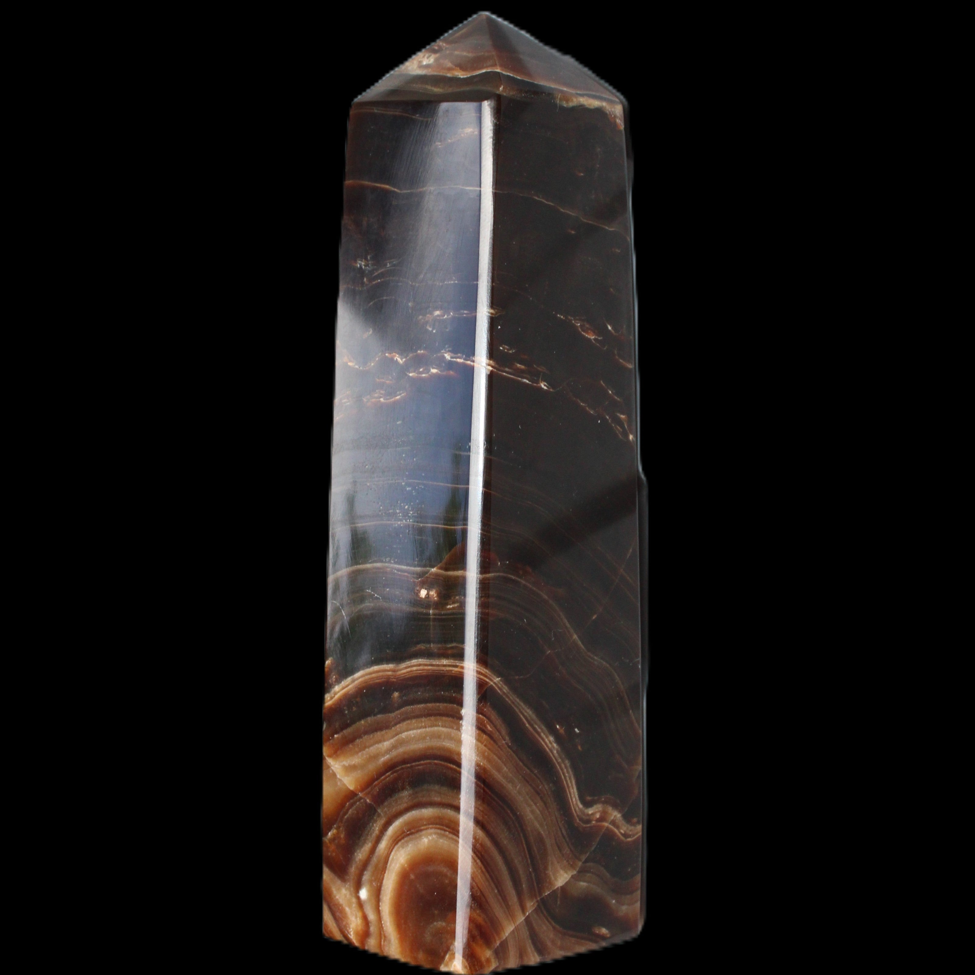 Chocolate Calcite obelisk 136*36mm 366g in sunlight - Rocks and Things Store