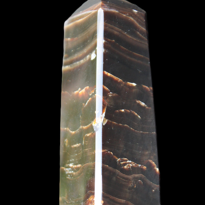 Chocolate Calcite obelisk 92*33*28mm 196g in sunlight - Rocks and Things Store