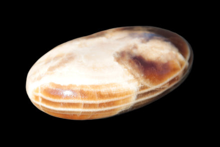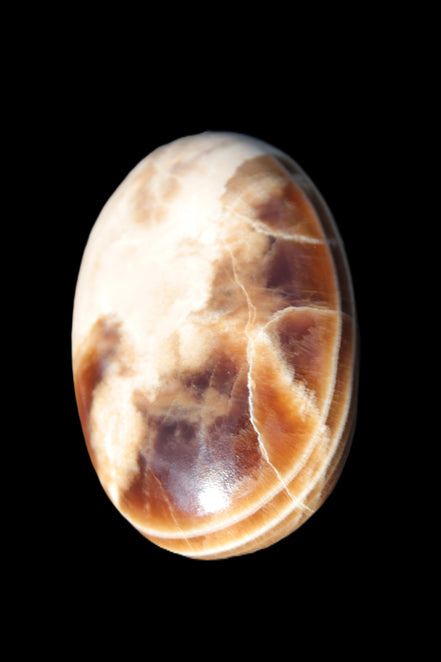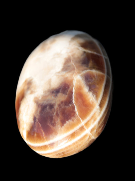 This Chocolate Calcite palm stone showcases this rarer brown Calcite variety found in Pakistan. The deep brown chocolate tones provide a strong connection to Mother Earth. What makes Chocolate Calcite distinctive is its stripes and bands of lighter and darker browns running across its surface. Its crystalline structure showing through adds another layer of beauty to this wonderful stone.