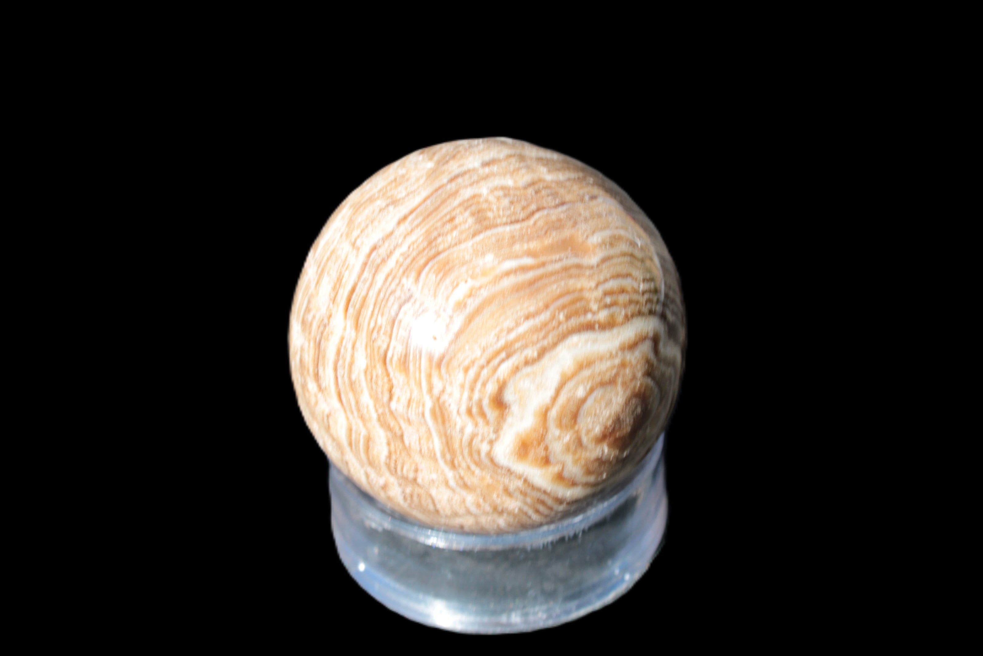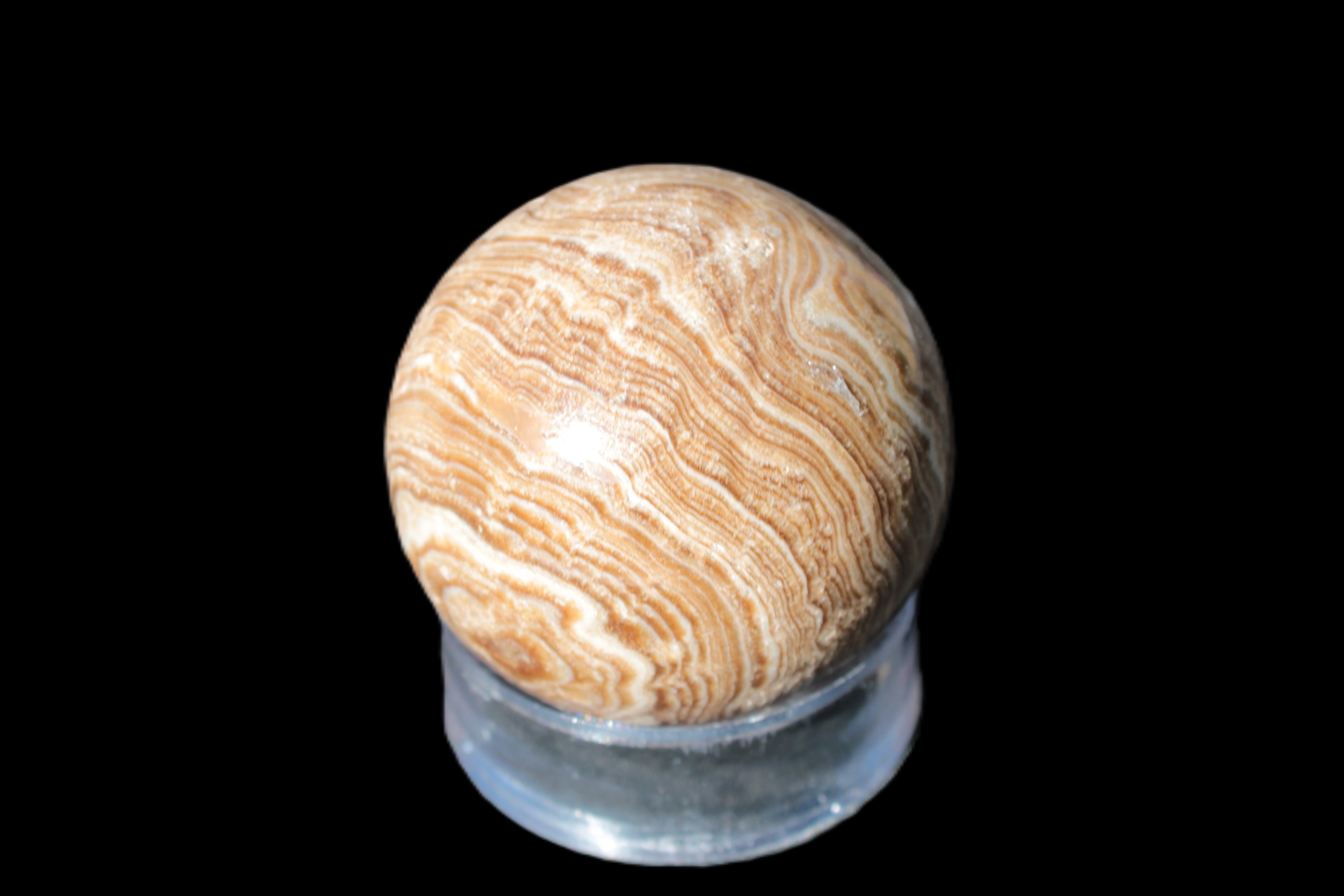 Chocolate Calcite closely banded sphere 48mm 159g -Rocks and Things Store