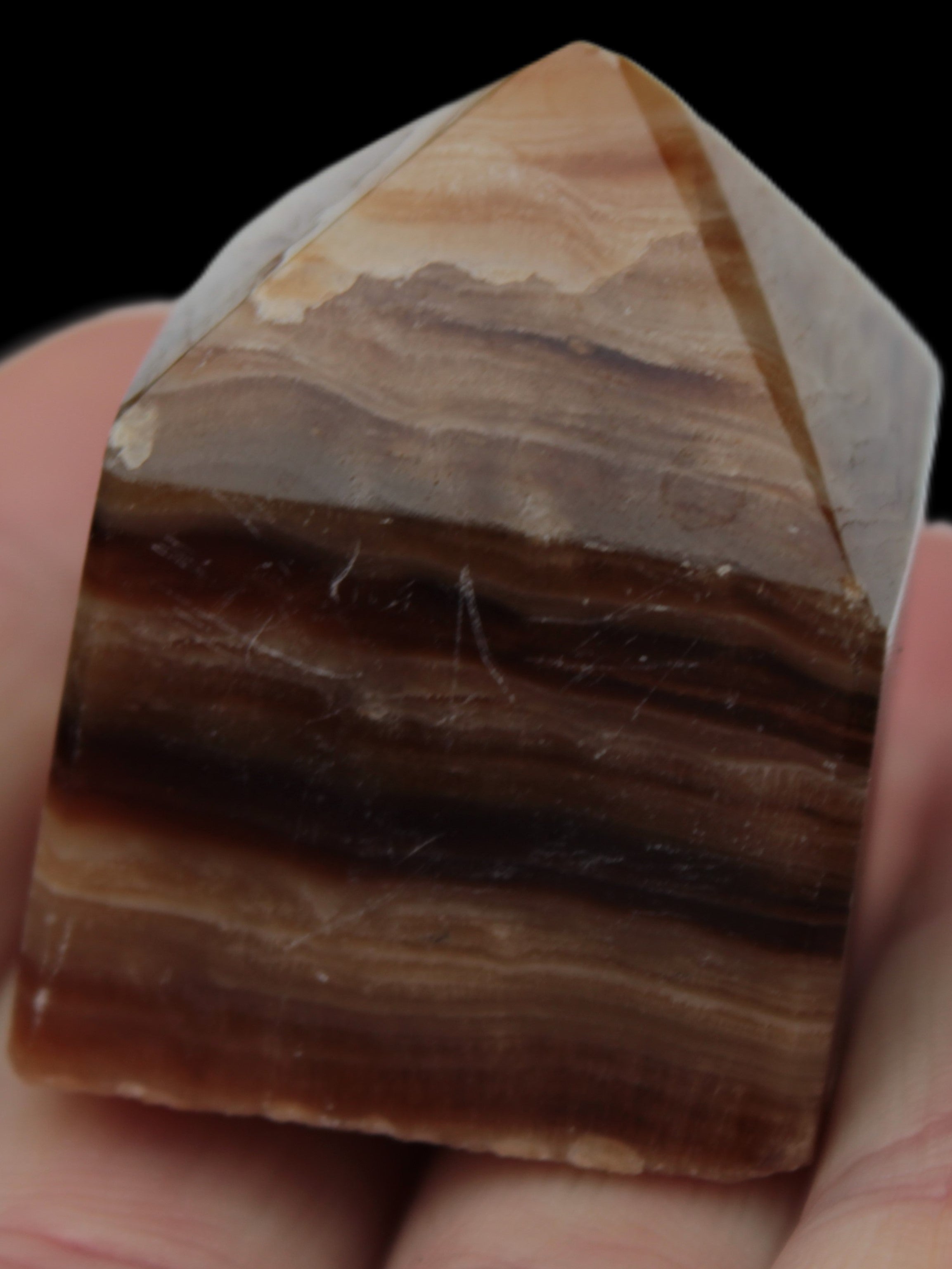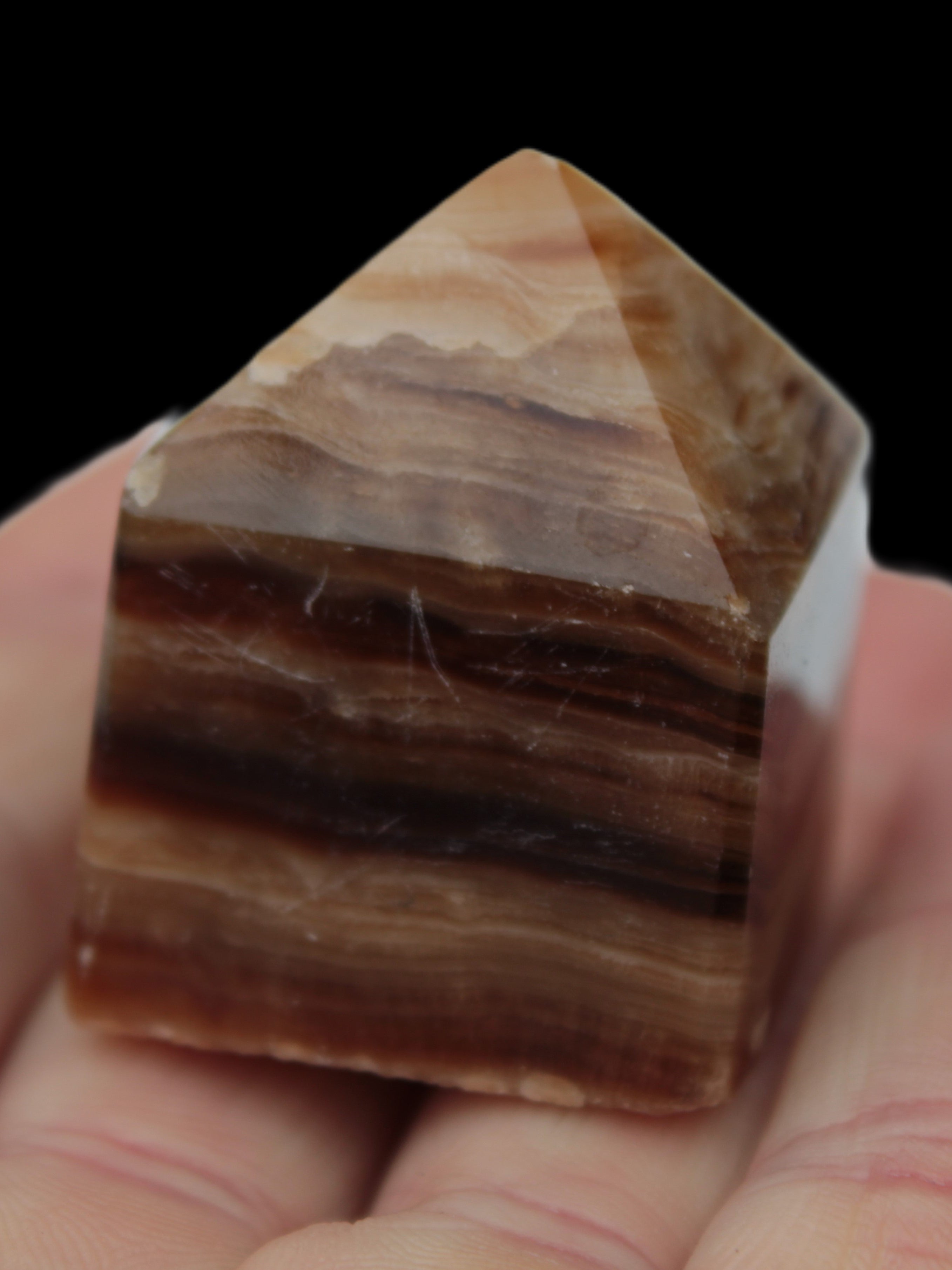 Chocolate Calcite is a rarer brown Calcite variety found in Pakistan and Mexico. The deep brown chocolate tones provide a strong connection to Mother Earth. What makes Chocolate Calcite distinctive is its stripes and bands of lighter and darker browns running across its surface. Its crystalline structure showing through adds another layer of beauty to this wonderful stone.