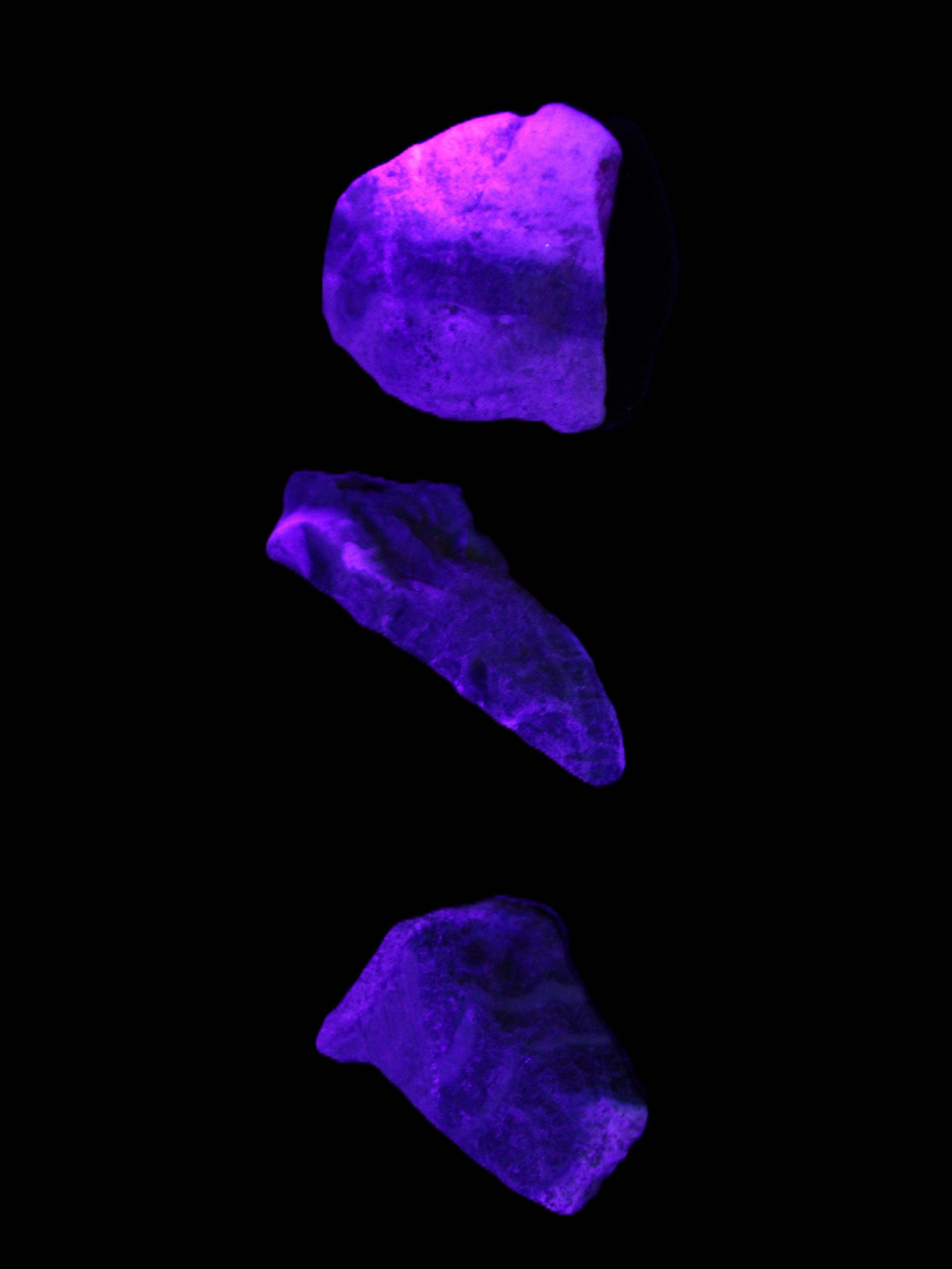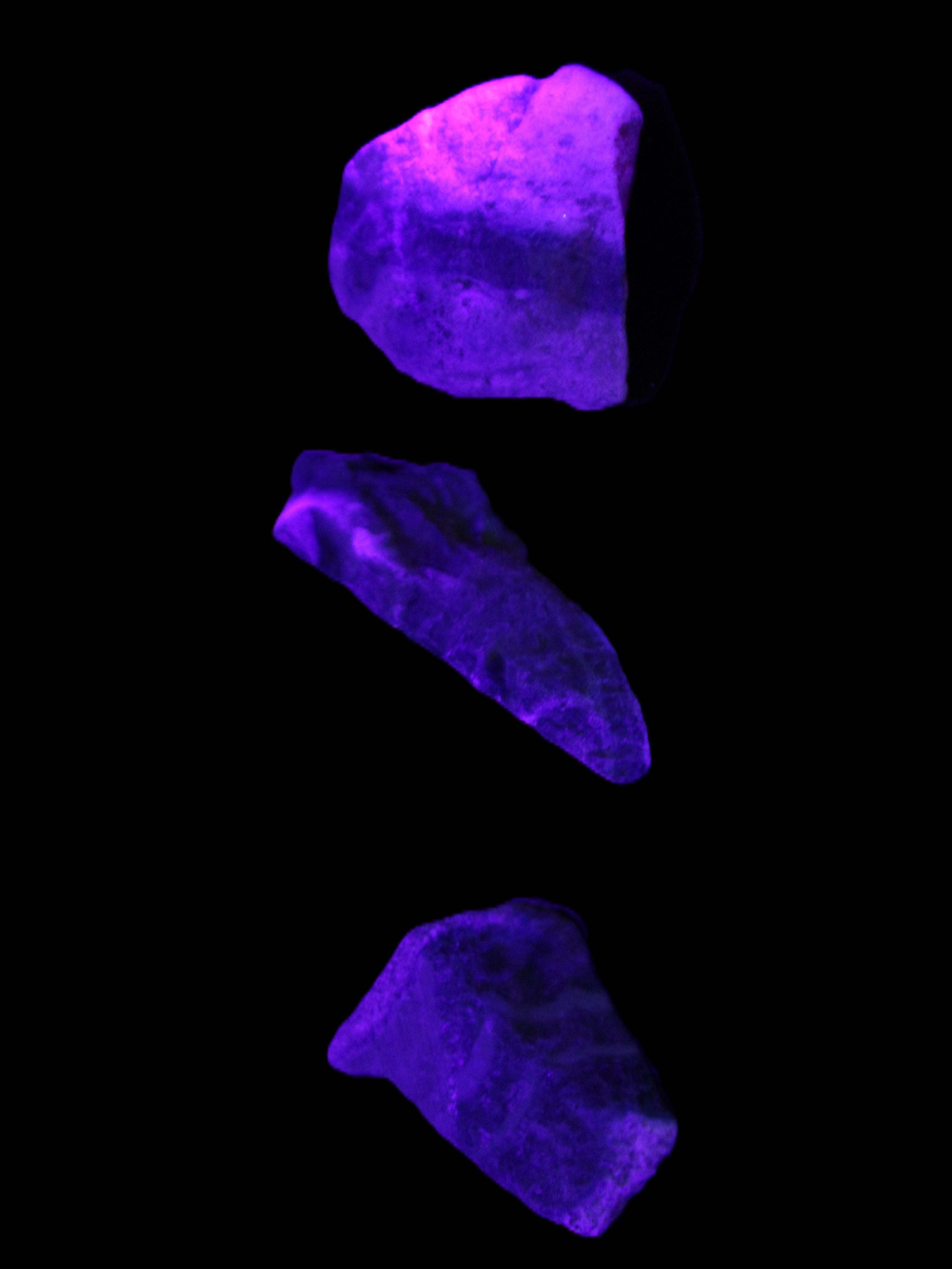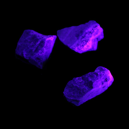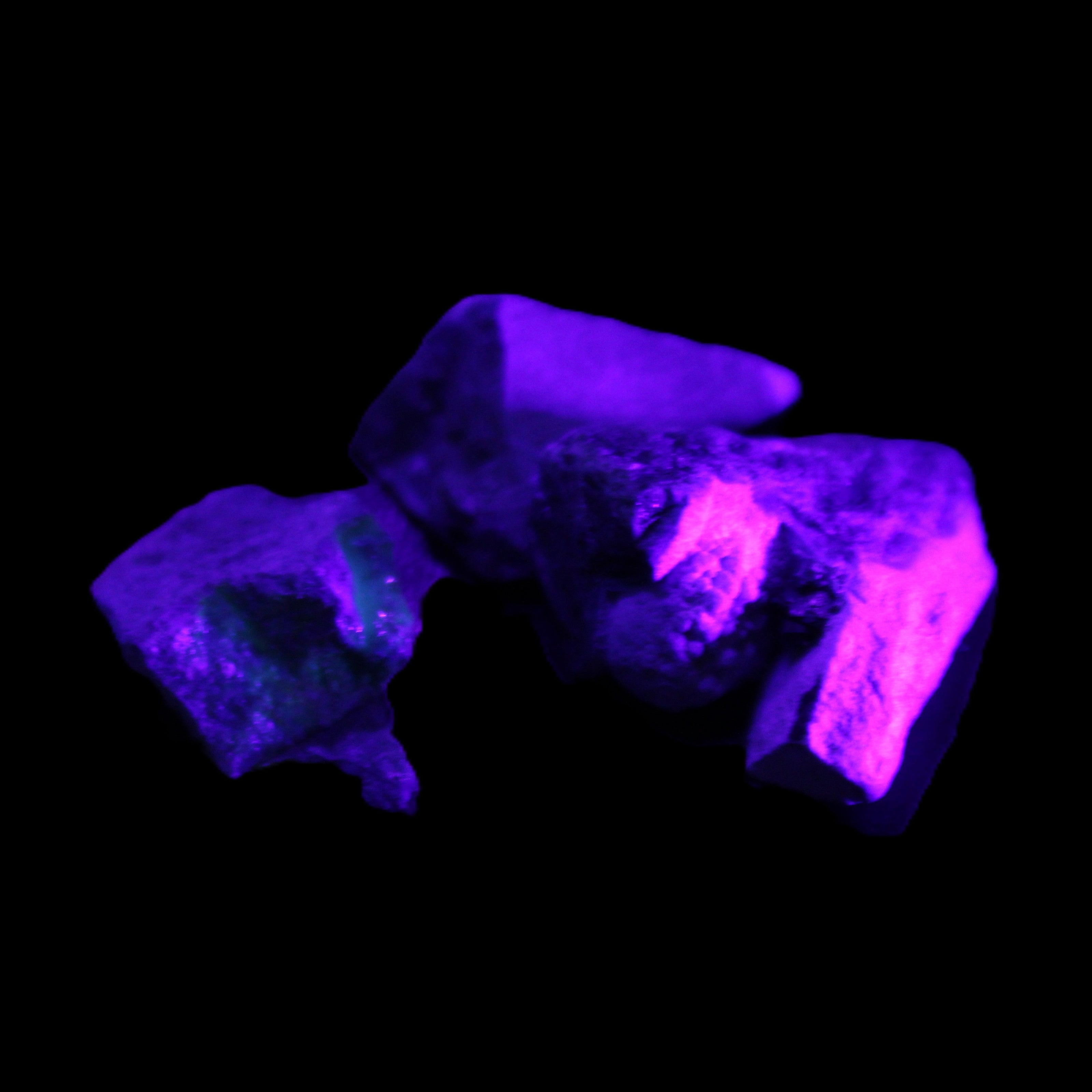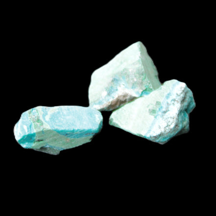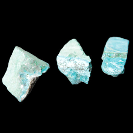This rare Chrysocolla Shattuckite Malachite 3 natural stones selection weighs 10g. The Chrysocolla has formed in bands in the Shattuckite Malachite matrix. Copper Carbonate minerals are UV reactive.