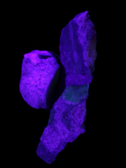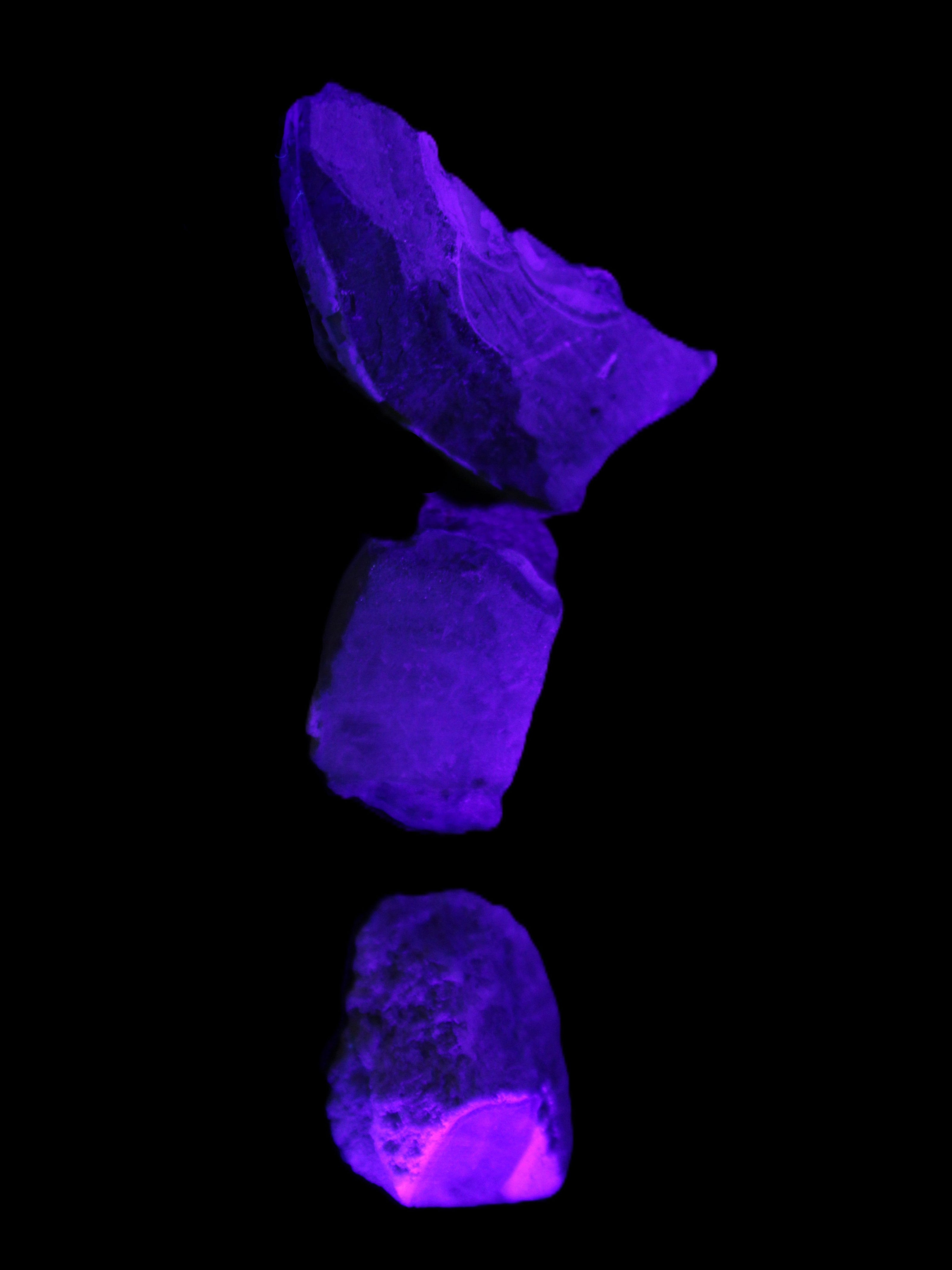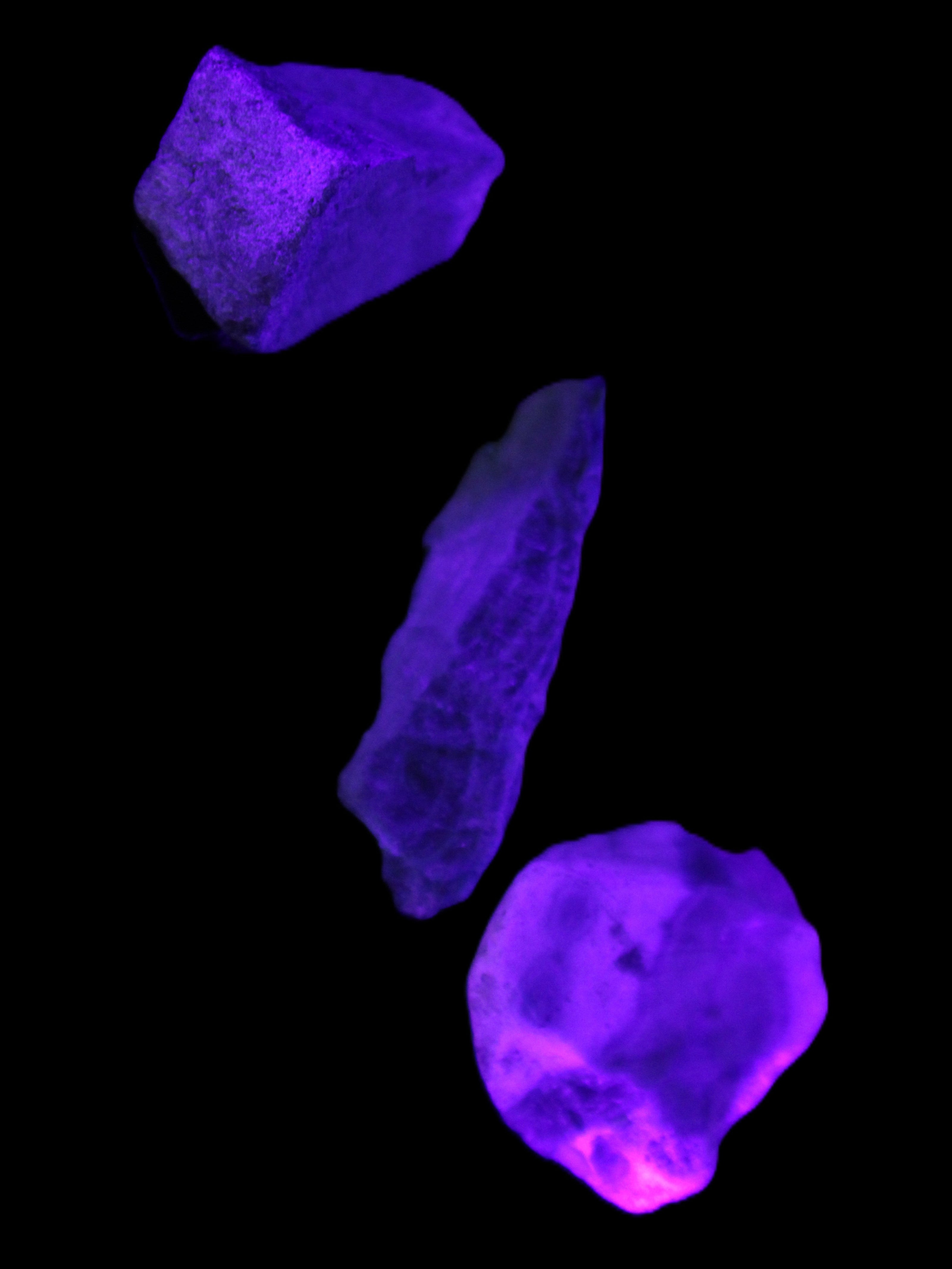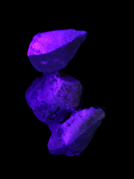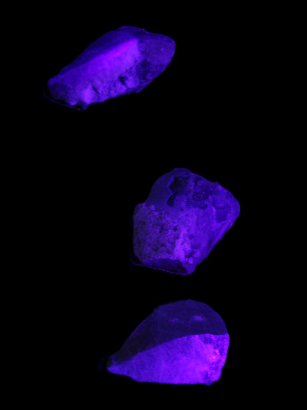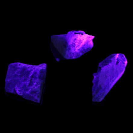 This rare Chrysocolla Shattuckite Malachite 3 natural stones selection weighs 10g. The Chrysocolla has formed in bands in the Shattuckite Malachite matrix. Copper Carbonate minerals are UV reactive.