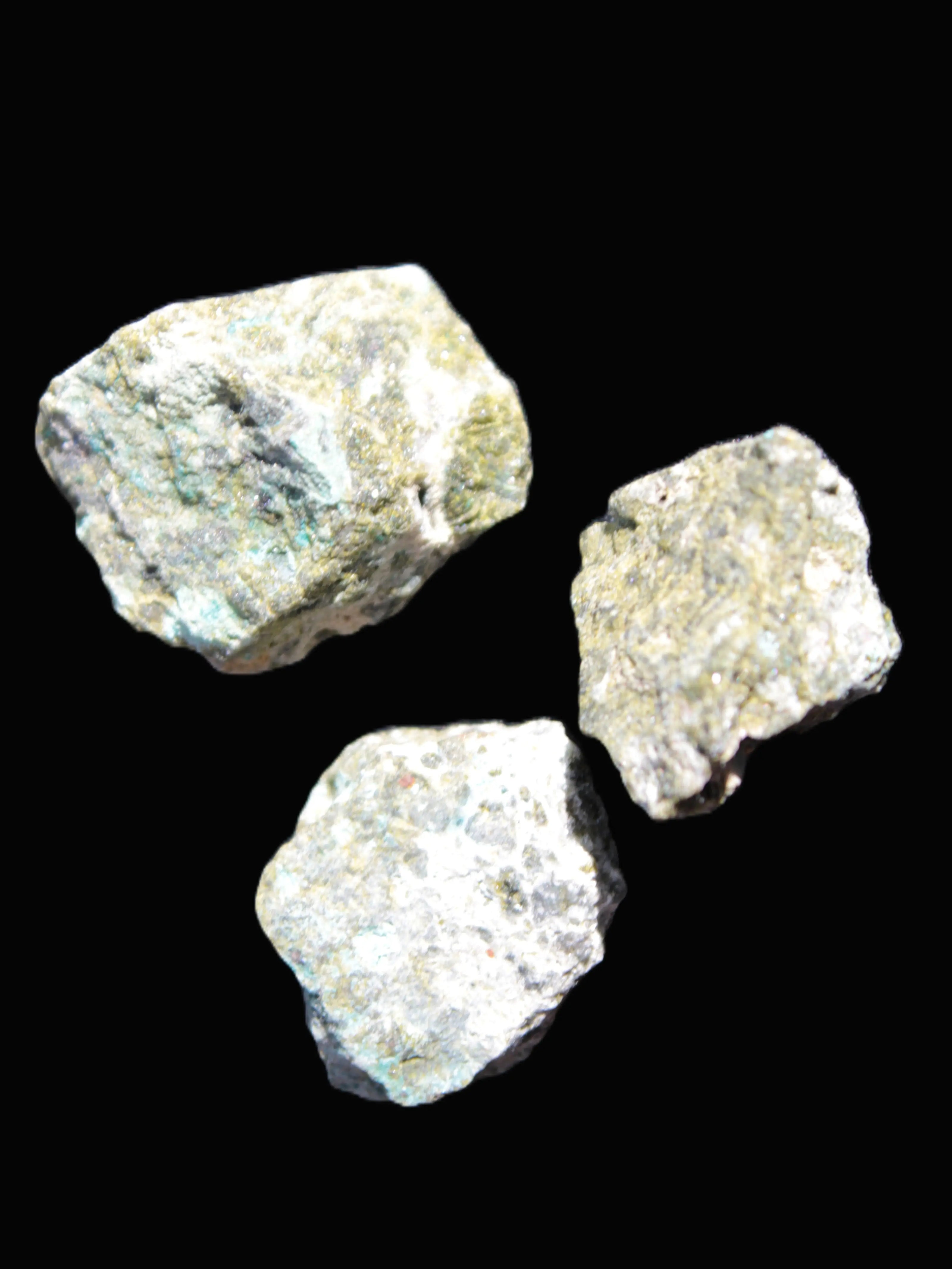 This rare Chrysocolla with Epidote selection of 3 stones weigh 24-25g.