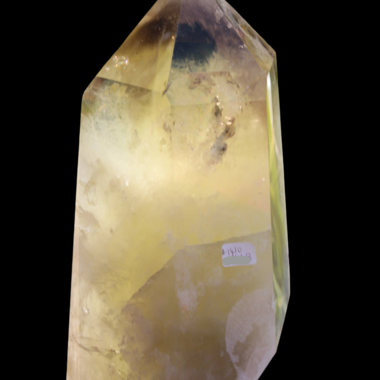 This impressive Citrine obelisk weighs 5840g. It is full of rainbows in sunlight. It makes for a wonderful statement piece, lighting up a room and filling it with joy.