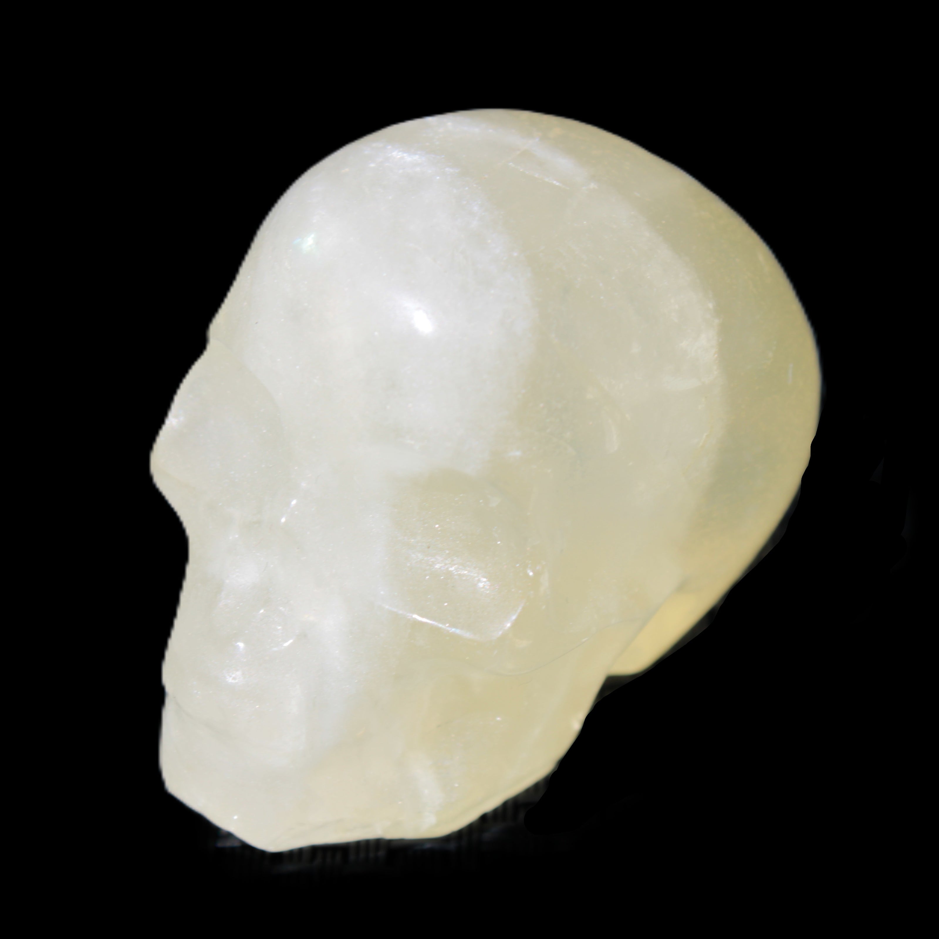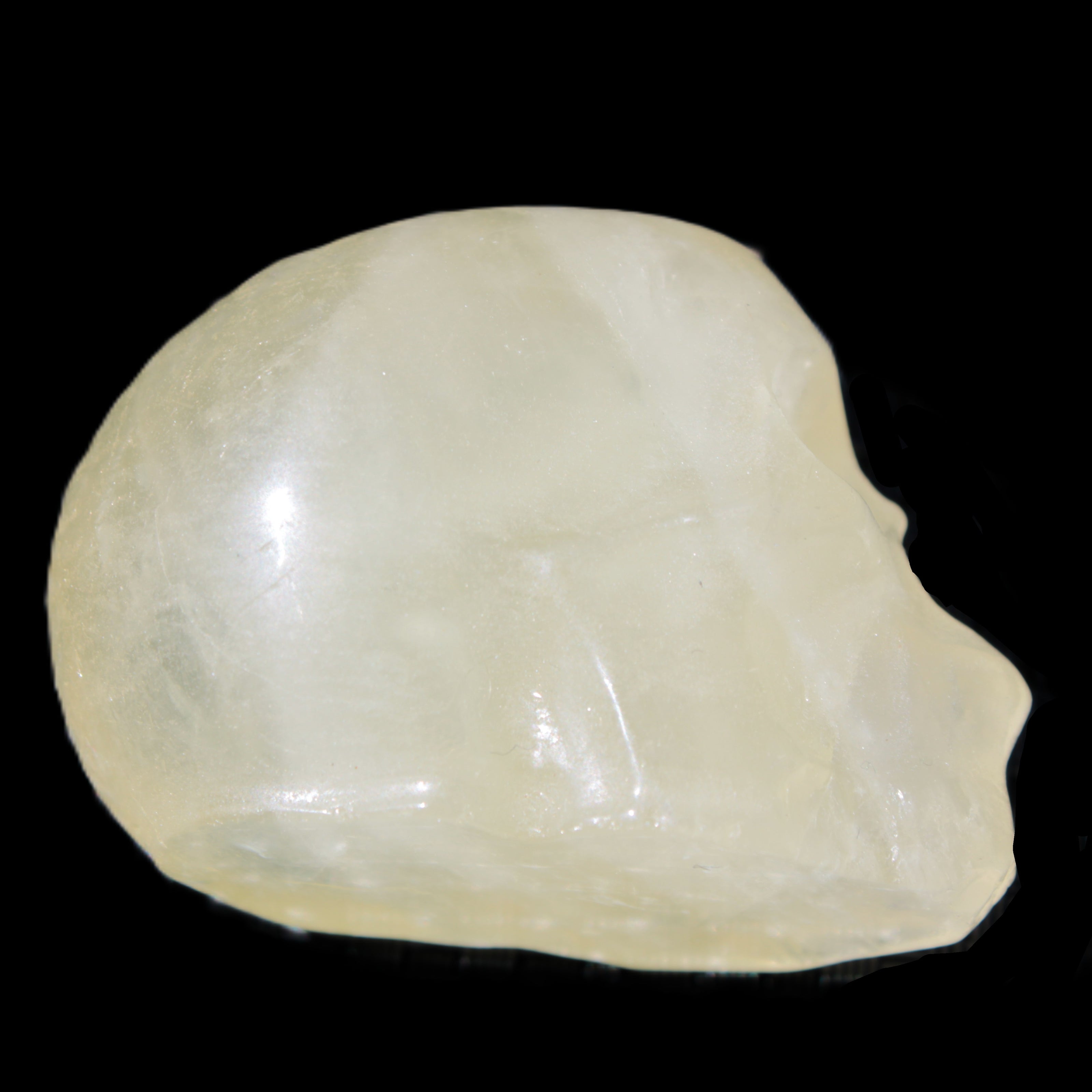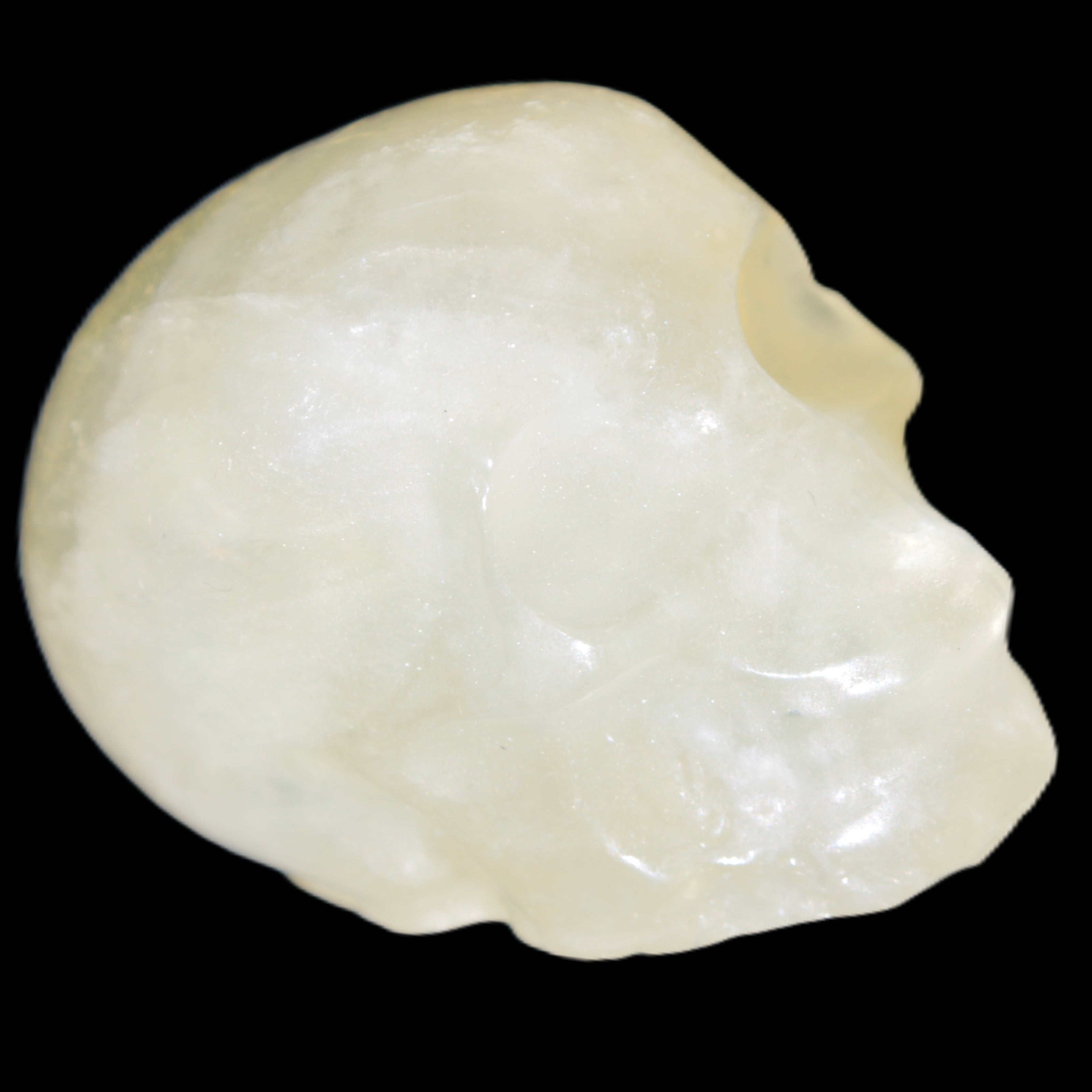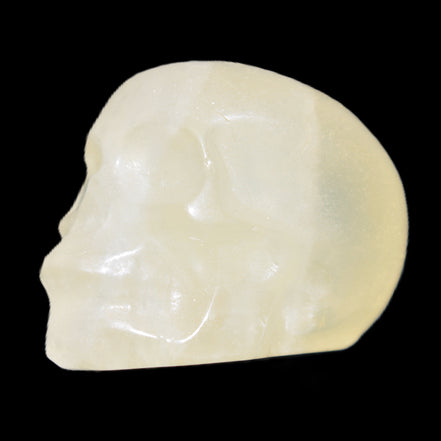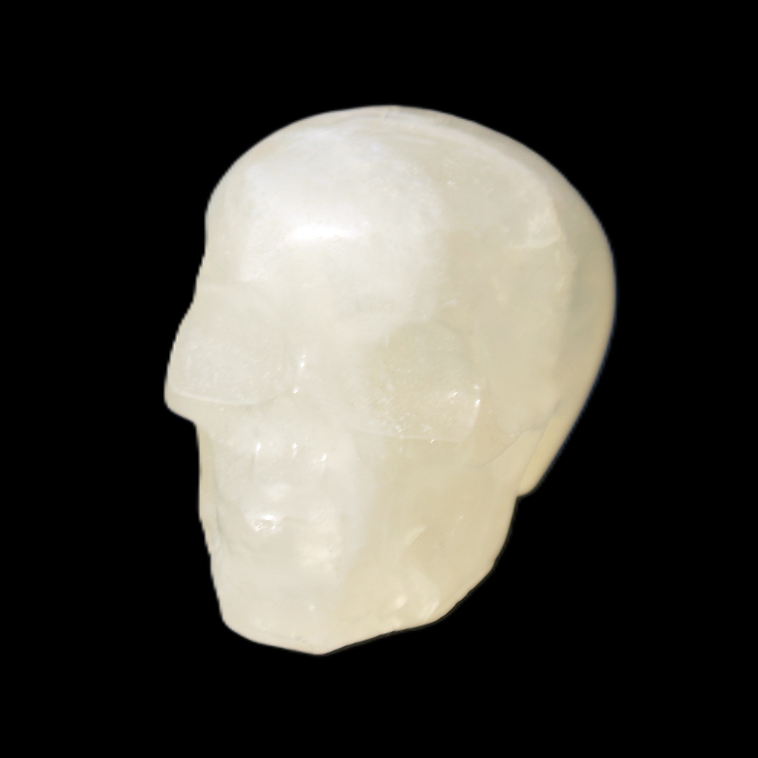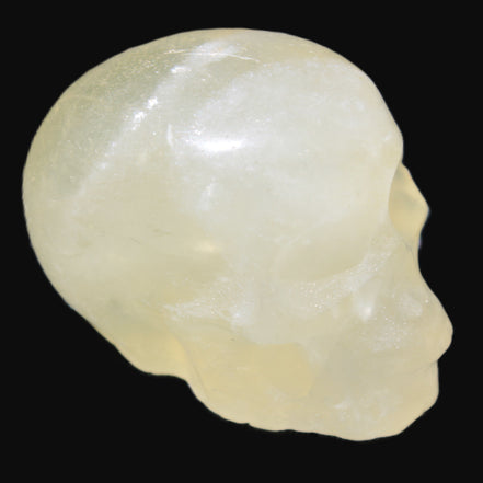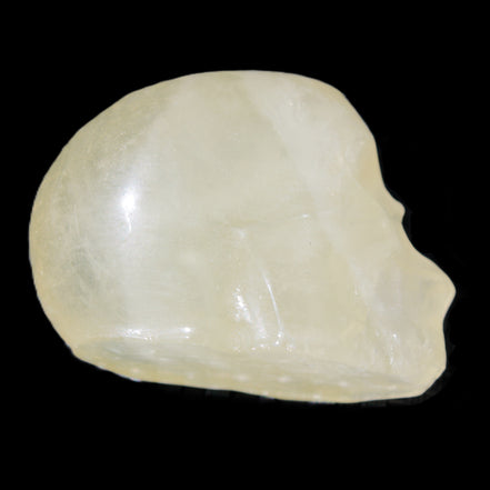 This Citrine skull is 32mm wide, 48mm deep and stands 35mm tall. It weighs 73g. Citrine is a yellow to golden variety of quartz that is strongly associated with joy, abundance, and personal power. It is often used to attract wealth and clear stagnant energies.