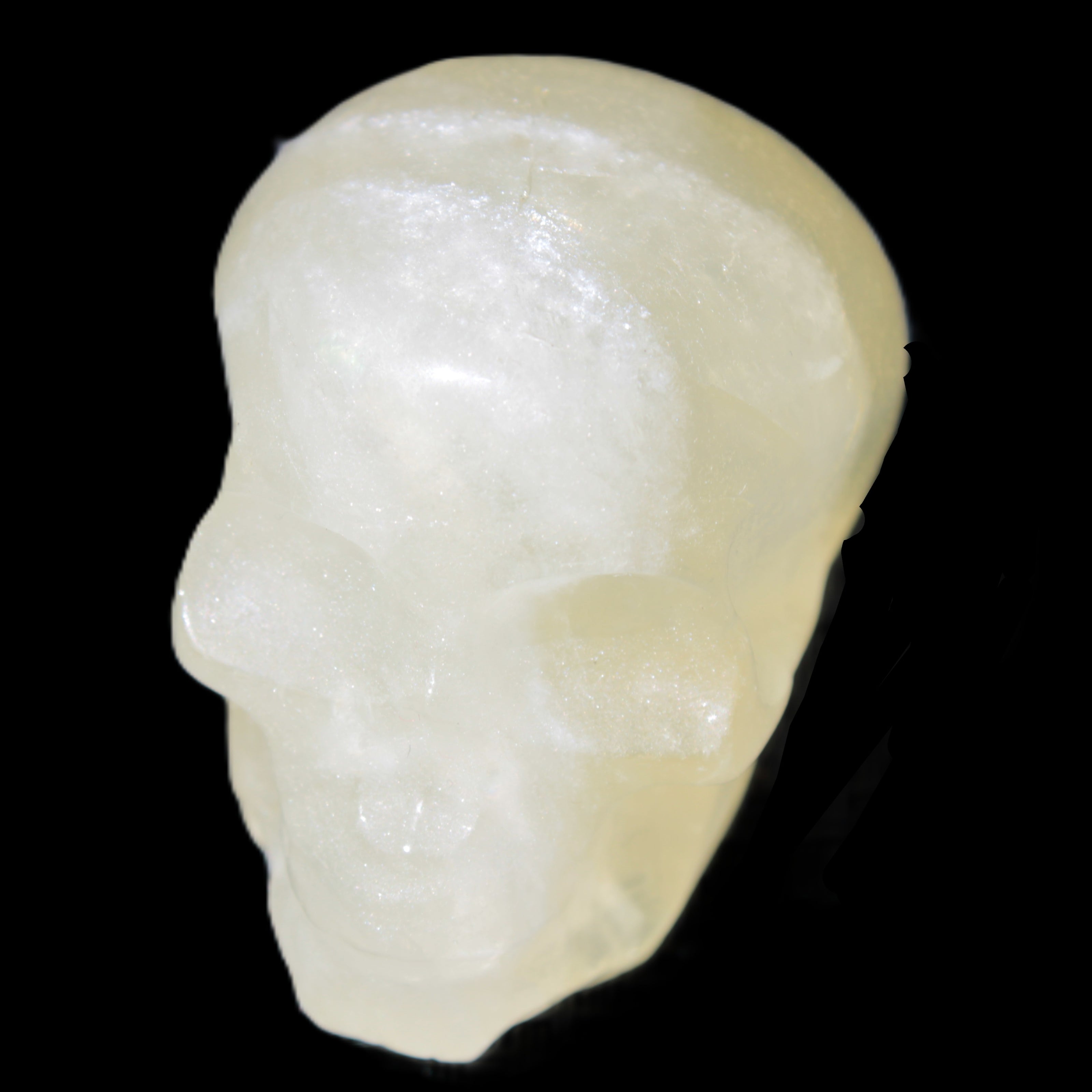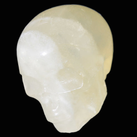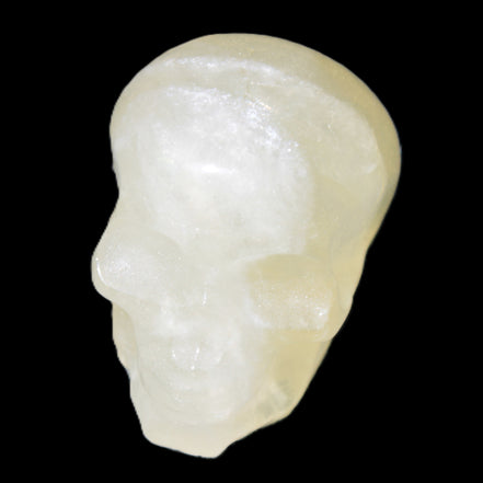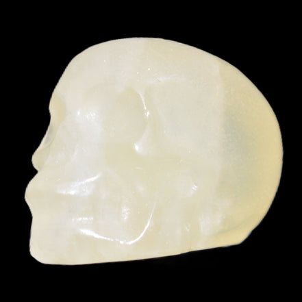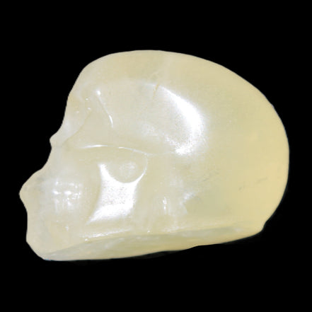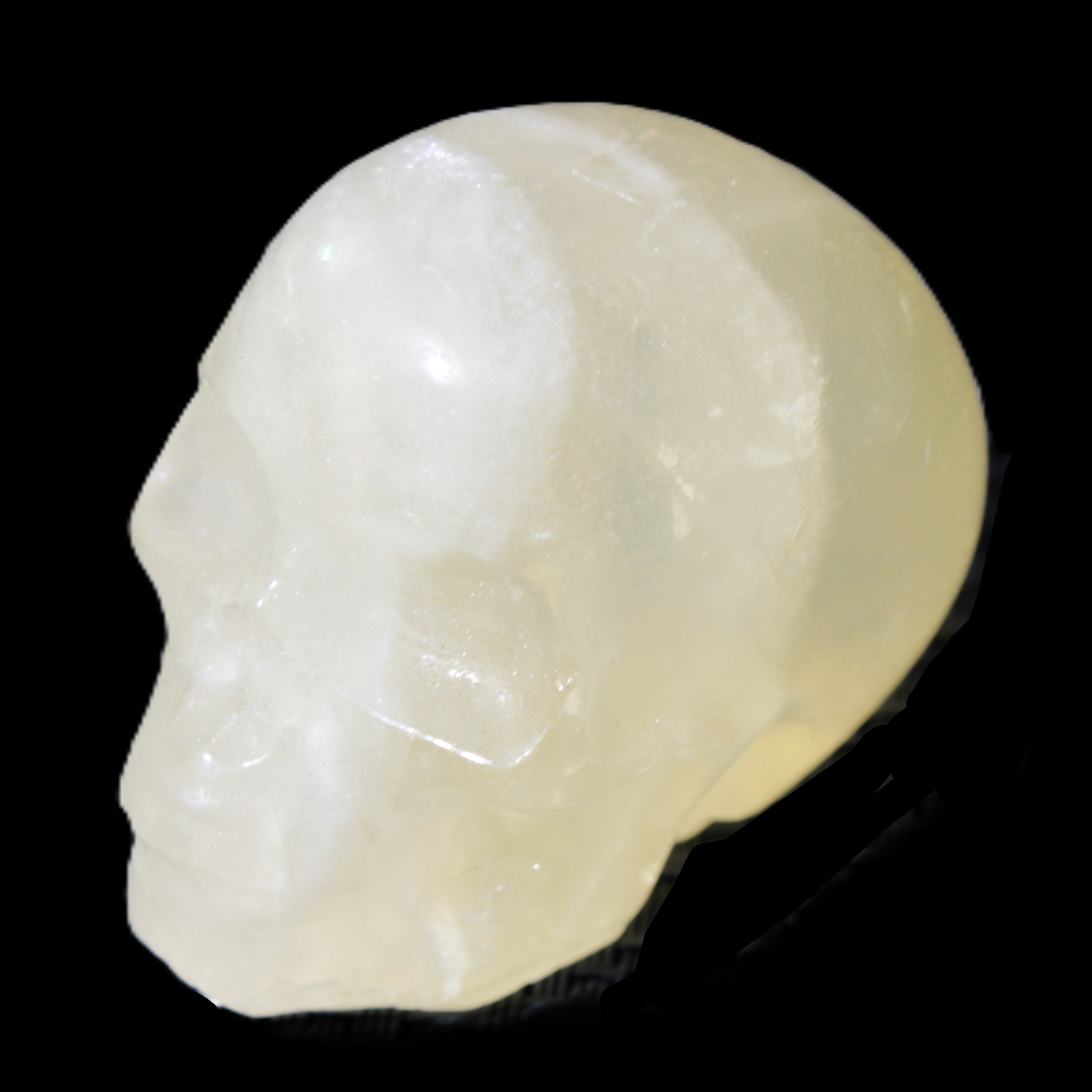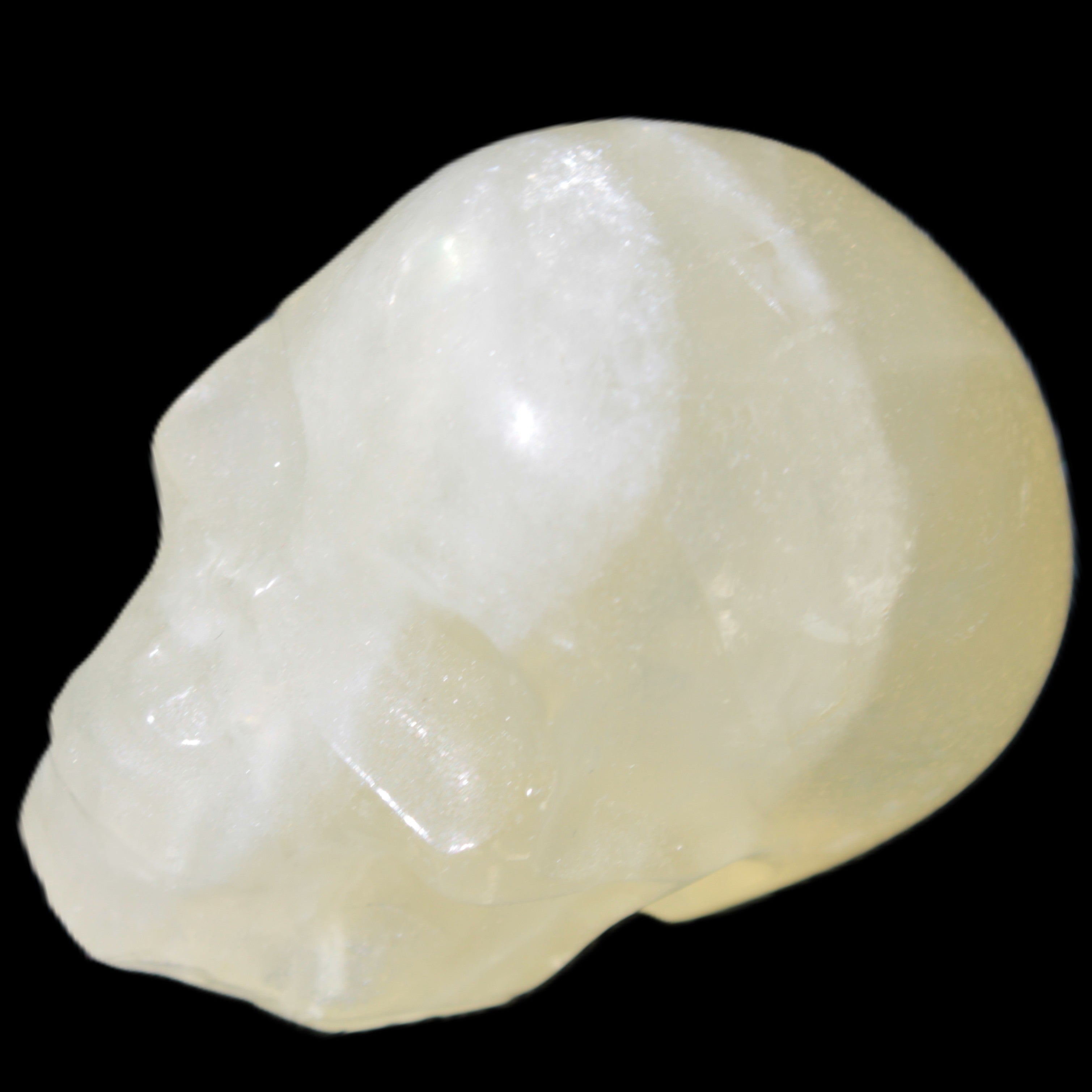 This Citrine skull is 32mm wide, 48mm deep and stands 35mm tall. It weighs 73g. Citrine is a yellow to golden variety of quartz that is strongly associated with joy, abundance, and personal power. It is often used to attract wealth and clear stagnant energies.