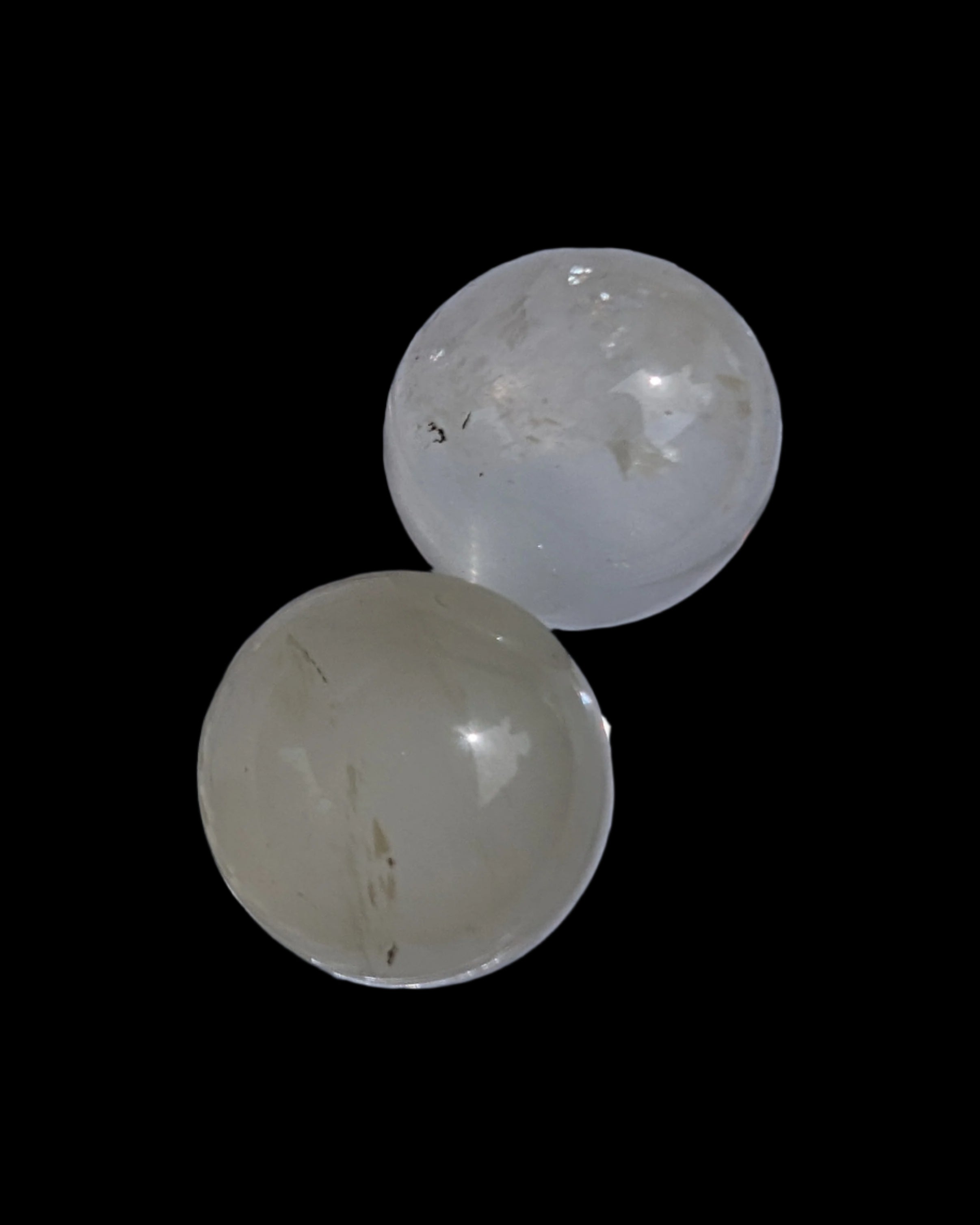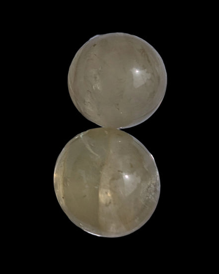 These Citrine crystal 2 small spheres selections weigh 9-10g. Citrine is a crystal healer’s favourite for its ability to promote and manifest abundance. Powered by the Sun, Citrine warms, cleanses, and energises. Citrine has a high capacity for transmuting negative energy, making it an excellent protective crystal. Citrine will also clear unwanted energies and help resolve interpersonal issues. Citrine promotes self-discipline and personal achievement. It does this through its ability to clarify and magnify your own powers and energies. This property helps you to find professional success and attract wealth. Keep Citrine in your wallet or purse to welcome abundance and wealth into your life.