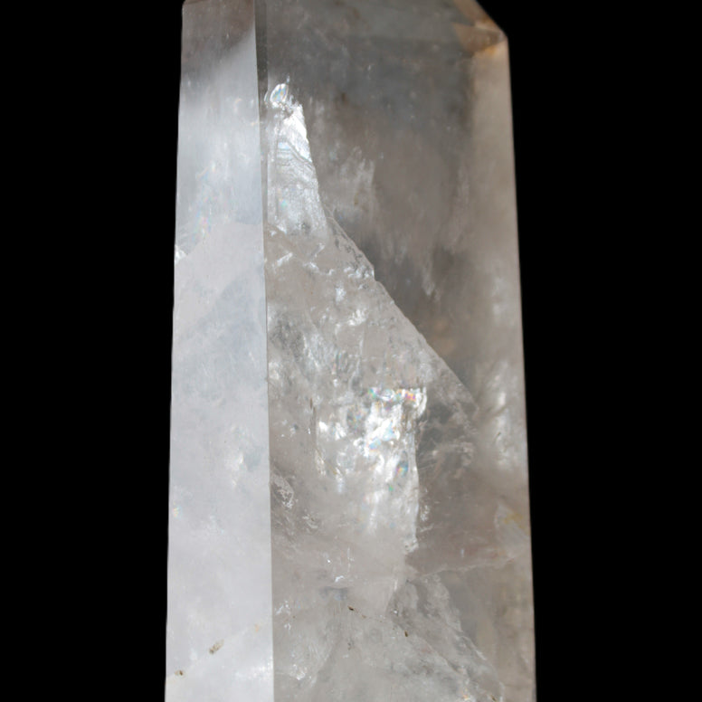 This large Clear Quartz Obelisk 73*44*173mm weighs 952g. It is full of rainbows in sunlight. It stands 173mm tall and is 73*44mm broad at its base.