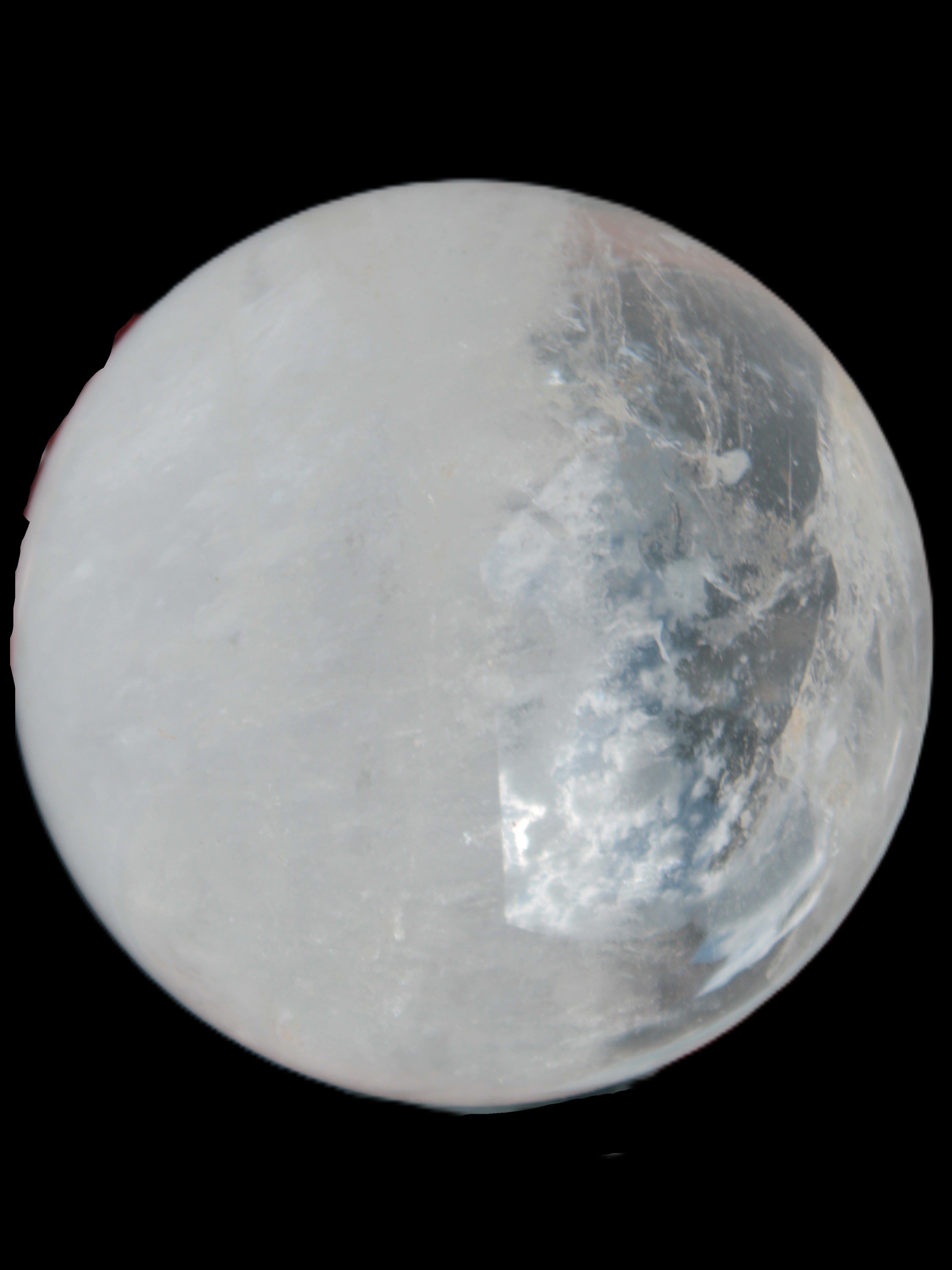 This Clear Quartz Yin Yang sphere 74mm weighs 519g. The Yin/Yang properties of this sphere from its half cloudy and half clear nature. This gives it level measures of masculine and feminine energy. This enhances the capacity for achieving and maintaining balance.