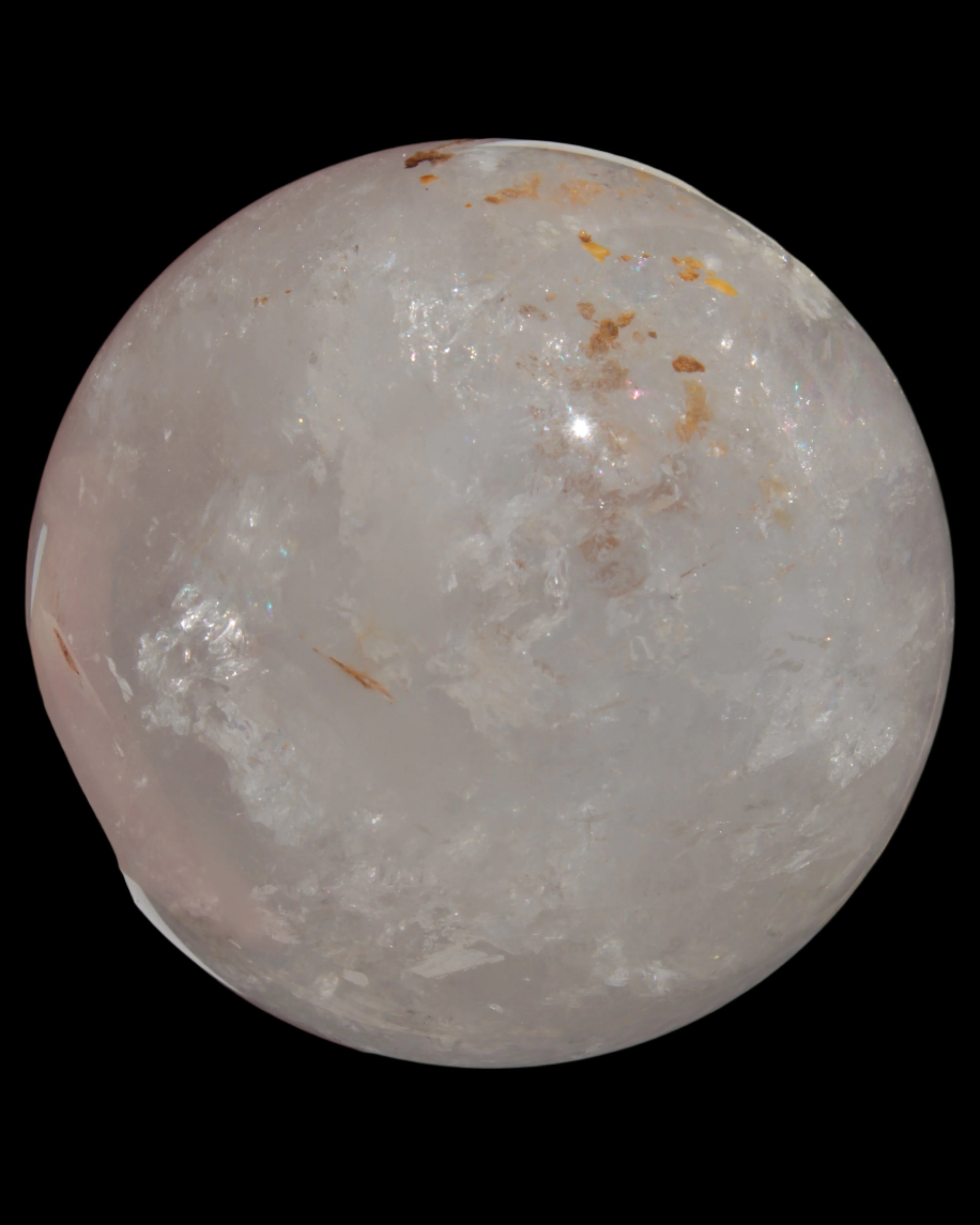 This Clear Quartz crystal sphere 84mm weighs 827g. It flashes rainbows in sunlight. Clear Quartz is the most versatile healing stone among all crystals. Clear Quartz is programmable and can work on any condition. It works well for all healing. Clear Quartz is known as the stone of power and amplifies any energy or intention. Clear Quartz protects against negativity, attunes to your higher self, and relieves pain.