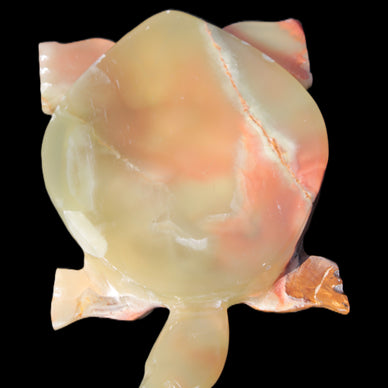 This stunning Turtle was created by Lawrence Handicrafts exclusively for Rocks and Things. Its shape and indentation mean, as well as being a beautiful decorative object, it can also double as a platter. It was skillfully created to make the most of the natural beauty of the Afghan Jade found in Pakistan. The Afghan Jade found there is translucent to opaque and has a wide colour range including white, light to dark green, yellow, black and pink. This turtle shows nearly all of these and more.  Afghan Jade is a form of Serpentine (Bowenite) named after the neighbouring country where it is also found. Serpentine is the name given to a group of magnesium-based asbestos and silicate minerals found in the larger Serpentinite family of minerals. It is formed through plate tectonics and is found on every continent. This stone is all about Kundalini awakening. Serpentine means ‘stone snake’. Serpentine provides powerful healing energy and is linked to our Kundalini energy. When dormant, Kundalini energy lies coiled at the base of the spine. Its release is transformative. The slow and steady pace of the turtle can reliably and safely get you to this place of transformation