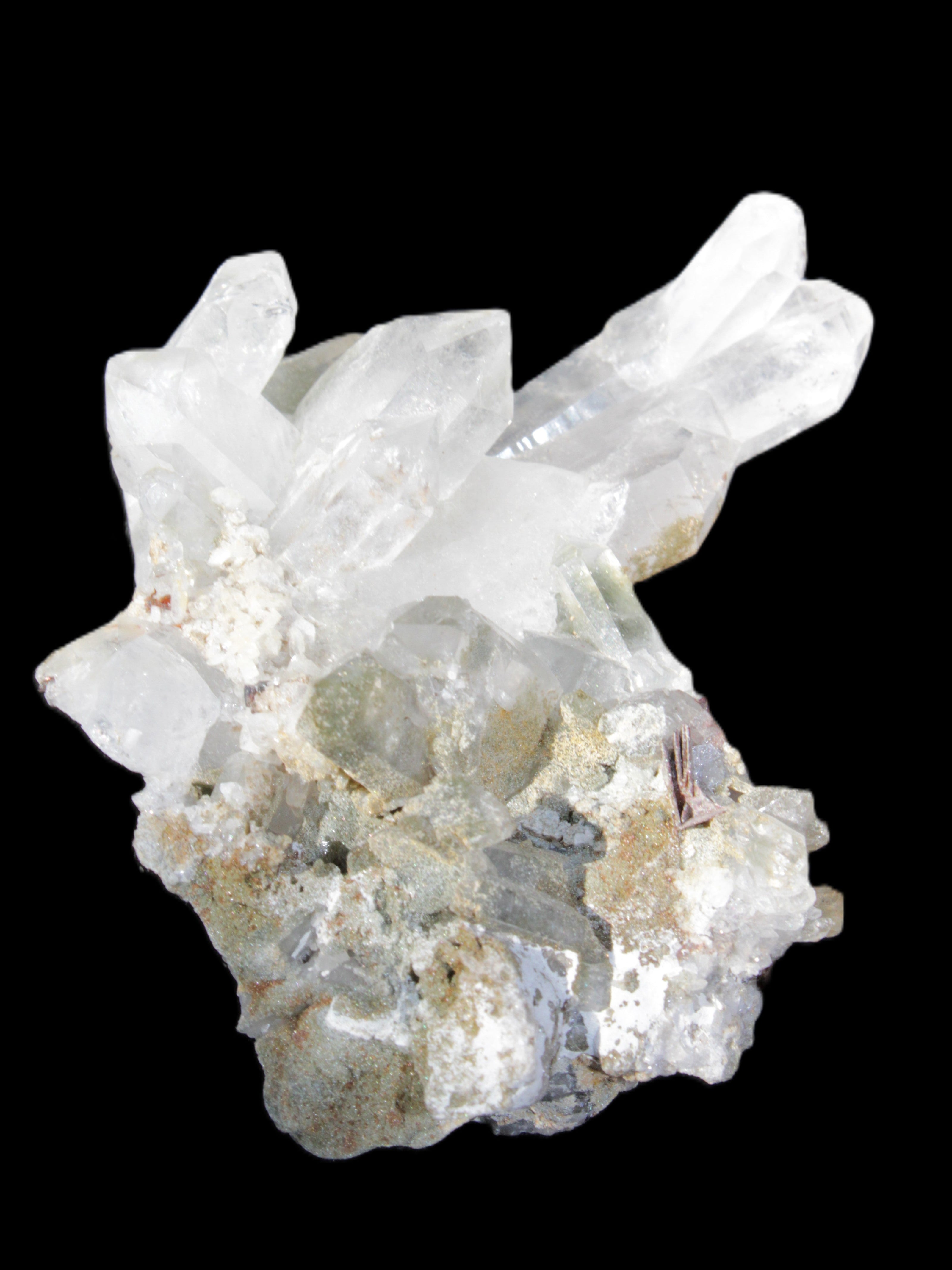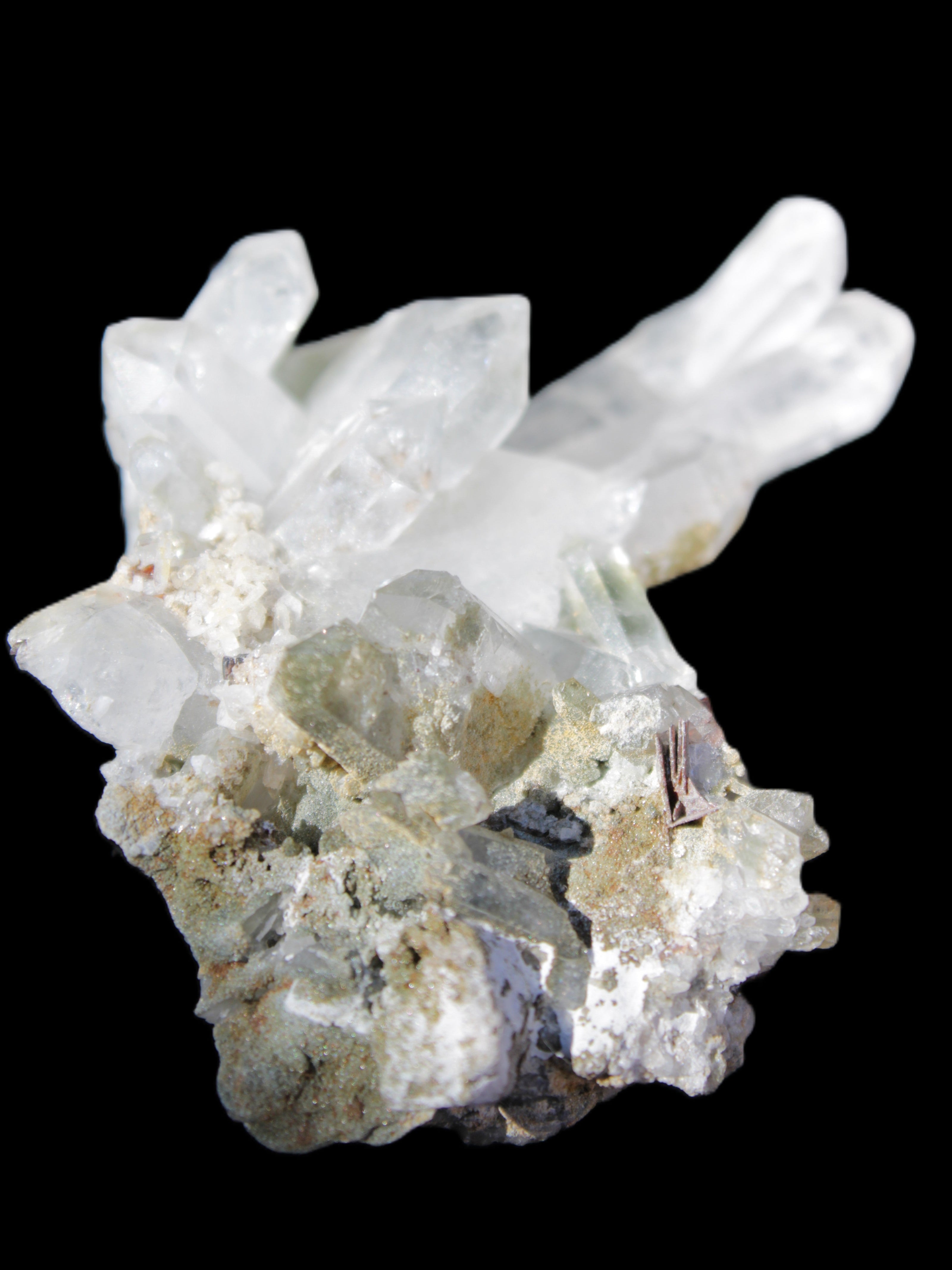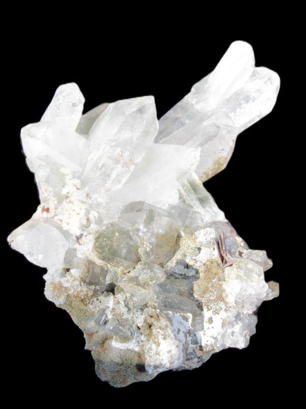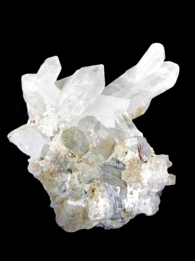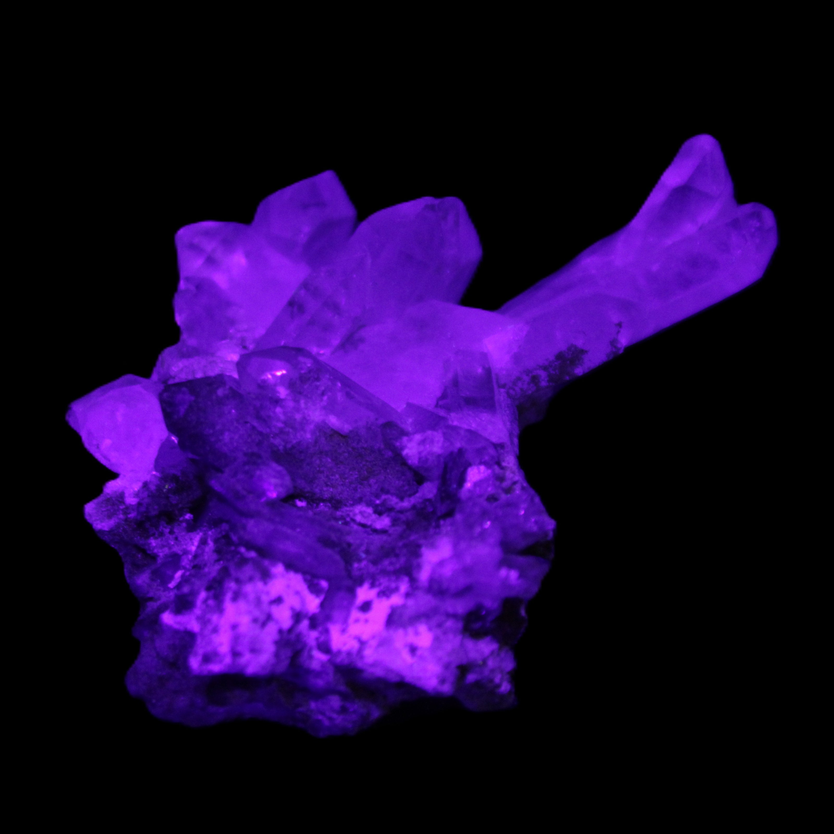 This unusual complex Quartz cluster 60*60*24mm weighs 50g. The crystal cluster was sourced locally in Pakistan for Rocks and Things Store by our partner, Lawrence Handicrafts. It is UV reactive.